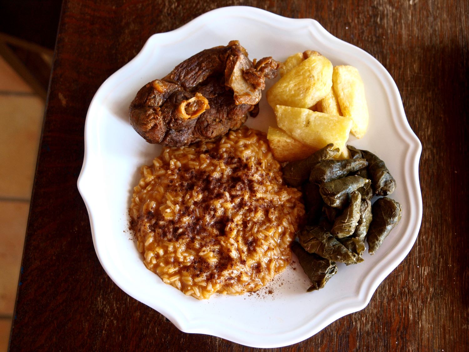 Σε όλο το Τόξο της Λύρας, στην Κρήτη, την Κάσο και την Κάρπαθο, το πιλάφι είναι το συμβολικό τελετουργικό φαγητό του γάμου και της χαράς, αλλά, μόνον εδώ, είναι κόκκινο και πέφτει επάνω μία νότα εξωτικών ταξιδιών, η αλεσμένη κανέλα. Όμως, το πιάτο του γλεντιού αποτελείται από τέσσερα συστατικά, αλλά, εμείς, αναφερθήκαμε μόνο σε τρία. Και το τέταρτο είναι επίσης εξαιρετικά ξεχωριστό. Μόνο που, απλώς, το μαγειρεύουν οι άνδρες, αλλά το έχουν φτιάξει οι γυναίκες. Γιατί τα ξακουστά μικροσκοπικά κασιώτικα ντολμαδάκια είναι κομψοτεχνημένες μπουκιές που χρειάζονται επιδέξια γυναικεία χέρια για να τα τυλίξουν. Τα ντολμαδάκια ταυτίζονται με τη γεύση της ψυχής της Κάσου και μπορεί να τα γευτεί ο επισκέπτης κάθε ώρα και στιγμή σε όποιο εστιατόριο και αν καθίσει.