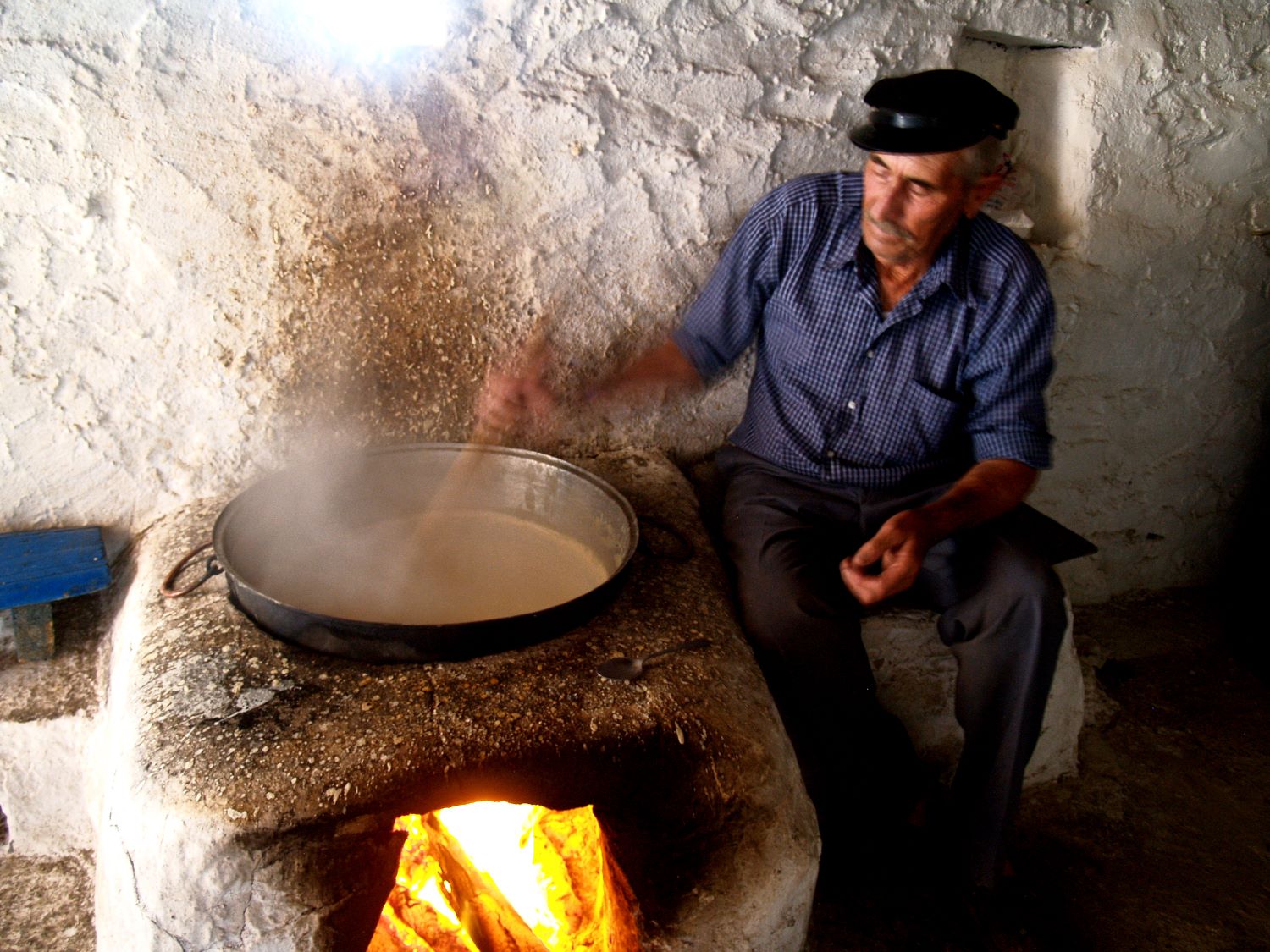 Στα μητάτα στην Επάνω ή την Πέρα Γη της Κάσου – ίσως τα πιο παραδοσιακά σε ολόκληρο το Αιγαίο – επικρατεί παρόμοια ατμόσφαιρα με τα μαγειρεία του γλεντιού. Η ίδια παρανιστιά με την αυθεντική φωτιά, τα ίδια καζάνια, οι ίδιοι άνθρωποι που τα ανακατεύουν για να τυροκομήσουν, χωρίς ηλεκτρικό ρεύμα ή κάποια άλλη ένδειξη εξέλιξης, πλην των αυτοκινήτων και των ανοξείδωτων σκευών. Ώρες ατέλειωτες ανακατεύουν με τη χειροποίητη από τους ίδιους «κουτάλα», που έχει προσαρμοσμένο ένα ματσάκι θυμάρι στην άκρη, το αδύνατο σε λιπαρά γάλα του καλοκαιριού για να αφυδατωθεί και να μείνει στον πάτο του καζανιού η τυρένια κρέμα που τη λένε σιτάκα και είναι ένα από το δύο απολύτως αντιπροσωπευτικά προϊόντα του γάλακτος της κασιώτικης τυροκομίας.