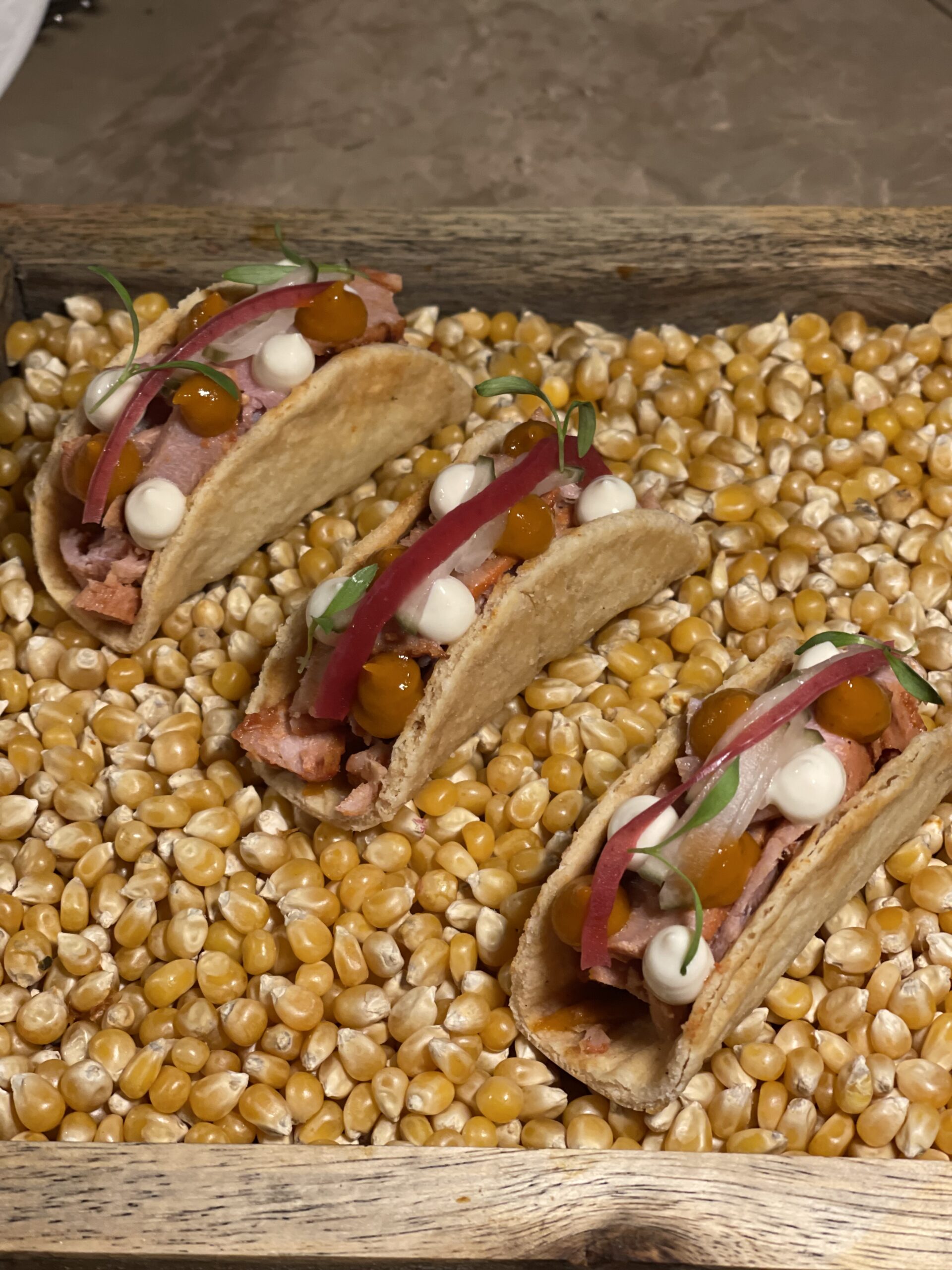 Σε μια άλλη ταράτσα, σε εκείνη του εστιατορίου Akres, το menu είναι εμπνευσμένο από τις παραδοσιακές συνταγές που έφτιαχναν οι γιαγιάδες στα γύρω χωριά, αλλά με μια πιο σύγχρονη ματιά. Στην κουζίνα του συναντάμε δύο νεαρούς Ροδίτες σεφ, τον Αργύρη Γιαννόπουλο και τον Βασίλη Διάκουλα, οι οποίοι κάνουν μια αξιόλογη και ενδιαφέρουσα προσπάθεια. Ωραία πιάτο ήταν οι μανίτες (μανιτάρια) σε διάφορες μορφές: σε πίκλα, σε ζύμωση, ωμά, όπως και οι μακαρούνες με το λινδιακό γαριδάκι.