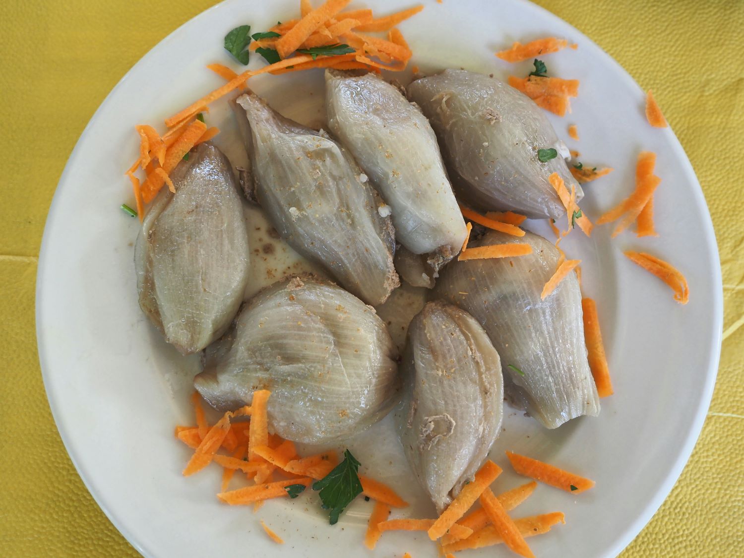 Γι’ αυτό, στον «Γιώτη», στη Σκάλα Πολιχνίτου, στον μοιχό του κόλπου της Καλλονής, ο σεφ Χάρης Κατρακάζας μας αποκάλυψε τον πλούτο ενός μοναδικού οικοσυστήματος με κοντά τριάντα είδη οστράκων, τα περισσότερα απ’ οπουδήποτε αλλού στην Ευρώπη. Να λοιπόν στο τραπέζι, ωμά, ό,τι υπάρχει αυτή την εποχή, χτένια, καλογριές, καλόγνωμες, κυδώνια, στρείδια, γυαλιστερές, φούσκες. Τα ωμά όστρακα – ίσως, μόνο, με την προσθήκη λεμονιού τώρα – είναι η πρώτη θαλασσινή μπουκιά που πήραν οι αρχέγονοι τροφοσυλλέκτες των ακτών από την ακρογιαλιά, πριν, καν, μπουν στη θάλασσα. Οι παστές σαρδέλες, όμως, είναι το πιο πρωτόγονο φαγητό που έρχεται σήμερα στο τραπέζι μας και έχει υποστεί κάποιο στοιχειώδες «μαγείρεμα».