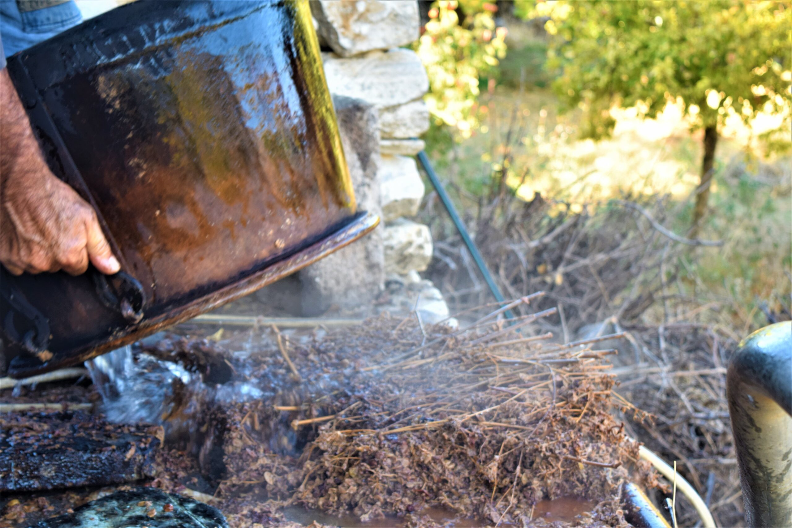 Τα καζάνια στήνονται από τέλη Οκτωβρίου ως τις αρχές Δεκεμβρίου, για την απόσταξη των στέμφυλων, -τσίκουδα λέγονται σε πολλά μέρη-, που μένουν μετά το πάτημα και την εξαγωγή του μούστου.