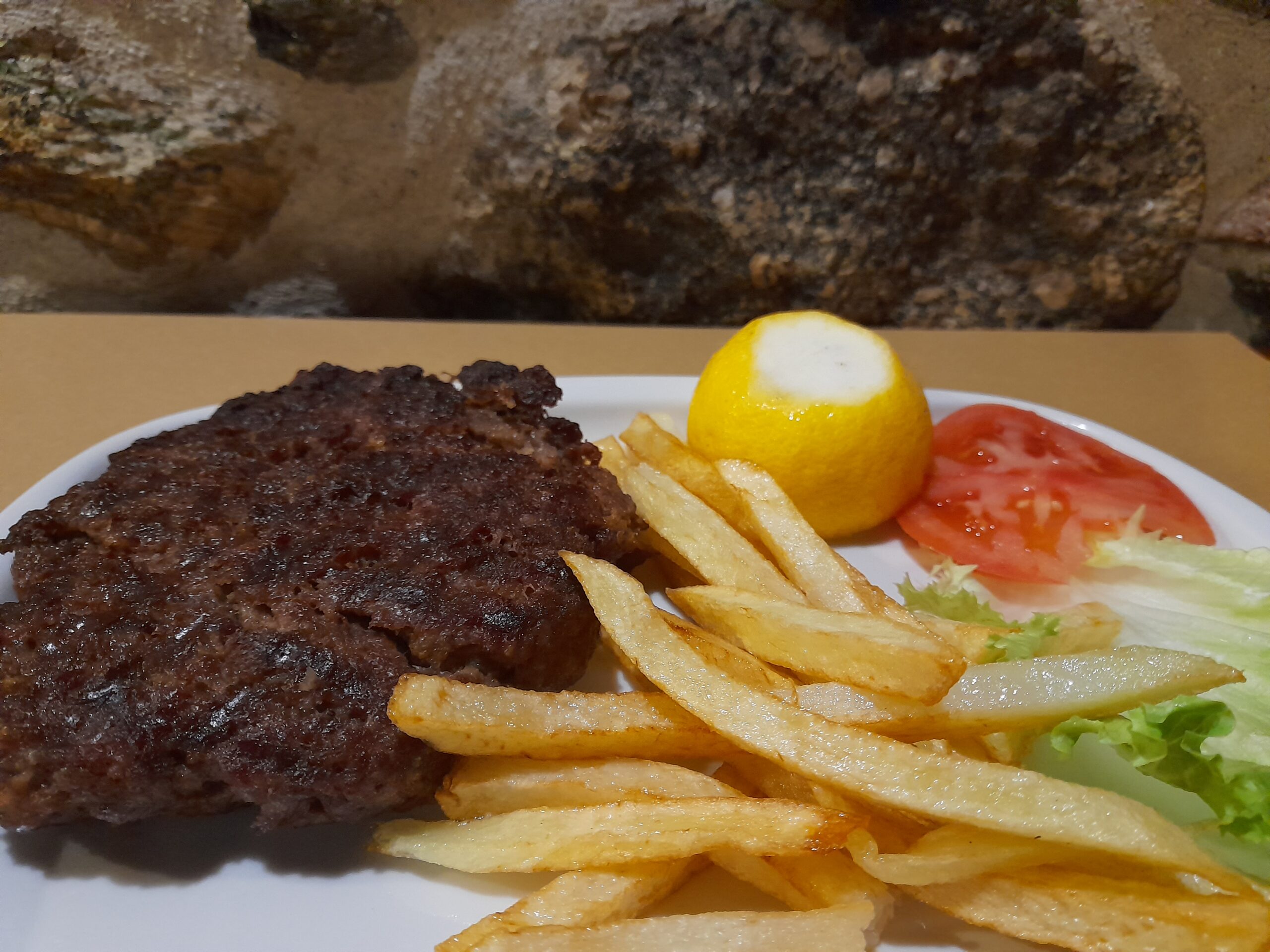 Στον Άγιο Γερμανό και στο «Πρέσπειον» (Τηλ. 2385051442) δοκιμάσαμε μπιφτέκι ελληνικής βραχυκερατικής φυλής βοοειδών, από τις ντόπιες αγελαδίτσες των Πρεσπών, που αφήνει μια ευχάριστη αίσθηση στην γεύση.