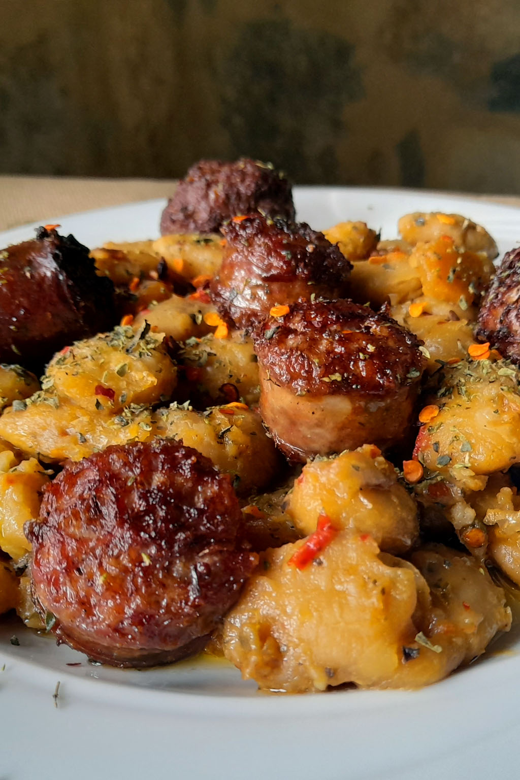 Στο «Σπιτικό της Λουκίας» στην Μικρολίμνη (Τηλ.: 6978698872), γευτήκαμε φασόλια γίγαντες στον Φούρνο με χωριάτικο λουκάνικο και ντόπιο μπούκοβο, πιπεριές γεμιστές με τραχανά και κεφτέδες μακάλο.