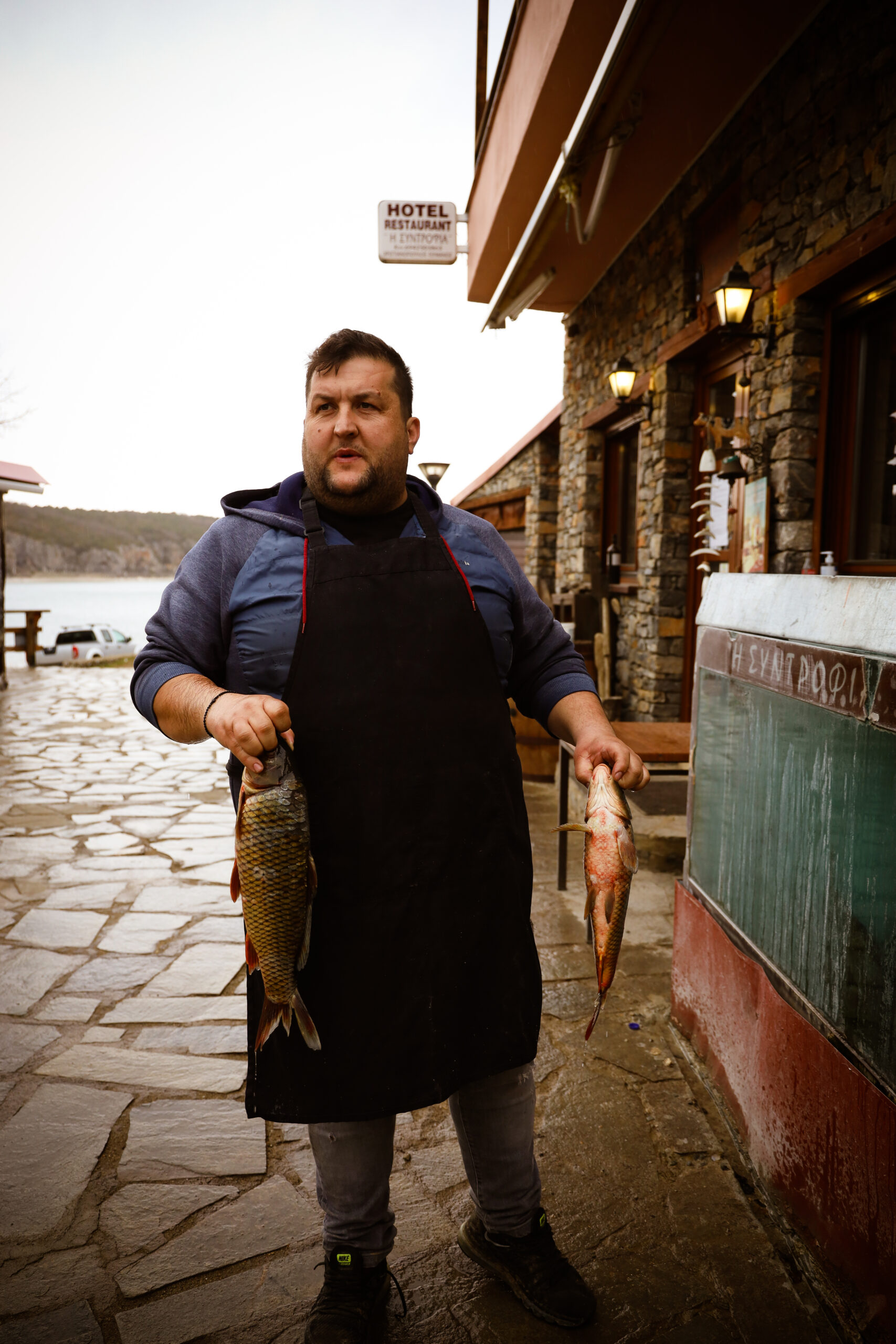 Στο μοναδικό παραλίμνιο χωριό της Μεγάλης Πρέσπας, στους Ψαράδες και στην «Συντροφιά» (Τηλ. 2385046107) απολαύσαμε γριβάδι τηγανιτό και στα κάρβουνα, καθώς και παστά τσιρόνια της λίμνης.