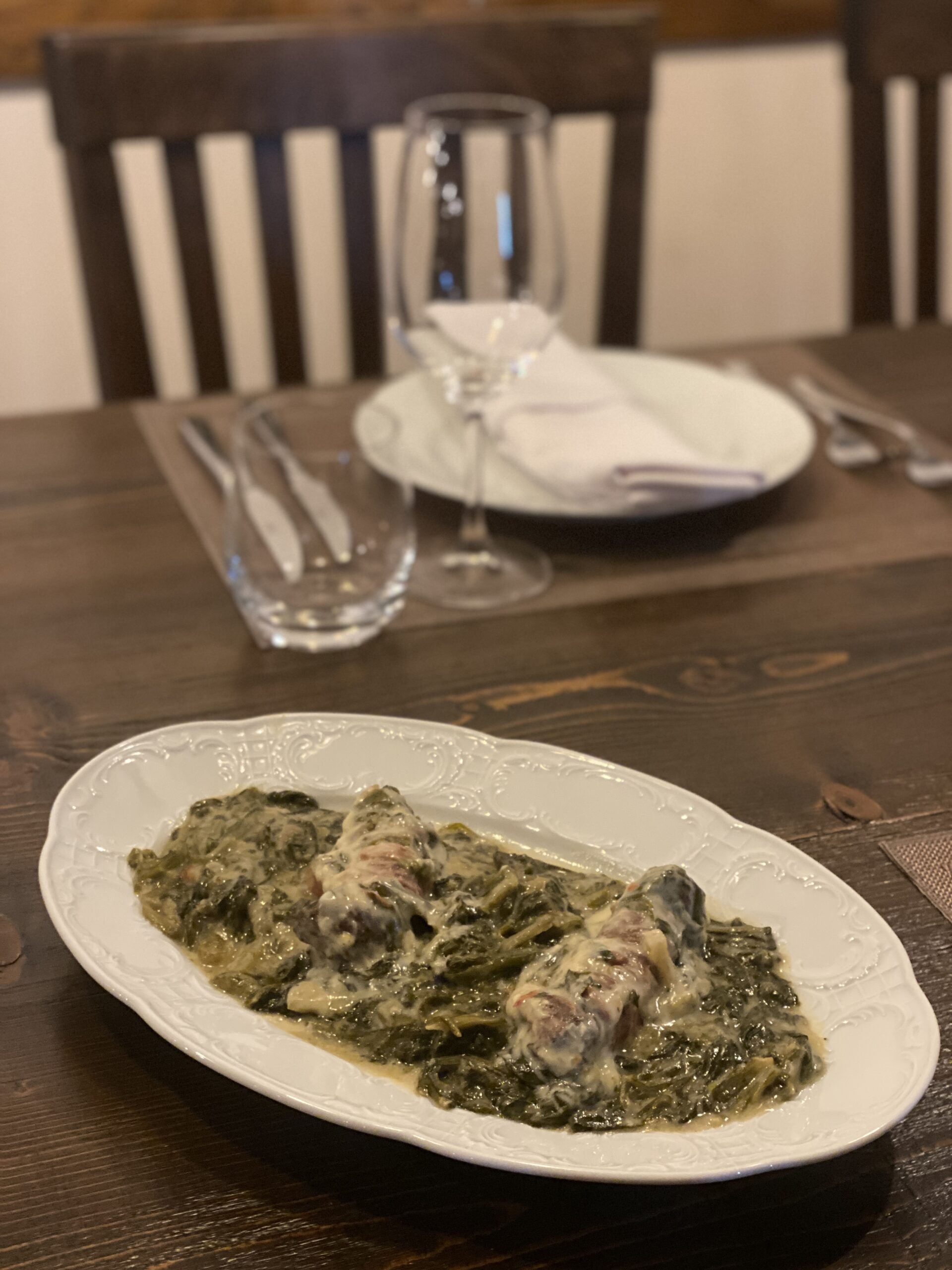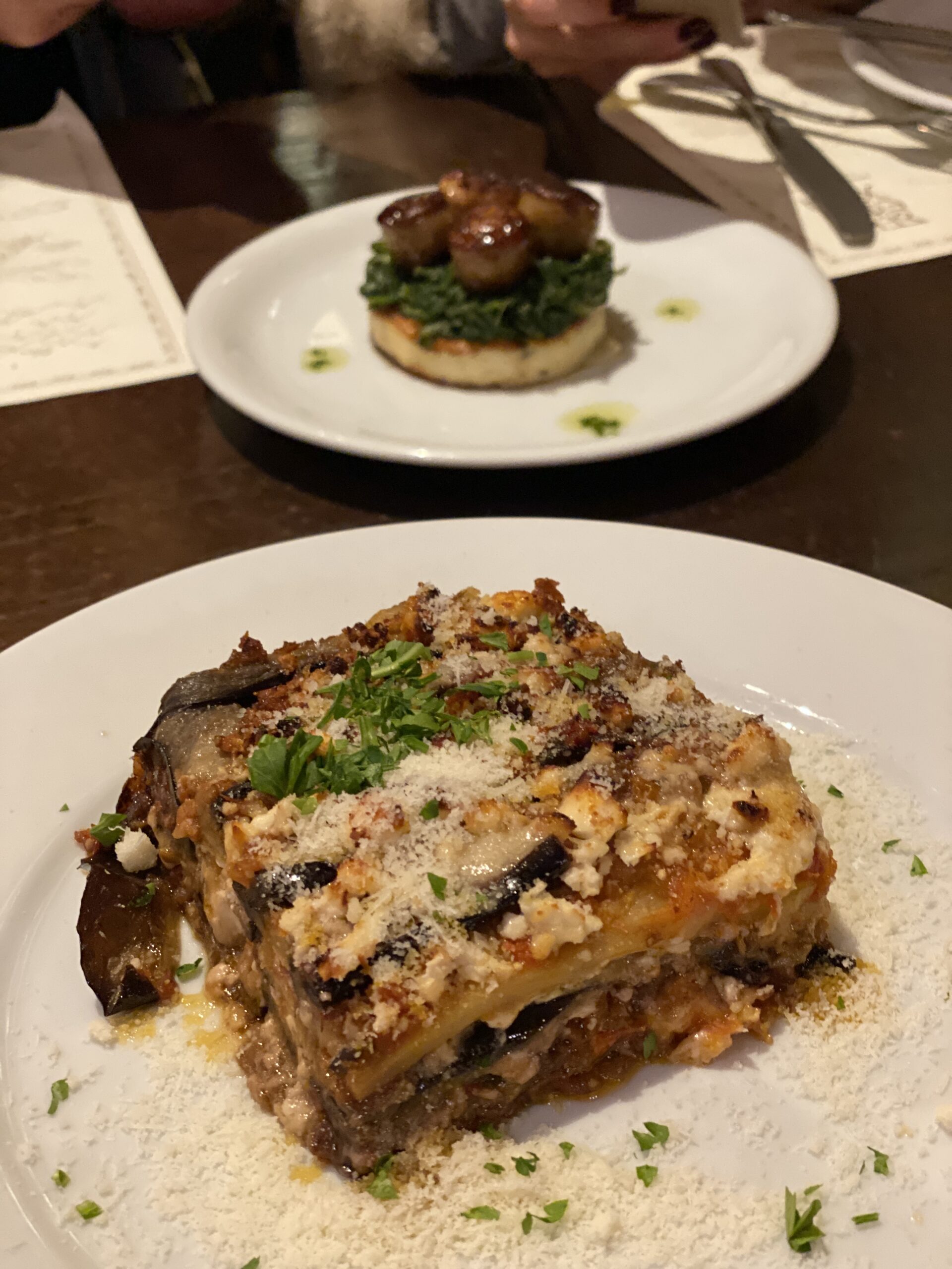 Κάθε χωριό δίνει το όνομά του και σε ένα πιάτο. Ο Μένιος, ο οικοδεσπότης στο εστιατόριο, μας υποδέχεται εγκάρδια. Ανταλλάσσουμε μερικές κουβέντες και προχωράμε στο μενού. Είναι αργά το μεσημέρι και καθώς έχουμε ήδη προγραμματίσει και βραδινό, είμαστε κάπως «προσεκτικοί και μετρημένοι» στην παραγγελία μας. Μία ολόφρεσκη πράσινη σαλάτα με ρόδι, ξινομυζήθρα και πράσινο μήλο κάνει την αρχή ενώ η συνέχεια είναι εξίσου ενδιαφέρουσα με τυρί φλαμπουρίτσα, χόρτα τσιγαριαστά και λουκάνικο. Το παστίτσιο μελιτζάνας είναι τόσο νόστιμο που οριακά δεν ζητήσαμε και δεύτερο. Μία Νεμέα του 2021, από το Κτήμα Τσέλεπου, αποτέλεσε τον ιδανικό συνδυασμό για την ιδανικά ψημένη, ταλιάτα black angus.