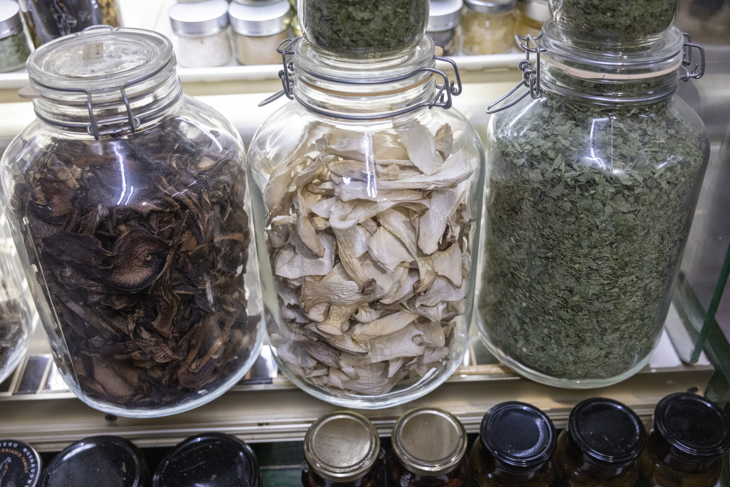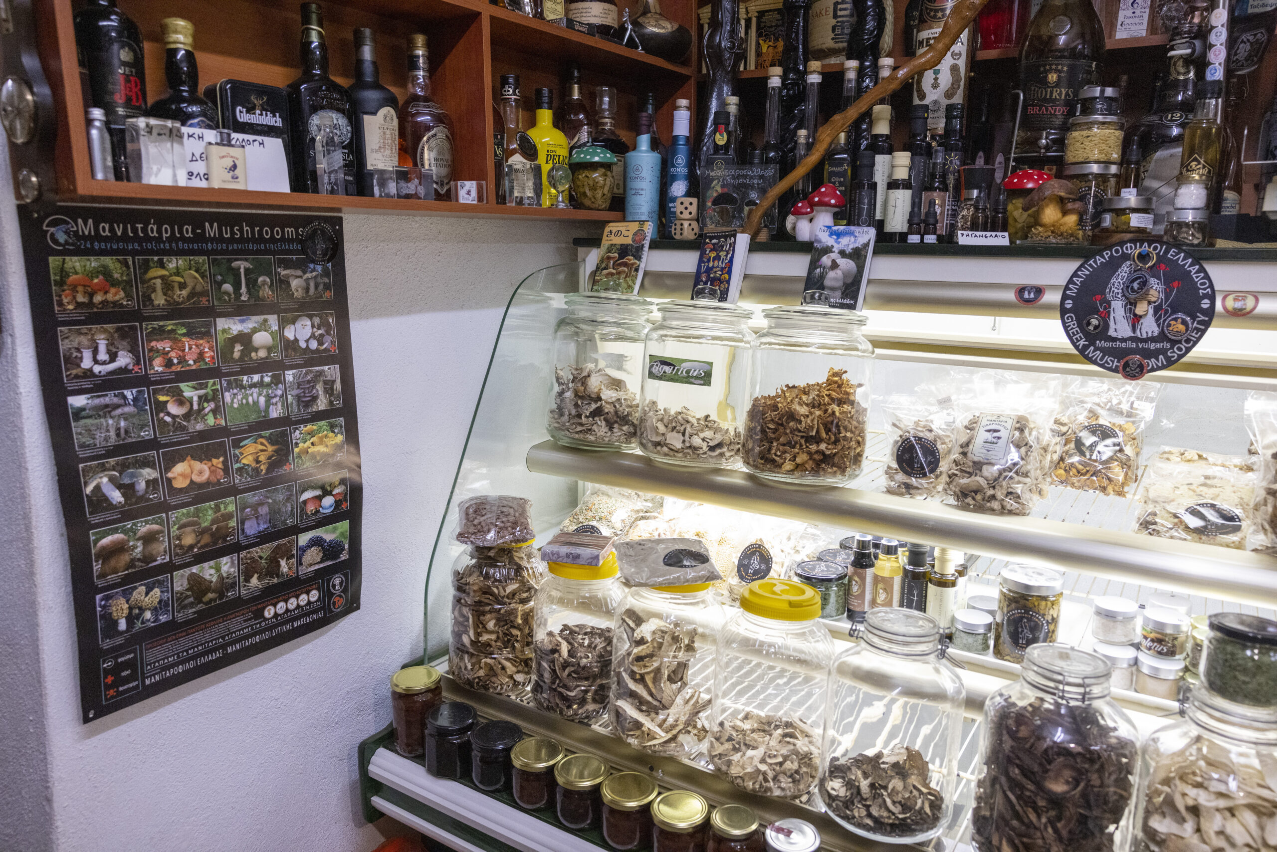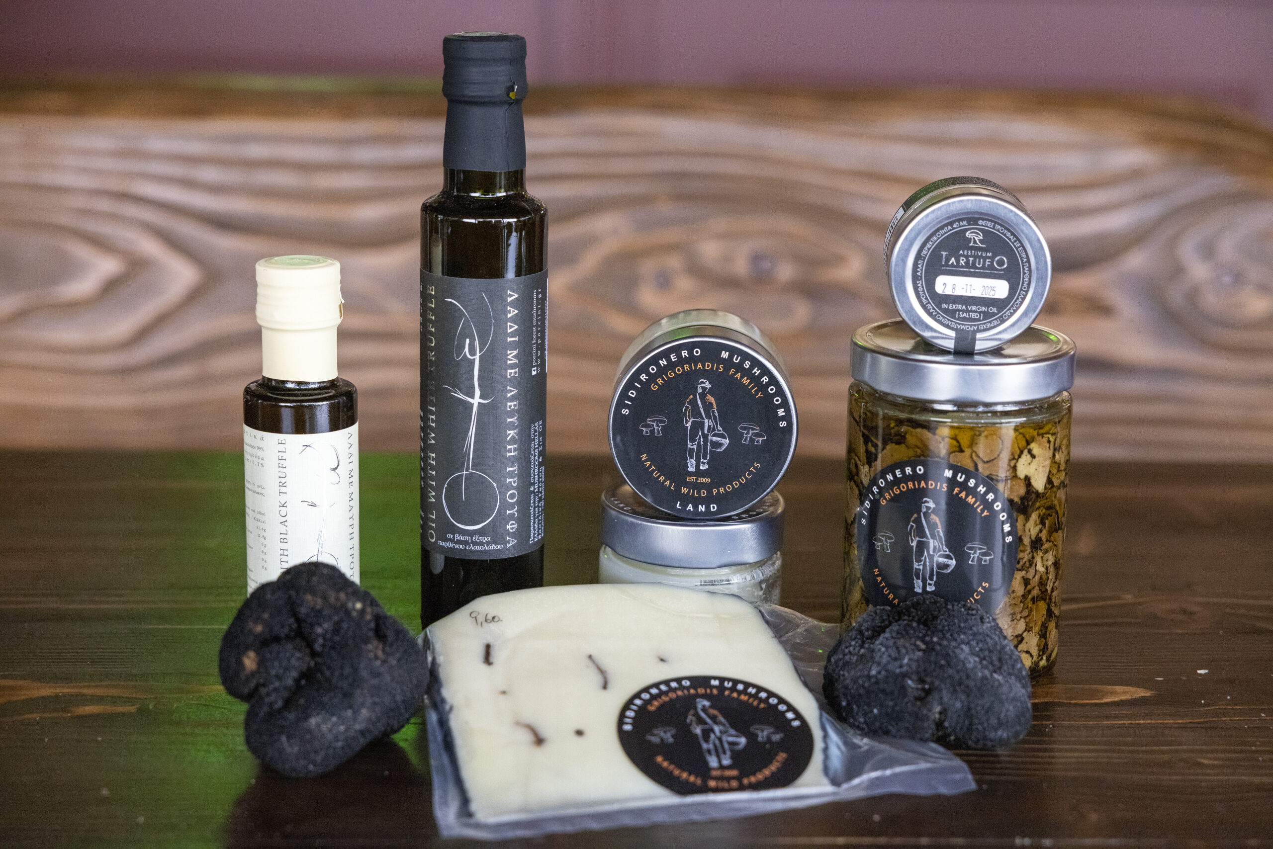 Στα ράφια της επιχείρησης δοχεία με αποξηραμένα μανιτάρια που συλλέγει η οικογένεια Γρηγοριάδη και πολλά παρασκευάσματα από διάφορους μεταποιητές όπως κασέρι με τρούφα και πορτσίνι, γραβιέρα με τρούφα και το must: αιγοπρόβειο βούτυρο με άρωμα τρούφας. Επίσης, ζυμαρικά με μανιτάρια, αλλά και λάδι τρούφας.