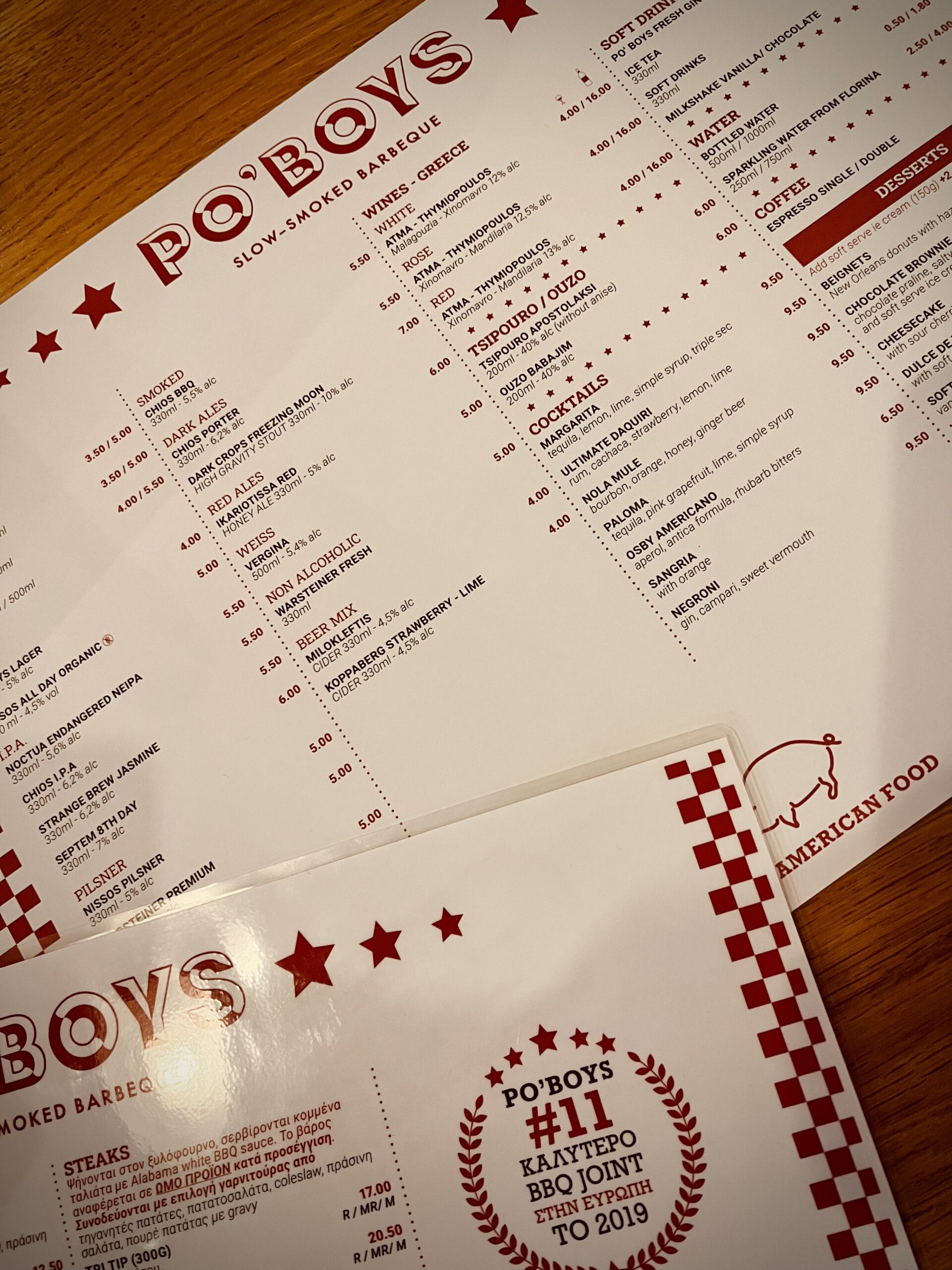 Το κρέας είναι τόσο καθαρό και πεντανόστιμο χωρίς να έχει μέσα περιττά καρυκεύματα. Αληθινό, ζουμερό κρέας, βουτυρένιο μαλακό ψωμί και τυρί που λιώνει με τον πιο ποιητικό τρόπο. Υπάρχουν τόσες πολλές επιλογές για όλα τα γούστα, ακόμα και για τον πιο απαιτητικό ουρανίσκο. Ωδή και στα bao buns με μοσχάρι, τόσο τρυφερά, όπως η «καρδιά ενός μαρουλιού» που έλεγε και μια παλιά διαφήμιση. Από κυρίως πιάτα, το Po’Boys sampler είναι εξαιρετικό πιάτο για να δοκιμάσεις όλα τα καπνιστά κρέατα που είναι όλα μπουκιά και συχώριο. Ένας «ύμνος» στους καλοφαγάδες. Μεγάλη ποικιλία από μπίρες που, είναι και αυτές επιλεγμένες πολύ προσεκτικά από μικρούς ζυθοποιούς. Εδώ, θα βρεις και τη δική τους, ολόδική τους μπίρα που έχει φίνα ελαφριά γεύση και πάει με όλα. Θα γυρίζω ξανά και ξανά, όταν χρειάζομαι η τροφή να χαϊδέψει την ψυχή μου και να μην σκέφτομαι τις θερμίδες.
