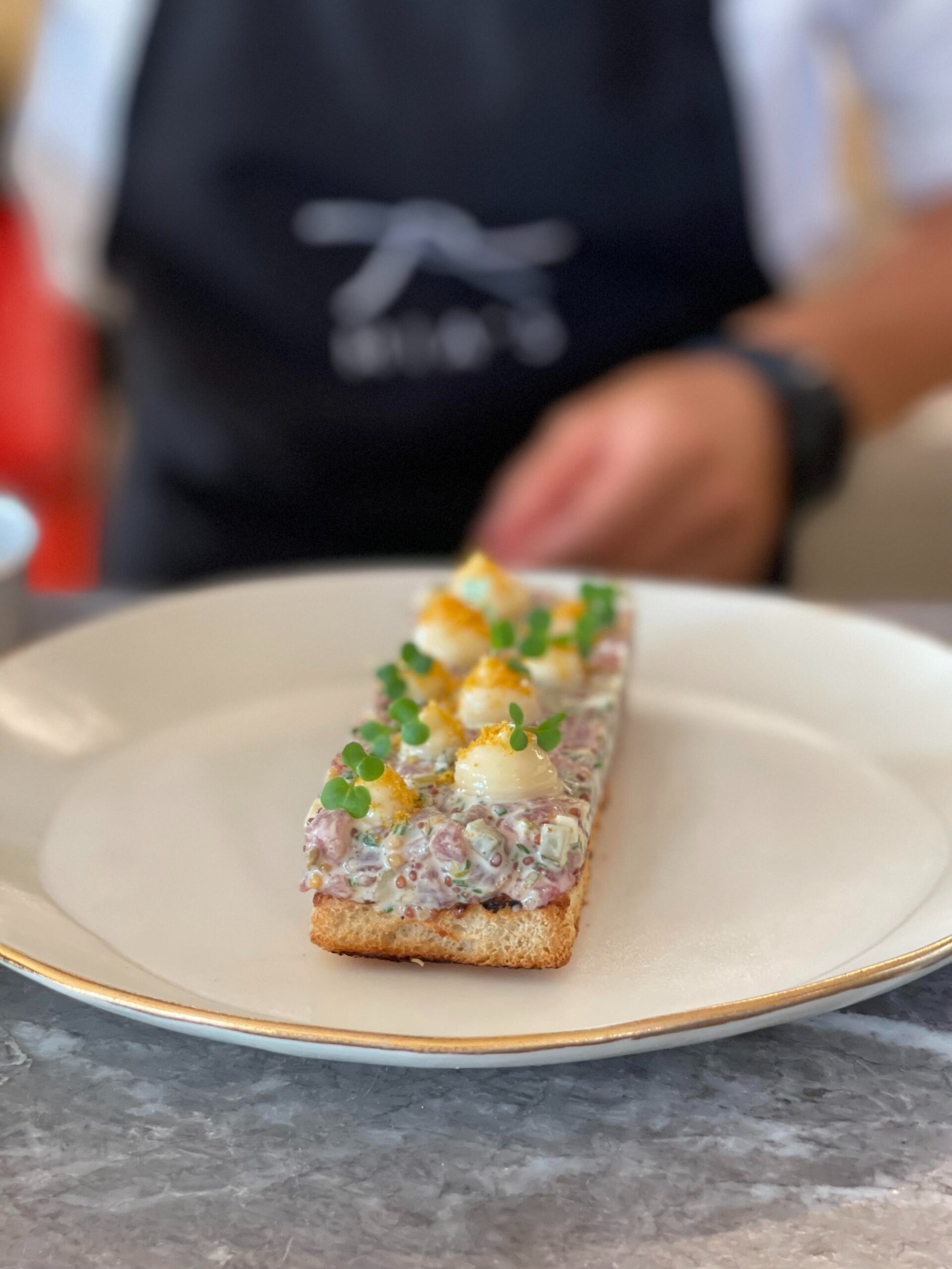 Την αρχή κάνουν ορεκτικά όπως για παράδειγμα ένα σεβίτσε τσιπούρας με καρπούζι και ψητές πιπεριές ή μια σιφνέικη ρεβυθάδα ενισχυμένη με κουρκουμά, μους ταραμά και χειροποίητη μπρεζάολα από τονάκι Αλοννήσου, ενώ η συνέχεια περιλαμβάνει κύριες προτάσεις με ελληνική έμπνευση σαν το παστίτσιο με μοσχαρίσια ουρά και νιφάδες από αρσενικό Νάξου.
