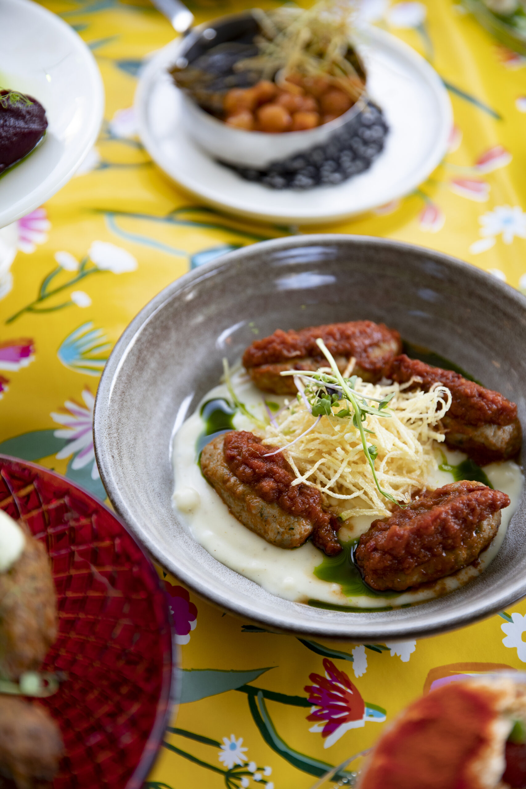 Ενώ μιλάμε με τον Μίλτο, μας ακουμπάει στο τραπέζι την σπανιόλικη ομελέτα της ημέρας. Μια παραδοσιακή τορτίγια με πατάτα και αυγό. Οι ανατροπές του Μίλτου συνεχίζονται με γαρδουμπάκια με γαρίδες, σουτζουκάκια τόνου και καλαμαράκια με τσιγαρέλι. «Μ’ αρέσει να τολμάω και να ψάχνω φρέσκες πρώτες ύλες κάθε ξημέρωμα στην αγορά. Για μένα εκείνη την ώρα ξεκινάει το μαγείρεμα», λέει και μάς σερβίρει ένα κους-κους με μους φέτας και σκόνη ντομάτας.