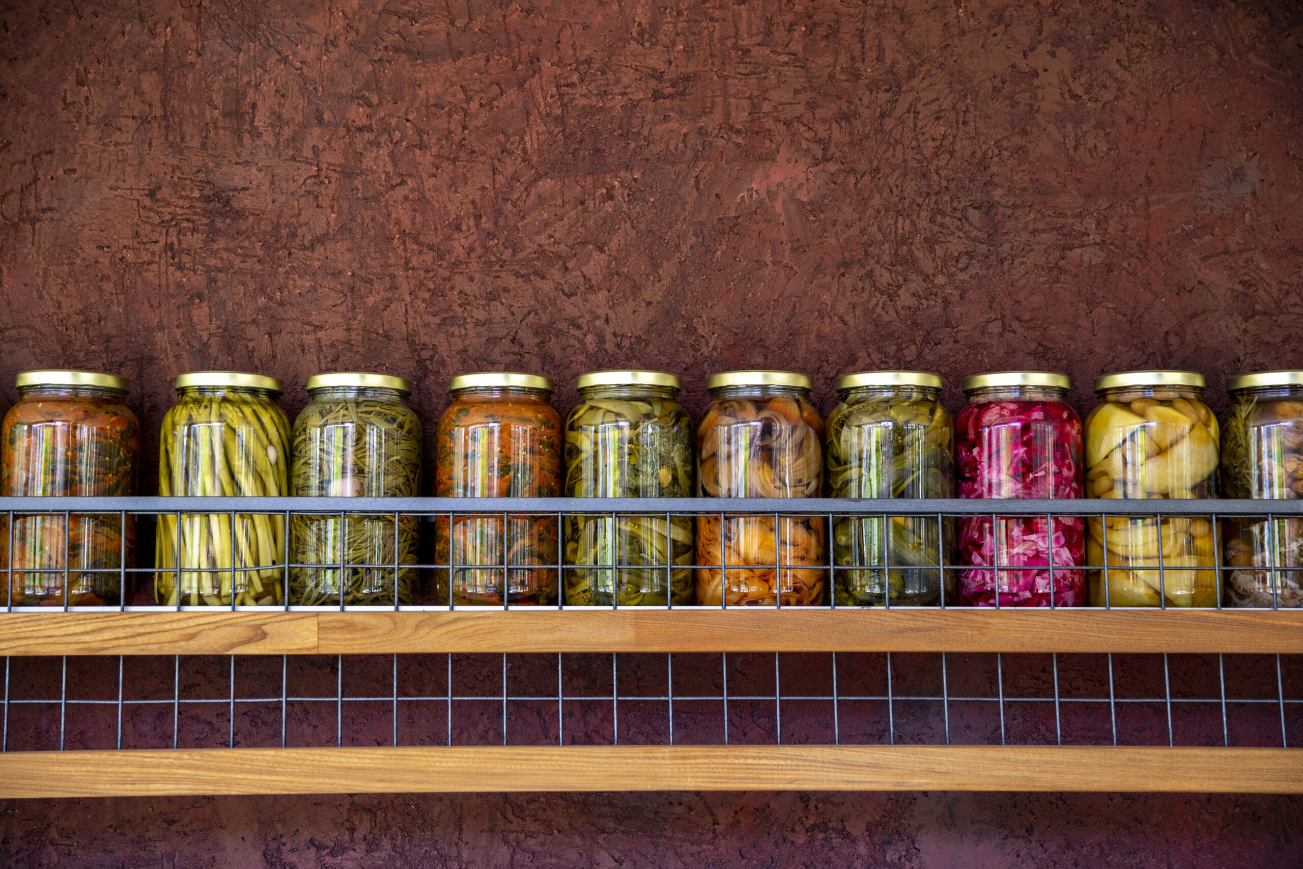 Όσο μιλάμε, ο Μίλτος, πληθωρικός και αεικίνητος, πηγαινοέρχεται στην κουζίνα. Μας φέρνει να δοκιμάσουμε μια ποικιλία από τα τουρσιά που φτιάχνει μόνος του. Δεκάδες πολύχρωμα βάζα μέσα στο μαγαζί είναι γεμάτα με ολόφρεσκα λαχανικά και φρούτα που τα μεταμορφώνει σε γευστικά τουρσιά και συνοδεύουν καταπληκτικά το ουζάκι που πίνουμε.