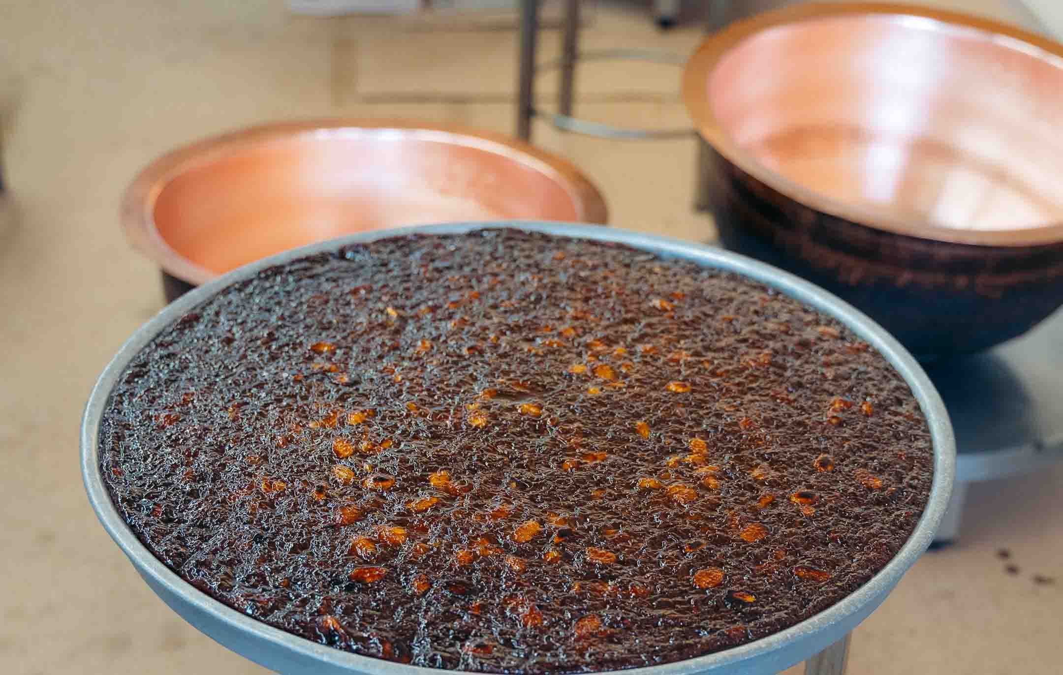 Θυμάμαι το 2015, νωρίς το πρωί, στο εργαστήριο ζαχαροπλαστικής του Θεοδόση Μπελεντερίδη, μου έδειχνε τα μυστικά ώστε ο χαλβάς Φαρσάλων να παραμένει αέρινος, κεχριμπαρένιος, καραμελωμένος, χωρίς να υπερτερεί το άμυλο από το νισεστέ. Η συνταγή που ακολουθεί προέρχεται από την οικογένεια του, από μακρινό συγγενή του από τα Σέρβια Κοζάνης. Βασικό συστατικό ωστόσο είναι πάντα οι ποιοτικές πρώτες ύλες, ενώ εξαιτίας της ιδανικής γεύσης που πετυχαίνει, ο χαλβάς ταξιδεύει σε ολόκληρο το λεκανοπέδιο και όχι μόνο. Ο χαλβάς παρασκευάζεται σε μπακιρένιο καζάνι, και περιέχει αμύγδαλα, ζάχαρη, νισεστέ και βούτυρο. Η σωστή τεχνική παράλληλα είναι ένα ακόμη πολύ βασικό υλικό. Θυμάμαι ακόμη τη μαεστρία με την οποία ο Θεοδόσης αναποδογύριζε το μείγμα κινώντας το καζάνι. Η σωστή χρονική στιγμή που θα αναποδογυρίζει τον χαλβά αλλά και που θα τον αδειάσει στο ταψί είναι πολύ σημαντική, ώστe να είναι μεν έτοιμος, αλλά να μην «αρπάξει» γιατί θα χάσει το μοναδικό του άρωμα.