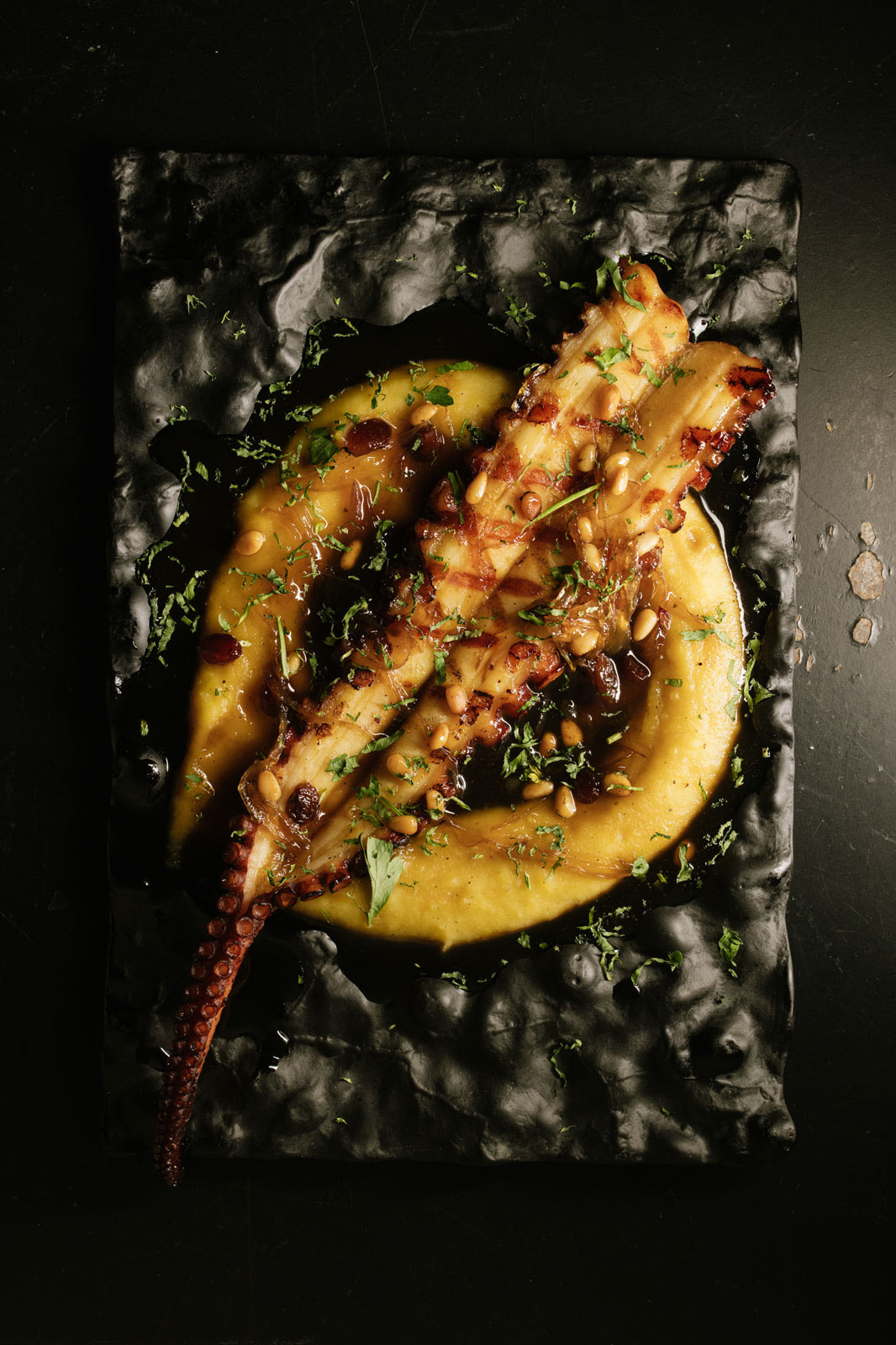 Η καινούρια κουζίνα, εκτός από δυνατή σχάρα με φρέσκα ψάρια, αλλά και εκλεκτά κρέατα, έχει καταπληκτικά τηγάνια, όπου ετοιμάζονται ριζότο καραβίδας, λιγκουίνι με αχιβάδες και κριθαρότο γαρίδας με τραγανή κάπαρη και λάδι σχοινόπρασου.