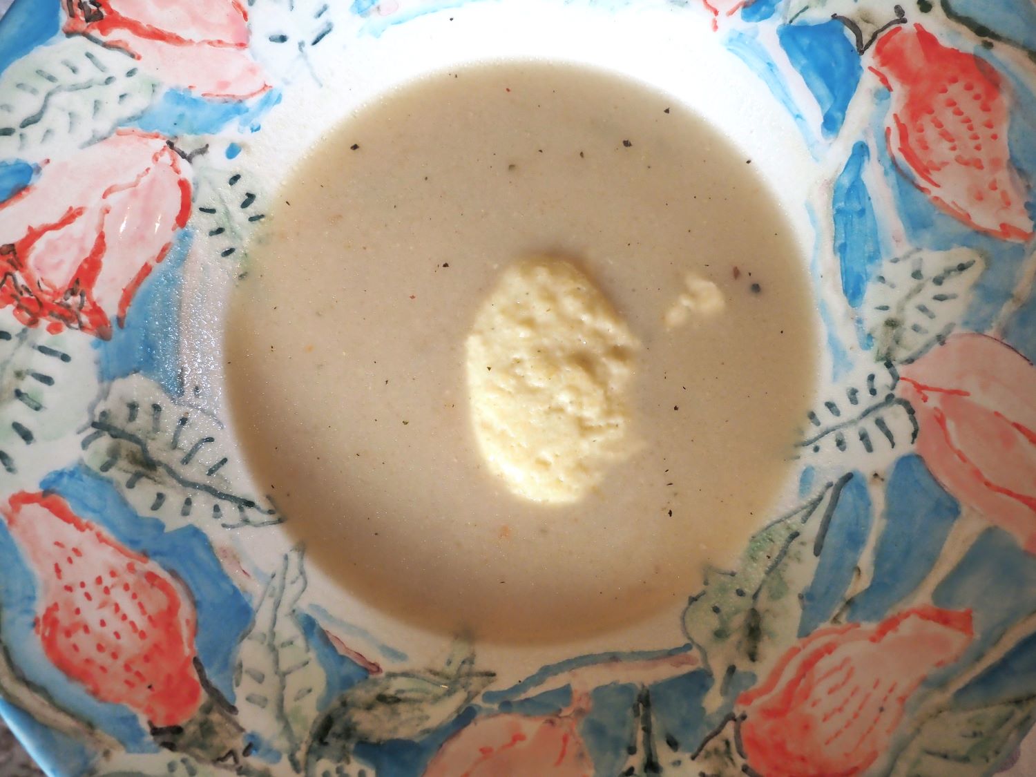 Όταν μαγειρεύτηκαν τα λαχανικά, έβαλε και τις μερίδες του ψαριού να βράσουν σκεπασμένες από το ζουμί. Όταν και αυτές ήταν έτοιμες – αναλόγως του μεγέθους του ψαριού τα μικρά βράζουν πολύ γρήγορα, ενώ τα πιο χοντρά αργότερα – τις μετέφερε σε ταψί μαζί με πατάτες και καρότα, σούρωσε το ζουμί στην κατσαρόλα που θα έκανε τη σούπα και πρόσθεσε αλεσμένα τα υπολείμματά των λαχανικών και του ψαριού. Όταν το ζουμί άρχισε να κοχλάζει έβαλε το ρύζι και μόλις έβρασε – με προσοχή να μην «σπάσει – το κατέβασε και το άφησε να κρυώσει λίγο για να το εμπλουτίσει με αβγολέμονο. Χτύπησε ένα κρόκο και δύο ασπράδια με χυμό λεμονιού, αβγόκοψε αραιώνοντας αργά το μίγμα με ζουμί από τη σούπα. Έτσι, η ομογενοποίηση γίνεται φυσιολογικά και η σούπα ξεκουράζεται για να κοινωθεί.