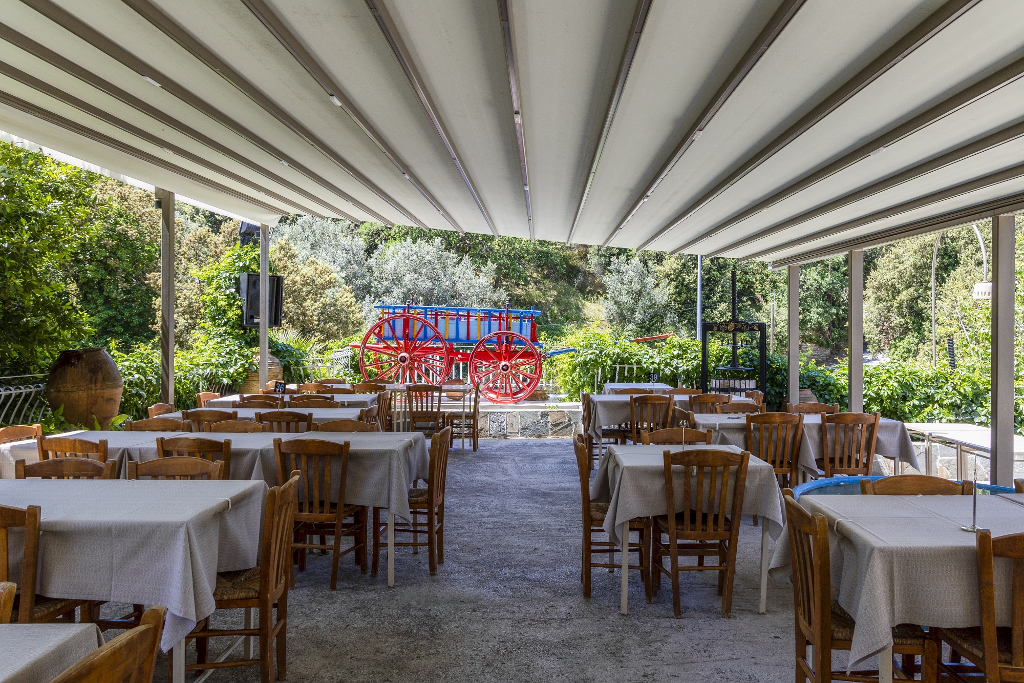 Δίπλα σε καταπράσινη ρεματιά με πλατάνια και τρεχούμενο νερό, αυτή η οικογενειακή ταβέρνα λειτουργεί αδιαλείπτως από το 1930 και βρίσκεται σήμερα στα χέρια της τέταρτης γενιάς. Υπερυψωμένη και σκιερή βεράντα, ρουστίκ σάλα με τζάκι. Μεγάλη ποικιλία δικών τους κρεάτων από το εκτροφείο τους (έχουν και ελάφια), λαχανικά και τυριά από το χωριό και τη γύρω περιοχή.