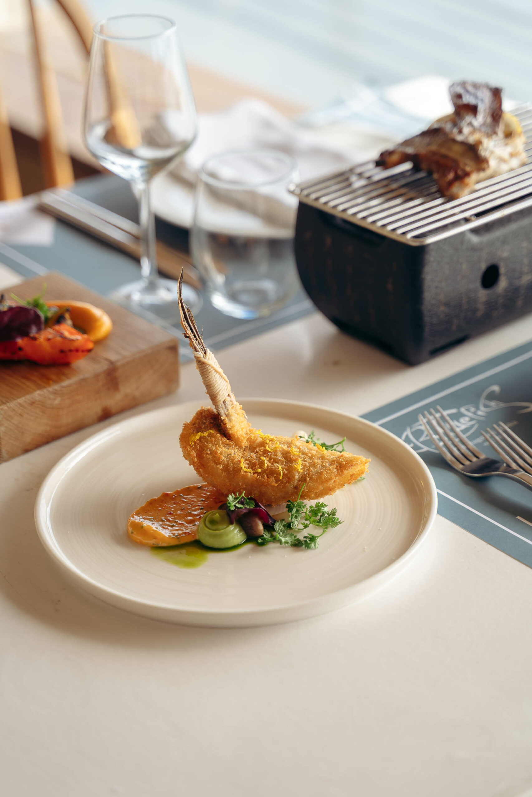 Πρωτοπήγα στο BlueFish της Βουλιαγμένης την άνοιξη του 2021 και, όντας επίτιμο μέλος της λέσχης της κρεατοφαγίας, πρέπει να ομολογήσω ότι απέδωσα την εξαιρετική πρώτη εντύπωση στην καλή παρέα, τον πανέμορφο χώρο και το μαγευτικό τοπίο. Πως ήταν εξάλλου δυνατό ένα T-Bone ξιφία να έχει τόσο πλούσια και πολύπλοκη γεύση; Αποφασισμένη να εξιχνιάσω το μυστήριο, πήγα ξανά σύντομα. Αυτή τη φορά η εμπειρία μου ήταν ακόμη πιο θετική αφού αποφάσισα να μυηθώ στα άδυτα του «head to tail» – μια τελετουργία όπου χρησιμοποιούνται όλα τα μέρη του ψαριού για τη δημιουργία ενός μενού με τρομερό γευστικό βάθος. Έτσι, από σκεπτικιστή μετατράπηκα κατευθείαν σε θαμώνα, αποφασίζοντας ότι η μοναδική λέσχη στην οποία αξίζει να ανήκει κανείς είναι αυτή της καλοφαγίας.