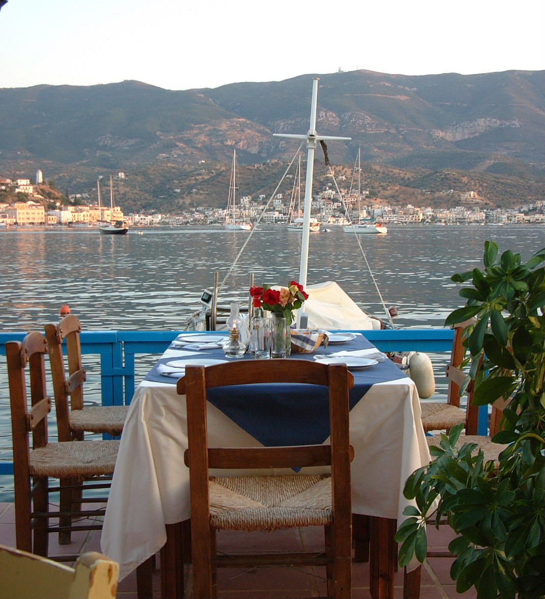 Ταβέρνα στον παραλιακό δρόμο με όμορφη θέα στο κανάλι. Ψαρικά από δικό τους καΐκι. Μεσογειακά πιάτα όπως γαριδομακαρονάδα, μπιφτέκι θαλασσινών, ή ριζότο με μπέικον σολομού.