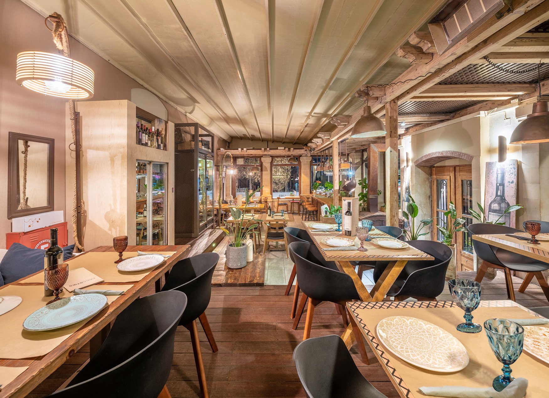 Σε ένα μοντέρνο και στιλάτο χώρο που διαθέτει και μπαλκόνι με θέα στη θάλασσα, θα γευτείτε μοναδικά πιάτα, φτιαγμένα με ως επί το πλείστον τοπικά προϊόντα. Δοκιμάστε την καπνιστή χοιρινή μπριζόλα που καπνίζεται σε κρητικά βότανα για 5 ώρες, την μοσχαρίσια ταλιάτα με θυμαρίσια σάλτσα και οφτή πατάτα, τα άψογα βρασμένα χόρτα και μια εκτεταμένη λίστα κρασιών.