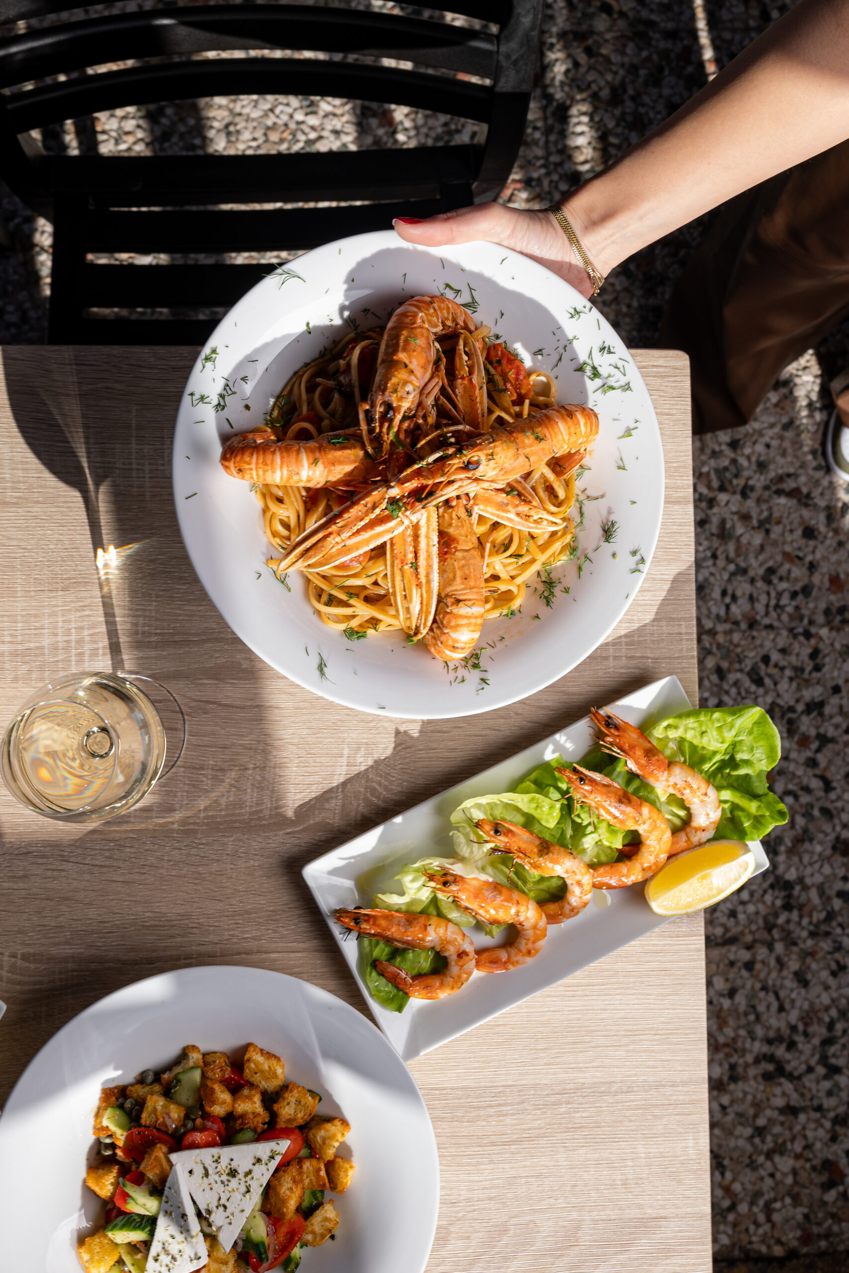 Ξεχωριστή νοστιμιά, το κεμπάπ τόνου με πίκλα κρεμμύδι, τα ψητά φασολάκια και τα κολοκυθάκια με δυόσμο και dressing από κάσιους, τα λιγκουίνι με κοκκινιστό κιμά χταποδιού. Οι κλασικοί, θα διαλέξουν κάποιο από τα φρέσκα ψάρια για σχάρα ή για τηγάνι. Υπάρχουν επιλογές και για τους κρεατοφάγους (ψητός κόκορας σε μαρινάδα ντομάτας με ψητά φασολάκια, steak από μαύρο χοίρο με τηγανητές κ.ά.).