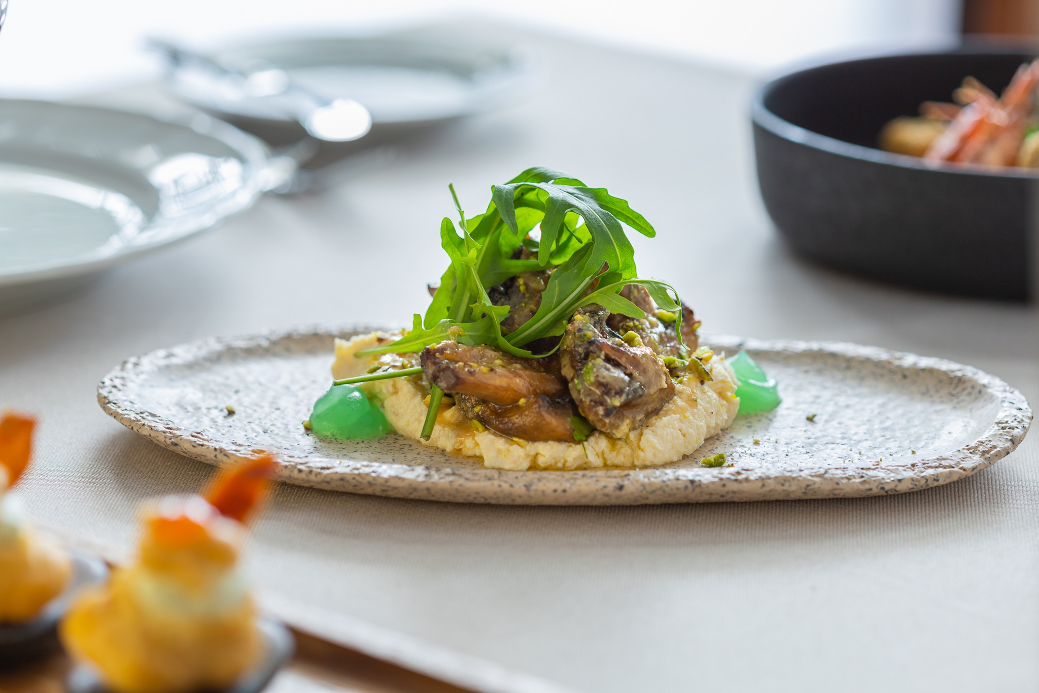 Εδώ, η παραδοσιακή πέστροφα συναντάει τα καβουρδισμένα αμύγδαλα και κερδίζει σε ένταση και γευστικό βάθος. Οι γαρίδες σοτέ συντεριάζονται με σάλτσα ούζου και μαραθόριζα. Το τοπικό μανούρι δένει ιδανικά με μαριναρισμένα σύκα και τα μανιτάρια του δάσους συναντούν την πραλίνα φουντουκιού.