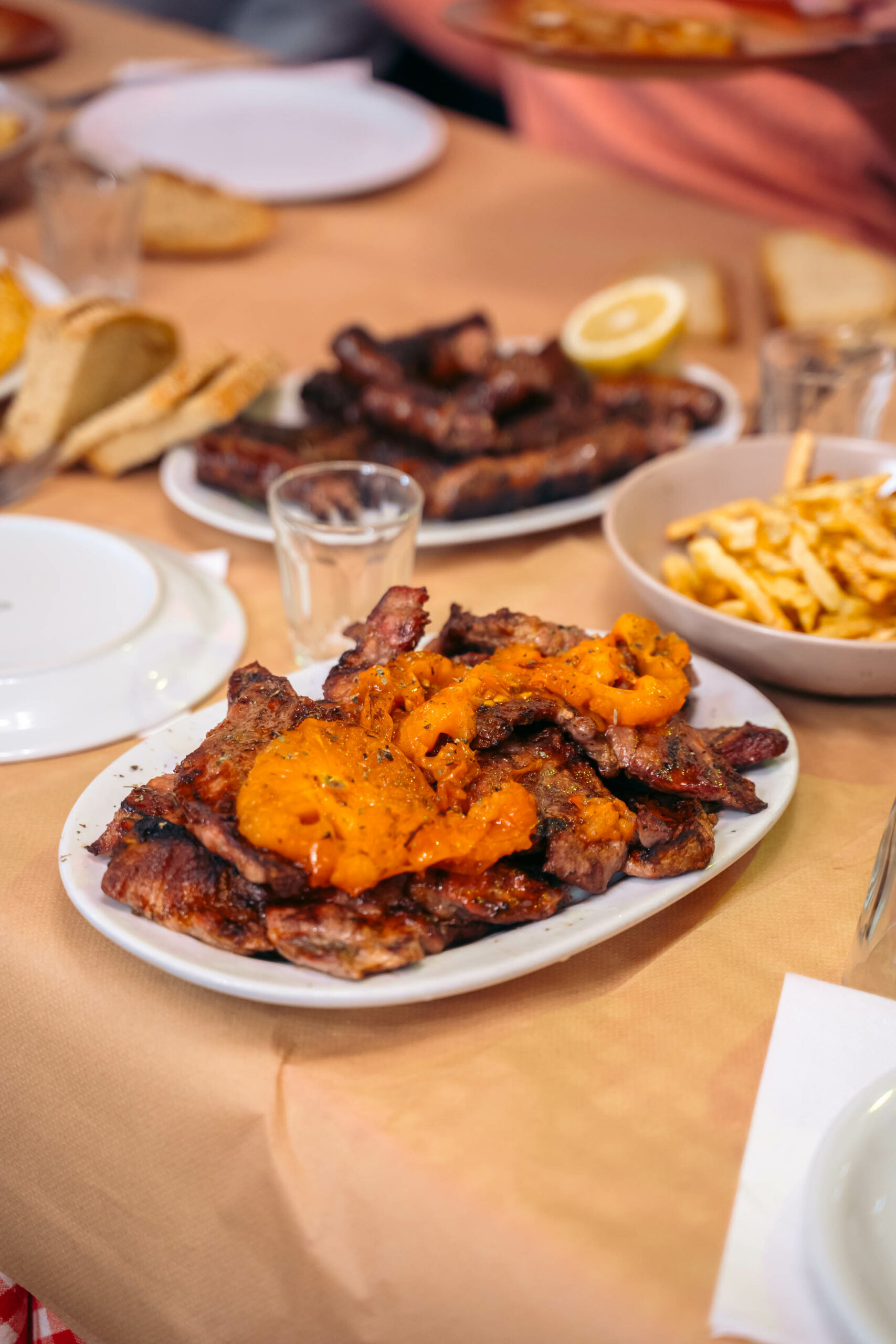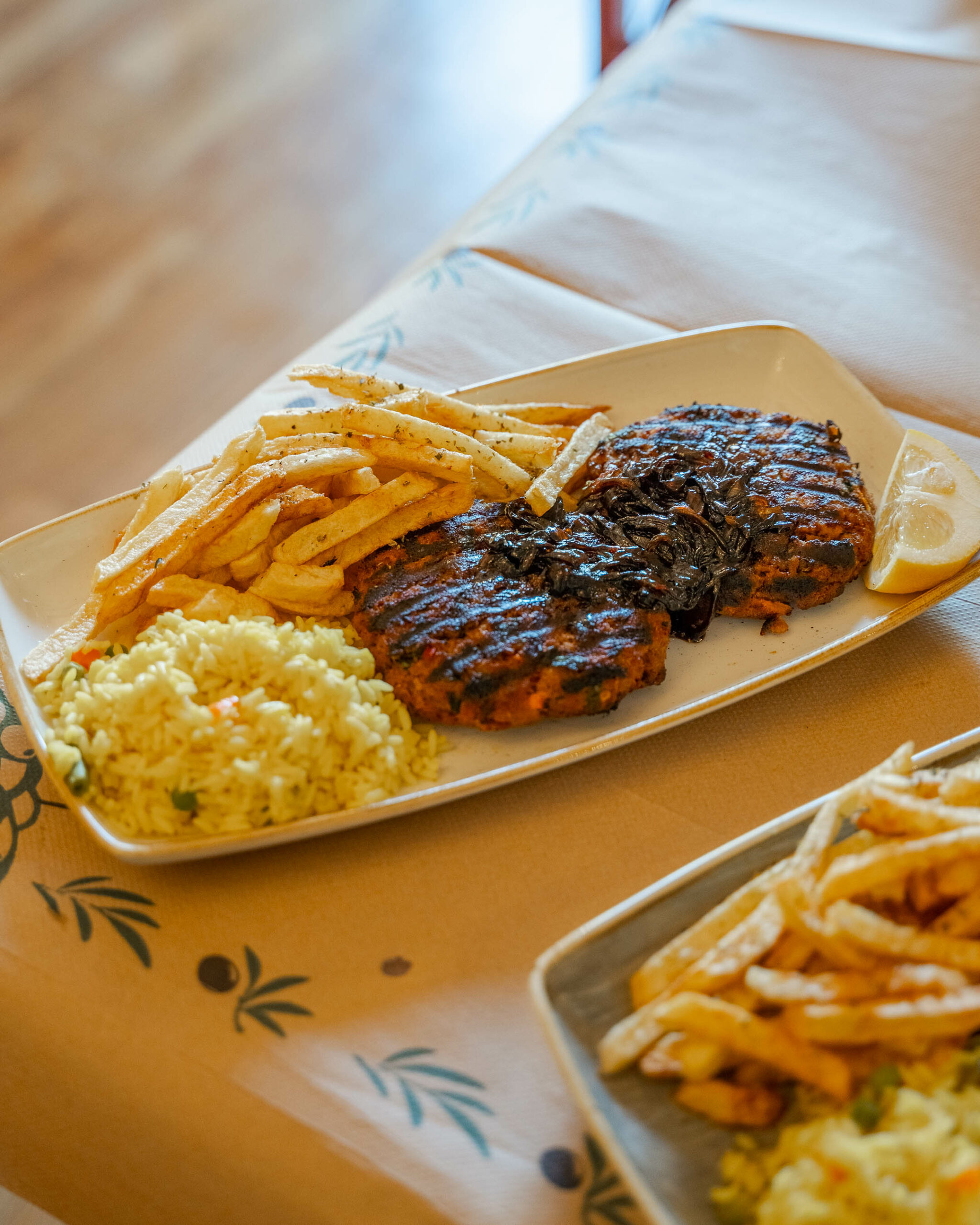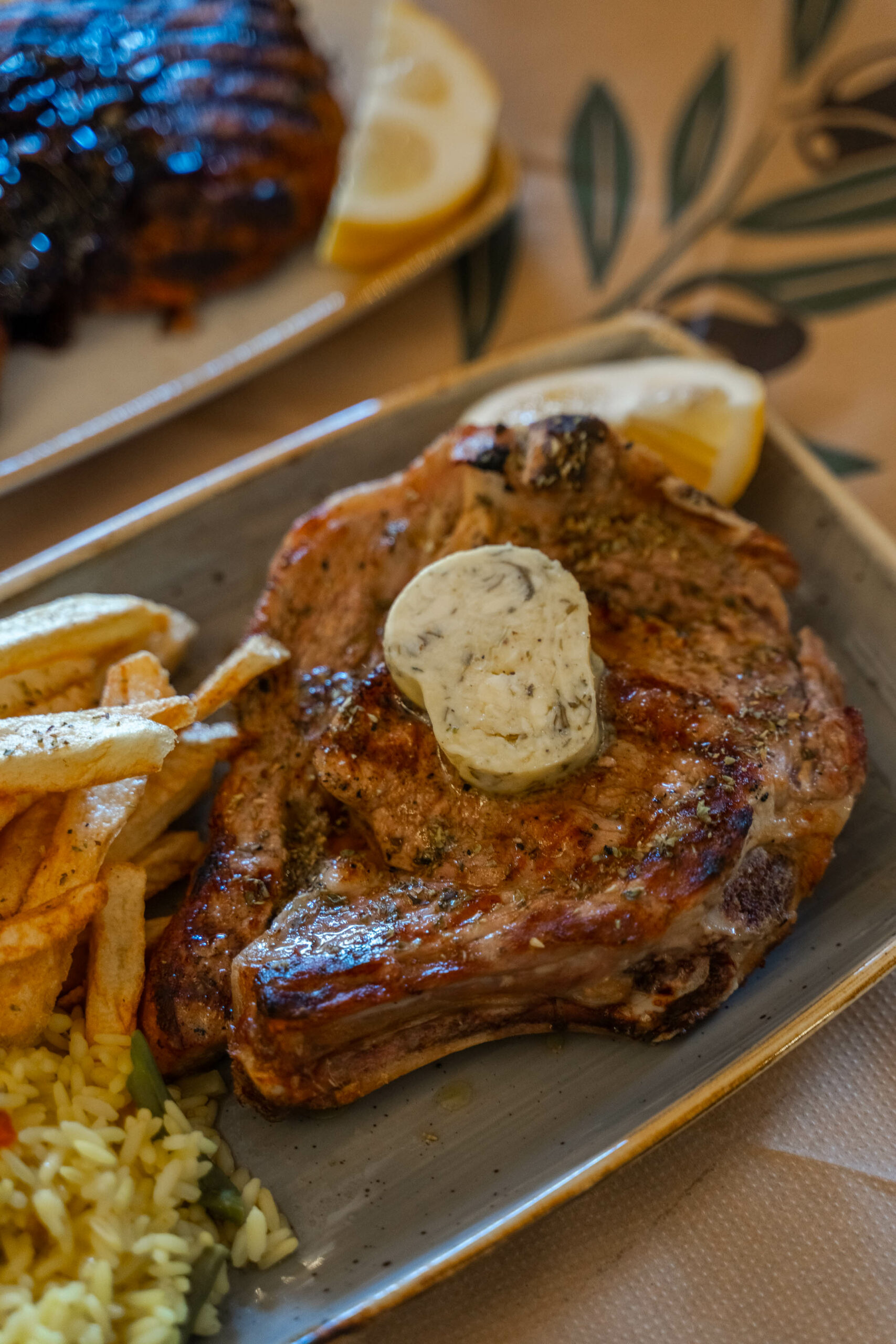 Δοκιμάζουμε νόστιμα ψητά, γευστικά αφράτα μπιφτέκια, και σε συνδυασμό με τις ολόφρεσκες σαλάτες δημιουργούν ένα ιδανικό γεύμα. Επίσης εδώ θα βρούμε το τυροπιτάρι, μία νόστιμη και αέρινη τηγανητή τυρόπιτα, φέτα «σαγανάκι» με κρούστα από σουσάμια και μέλι, παστό χοιρινό με αυγά, λουκάνικα και φυσικά συκώτι μοσχαρίσιο. Ανάλογα με την ημέρα θα βρείτε διάφορα μαγειρευτά, όπως κόκκορα με χυλοπίτες, κοκκινιστό μοσχάρι, σούπες.