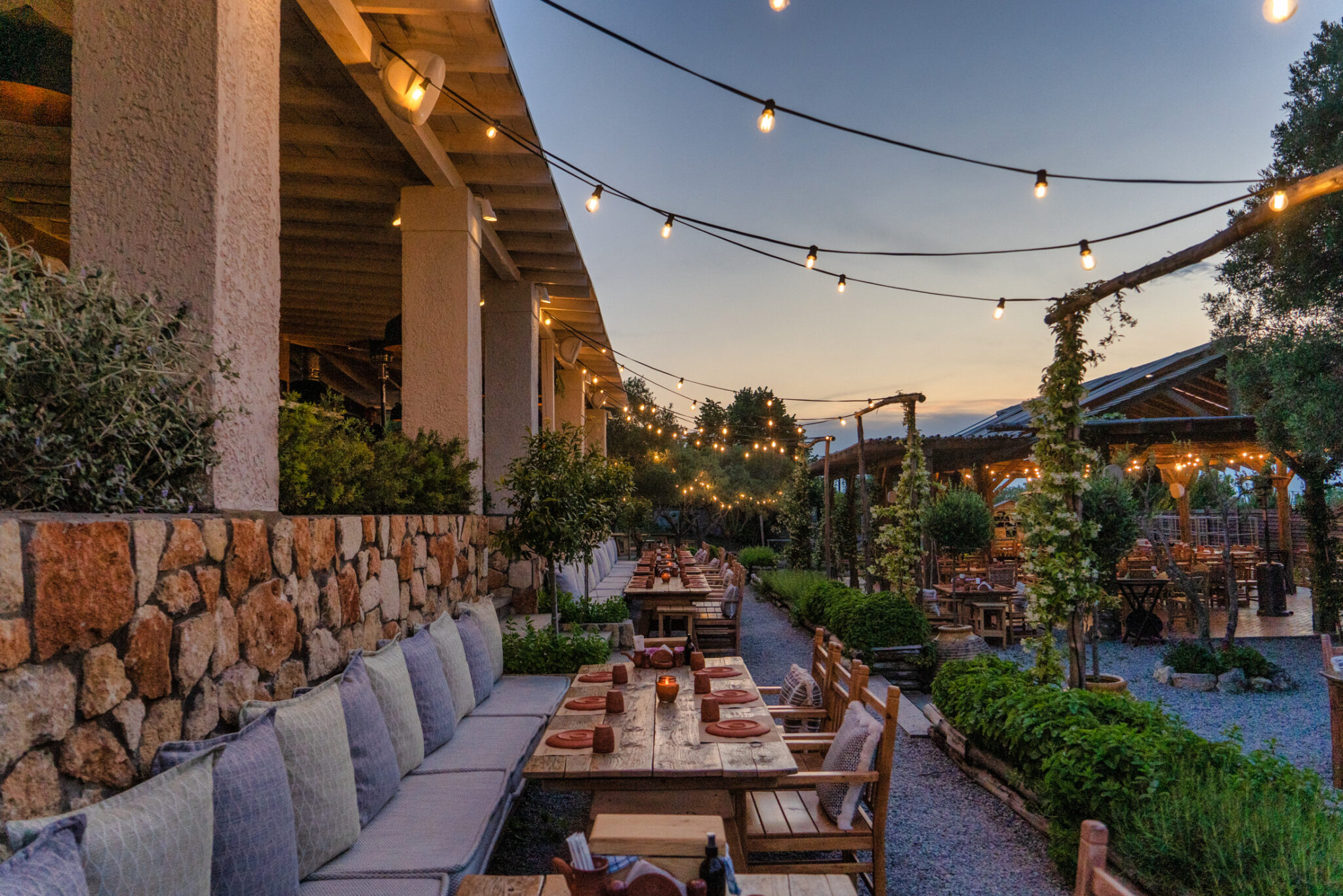 Ένα μαγευτικό δάσος από πανύψηλες βελανιδιές καδράρει το εστιατόριο σε υψόμετρο 620 μέτρων στους πρόποδες του Χολομώντα, λίγο έξω από το παραδοσιακό χωριό Αρναία, στο υπέροχο άλσος της Αγίας Παρασκευής με το ιστορικό εκκλησάκι του. Ο ιδιοκτήτης και σεφ Δημήτρης Πολύζος με βάση τη μακρόχρονη πείρα του σε εστιατόρια των Βρυξελλών, δημιουργεί μία ζωντανή ελληνική κουζίνα με προσωπικές πινελιές, που βασίζεται κυρίως σε τοπικά προϊόντα. Μέρος των αναγκών του εστιατορίου σε καλοκαιρινά λαχανικά εξυπηρετείται από το μποστάνι του ενώ κορμός του μενού είναι τα ντόπια κρέατα συν κάποιες premium κοπές μοσχαριού που έρχονται από το εξωτερικό. Πιάτα με ιδιαίτερο ενδιαφέρον είναι το σιγομαγειρεμένο Μοσχάρι με λευκό κρασί, κρεμμύδι και γλυκό τραχανά από αγελαδινό γάλα, η μαύρη Φακή με παντζάρι και φιλέτο κολιού, το Φύλλο κρούστας με κατσικίσιο τυρί, σάλτσα εσπεριδοειδών και πίκλα κρεμμυδιού, η Παντσέτα σιγοψημένη και καραμελωμένη με πλιγούρι, βότανα και δαμάσκηνα. Ο χώρος αποπνέει φιλόξενη, comfort διάθεση με το ξύλο και την πέτρα ως βασικά δομικά υλικά, διαθέτει μεγάλη και ασφαλή παιδική χαρά και είναι pet friendly.