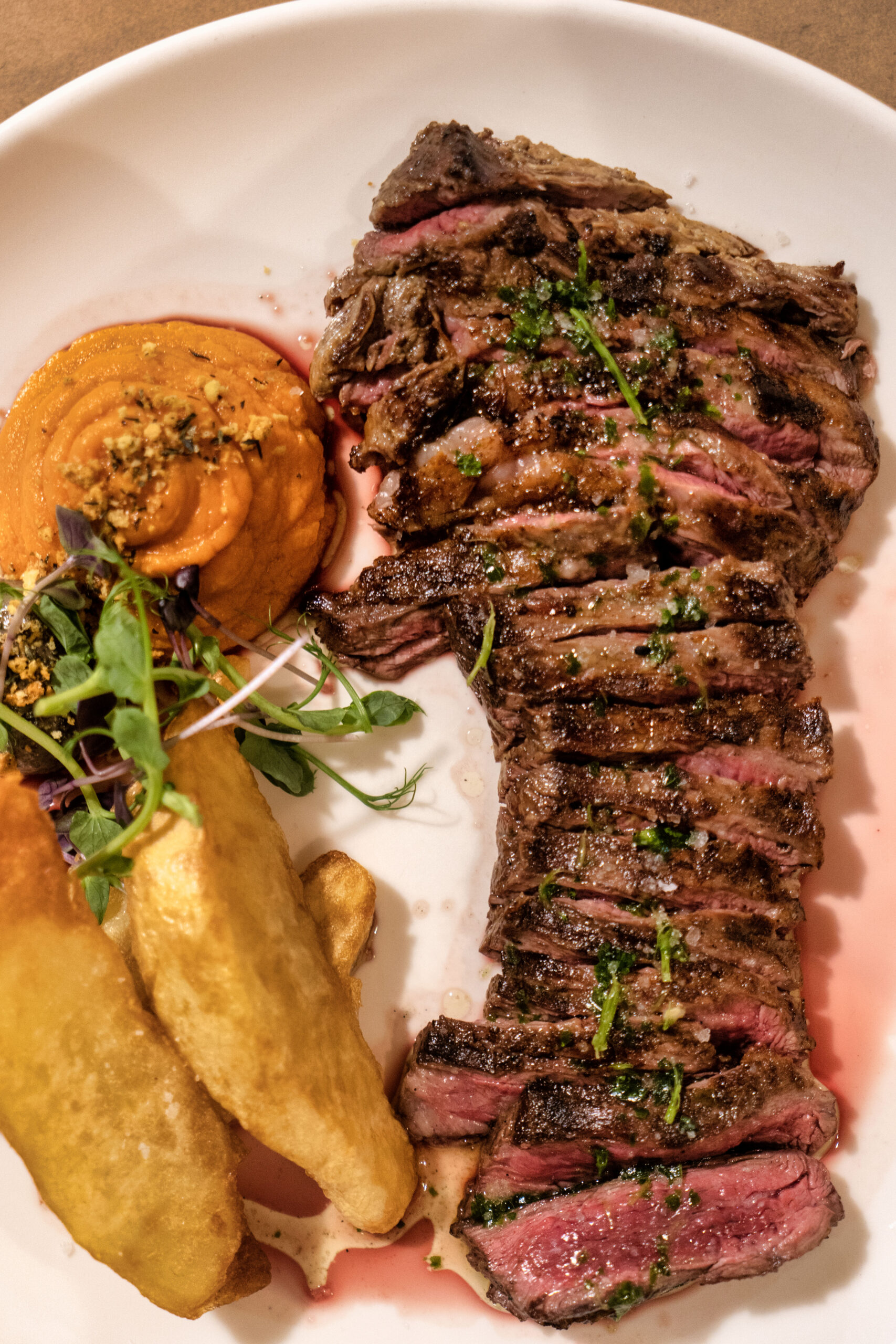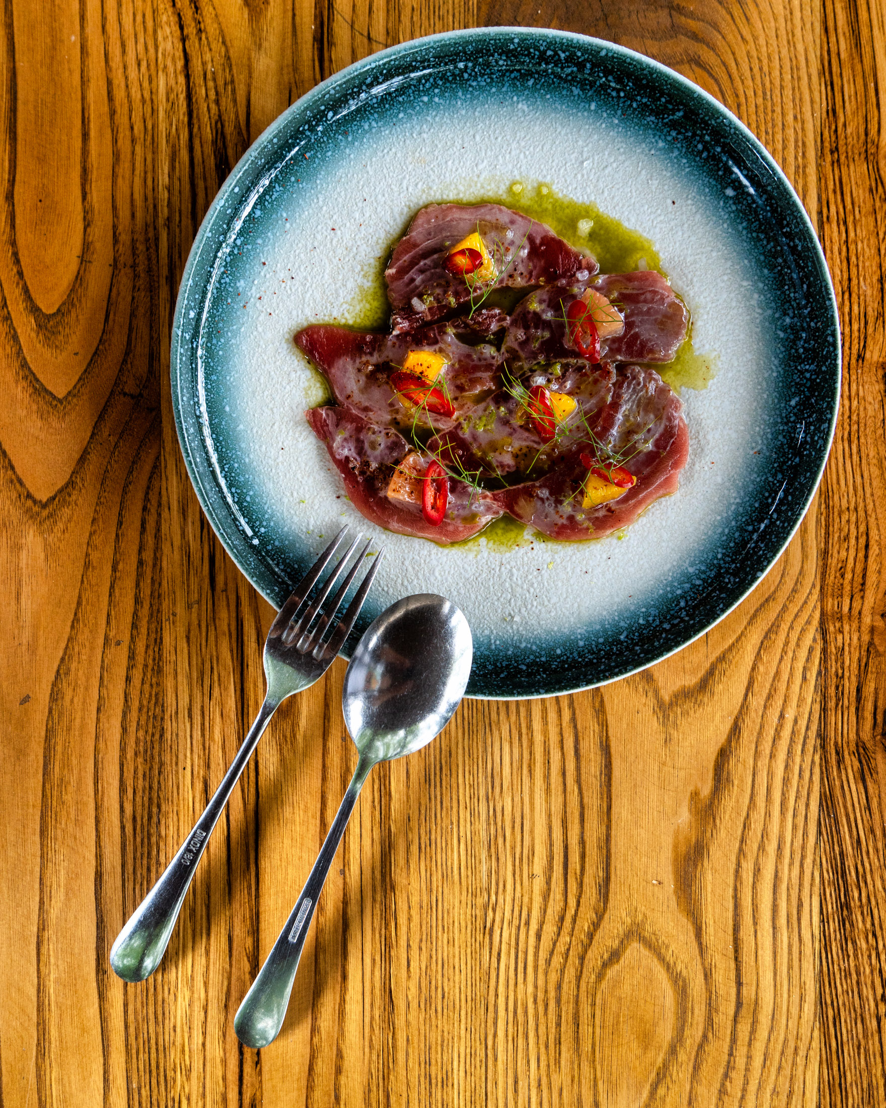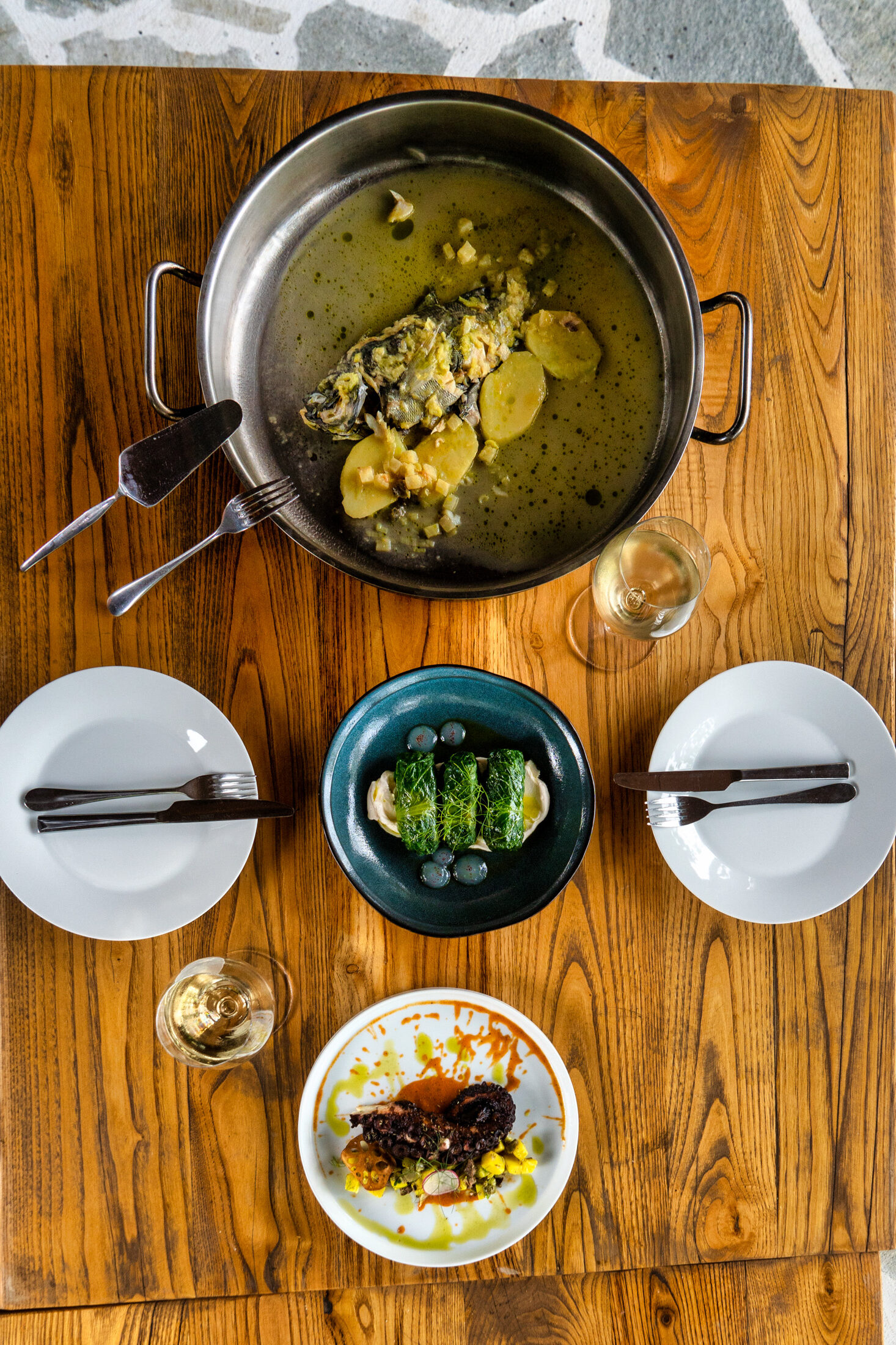Πεντανόστιμες οι φρέσκες Παπαρδέλες με ραγού από μοσχαρίσια μάγουλα και ασυναγώνιστα τα παϊδάκια. Κρέας προβατίνας από τον Παναγιώτη Μουλκιώτη, ντόπια χοιρινά και αμνοερίφια από τη βόρεια Χαλκιδική, μοσχάρι από Ουρουγουάη, ΗΠΑ, Αυστραλία, Ιαπωνία αλλά και ελληνικό από τη φάρμα Κουτσιώφτη (Φάρμα Ω3) στη Βέροια. Ενημερωμένη λίστα κρασιών με 150 ετικέτες αποκλειστικά από τον ελληνικό αμπελώνα, προτάσεις για wine pairing από τον Κωνσταντίνο Σχοινά που έχει επιμεληθεί και τη λίστα.