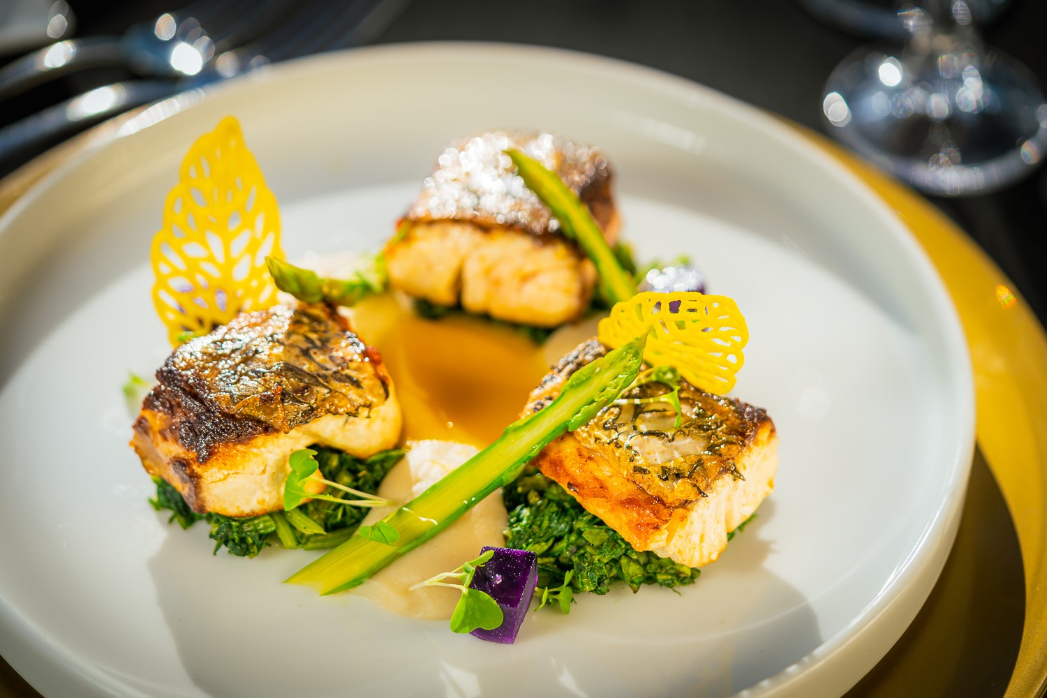Σπαγγέτι με γαρίδα ταρτάρ: συνδυάζει άψογα τα ζυμαρικά al dente με τη φρεσκάδα του ταρτάρ και ζωντανεύει με την ένταση από την κρέμα λεμόνι που το συνοδεύει. Το φιλέτο προβατίνας μαρινάρεται σε κρεμμύδι, μπαίνει στο ρόνερ, μετά στο vacuum και τέλος, στη σχάρα. Συνοδεύεται από άγρια ρίγανη και είναι μαλακό και πεντανόστιμο στα πιο χοντρά σημεία αλλά σκληρό στις άκρες. Ραφινάτο επιδόρπιο το γιαούρτι με λευκή σοκολάτα, αχλάδι σε σιρόπι κάρδαμο, μαρμελάδα εσπεριδοειδών και κραμπλ από μπισκότο. Ιδιαιτέρως το αχλάδι, τραγανό και απίστευτα αρωματικό, θα μπορούσε να σταθεί ως αυτόνομο γλυκό.