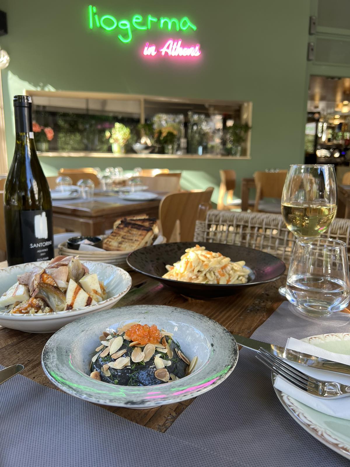 Το ολοκαίνουργιο ψαρομάγαζο, πίσω από την Λεωφόρο Αμφιθέας, σε μια γειτονιά του Παλαιού Φαλήρου, είναι το νεότερο αδελφάκι του μαγαζιού Λιόγερμα στην Ελιά της Μονεμβασιάς που εδώ και εννέα χρόνια έχει φτιάξει όνομα στην περιοχή με φρέσκα ψαρικά του και τη μαγική θέση του πάνω στη θάλασσα. Το αθηναϊκό Λιόγερμα, ιδιοκτησία της οικογένειας Κυριακόγκωνα και του σεφ Θοδωρή Αθανασίου, προσφέρει μια σύγχρονη, θαλασσινή μεσογειακή κουζίνα. Εκτός από τα ολόφρεσκα ψαρικά που έρχονται καθημερινά από τον Λακωνικό κόλπο και που ετοιμάζονται μαστορικά στο τηγάνι και στη σχάρα, εδώ, θα ποντάρετε στα πεντανόστιμα ζυμαρικά με θαλασσινά και στις γεύσεις της Μάνης που μαρτυρούν την προσήλωση των ιδιοκτητών στην τοπική κουζίνα του τόπου καταγωγής τους.