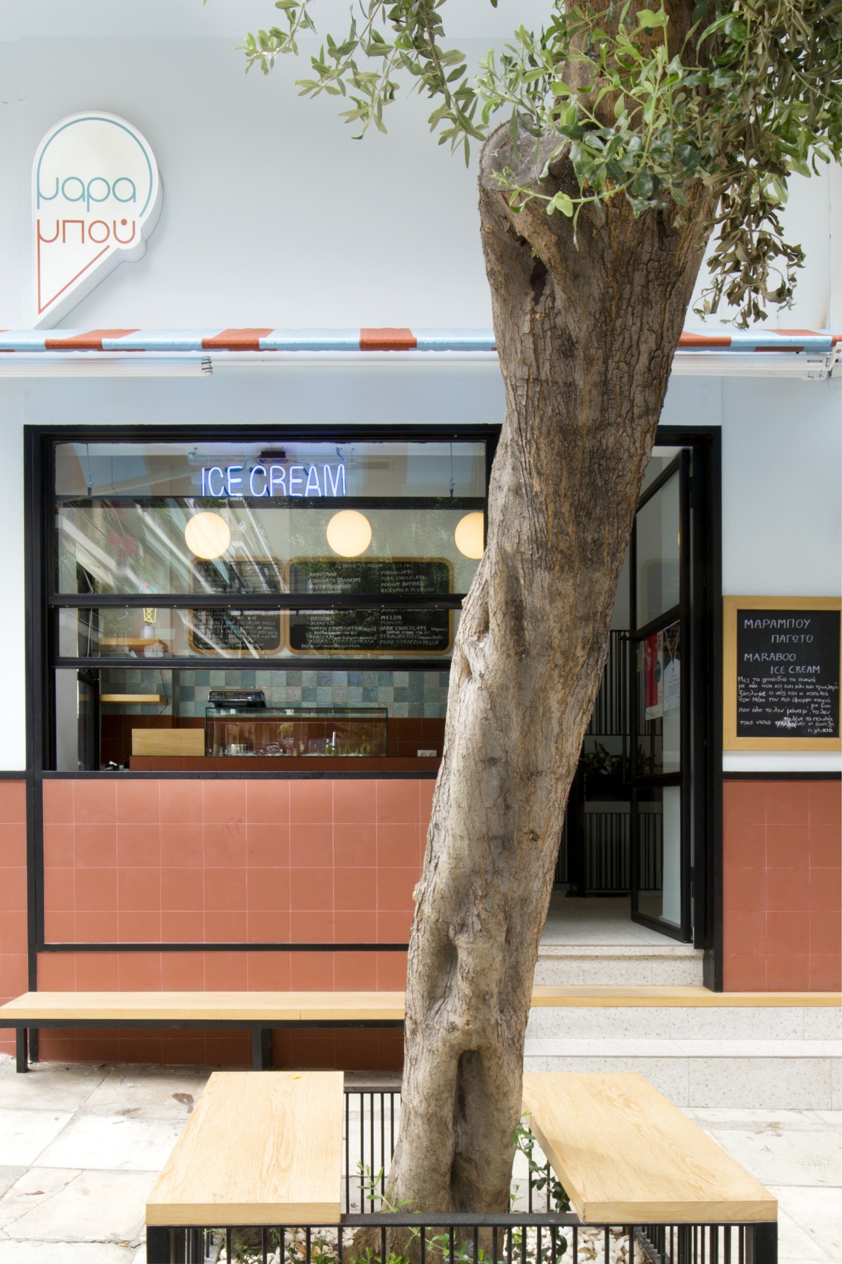 Λευκό με πορτοκαλί πλακάκια και νέον επιγραφές ξεχωρίζει ανάμεσα από τα μικρά μπαράκια της πλατείας. Οι σερβιτόροι του ντυμένοι και εκείνοι στα λευκά, φορούν το χαρακτηριστικό ρετρό, διπλωτό καπελάκι των παγωτατζίδων και σας ξεναγούν στις γεύσεις που έχουν κάτι από Ελλάδα. Η κρέμα έχει πλούσια γεύση και θυμίζει εκείνες που τρώγαμε μικροί, το σορμπέ σοκολάτας είναι γεμάτο και με ωραία bitter στοιχεία, το αλμυρό φιστίκι περιέχει και παστέλι που τραγανίζει ενώ το φουντούκι είναι βαθιά νόστιμο. Μην φύγετε, όμως, αν δεν ζητήσετε το διαχρονικό Σικάγο με την πλούσια σοκολάτα, τις στρώσεις από φιλέ αμύγδαλο και την πληθωρική σαντιγί από πάνω με το βύσσινο.