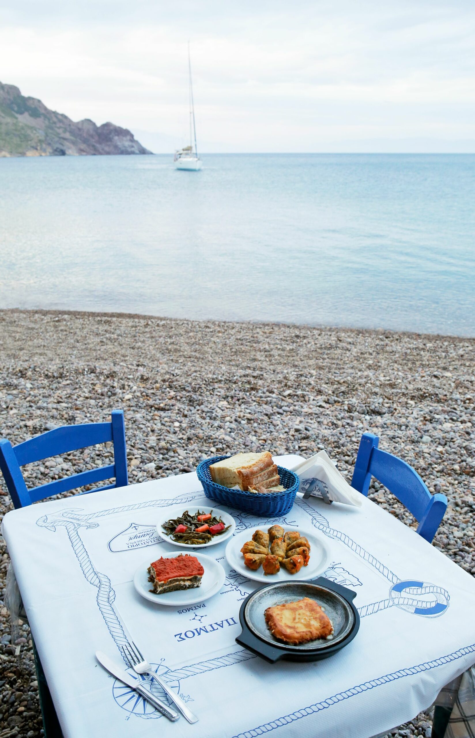 Η ομώνυμη παραλία, στη βόρεια Πάτμο, μετά από ένα υπέροχο οδοιπορικό μέσα από οικισμούς, κολπίσκους, μπαχτσέδες και ξωκλήσσια, φτάνοντας στην κορυφή του λόφου, απλώνεται μπροστά. Η ψαροταβέρνα «Λάμπη» κάθεται όμορφα με τις μπλε αποχρώσεις της επάνω στο ψιλό βότσαλο. Ο μπαχτσές δίπλα, γόνιμος και υγιής, παράγει σχεδόν όλα όσα θα γευτεί ο επισκέπτης εδώ. Ο Μάρκος Γαμπιεράκης μαζεύει ότι προλαβαίνει ακόμη πριν πέσει εντελώς το φως της ημέρας, κοκκινίζοντας και πρασινίζοντας το εσωτερικό του καφασιού με καρπούς της γης. Η κυρία Καίτη στην κουζίνα της, με βοηθό τον Αλί, καταπιάνεται με την προετοιμασία των εδεσμάτων.