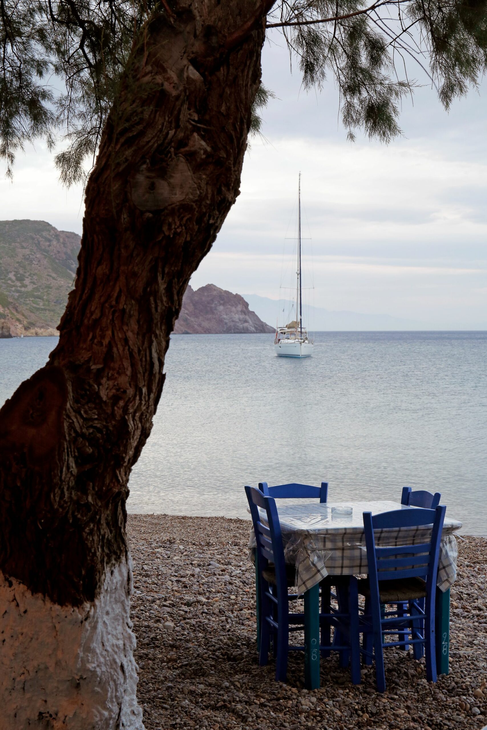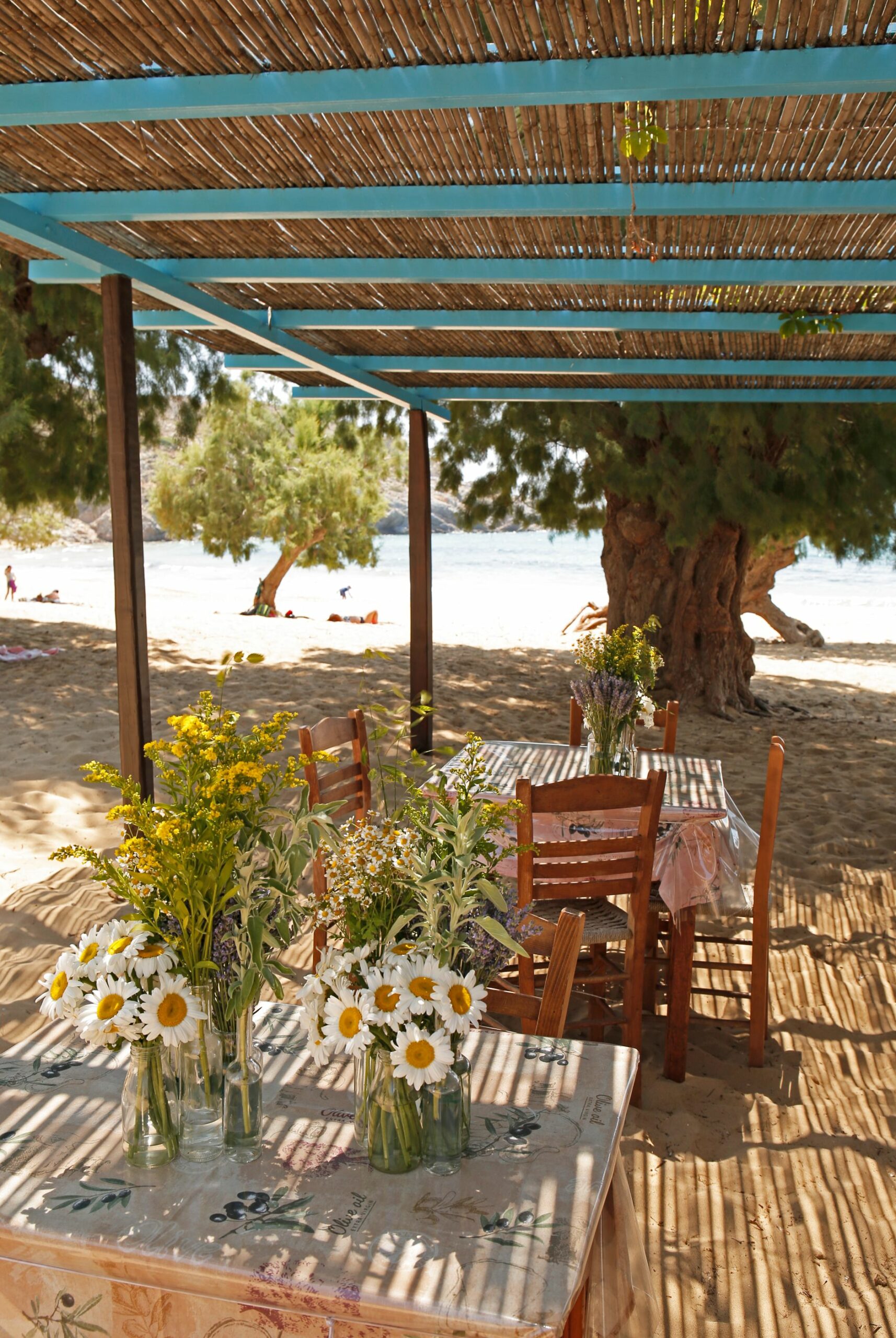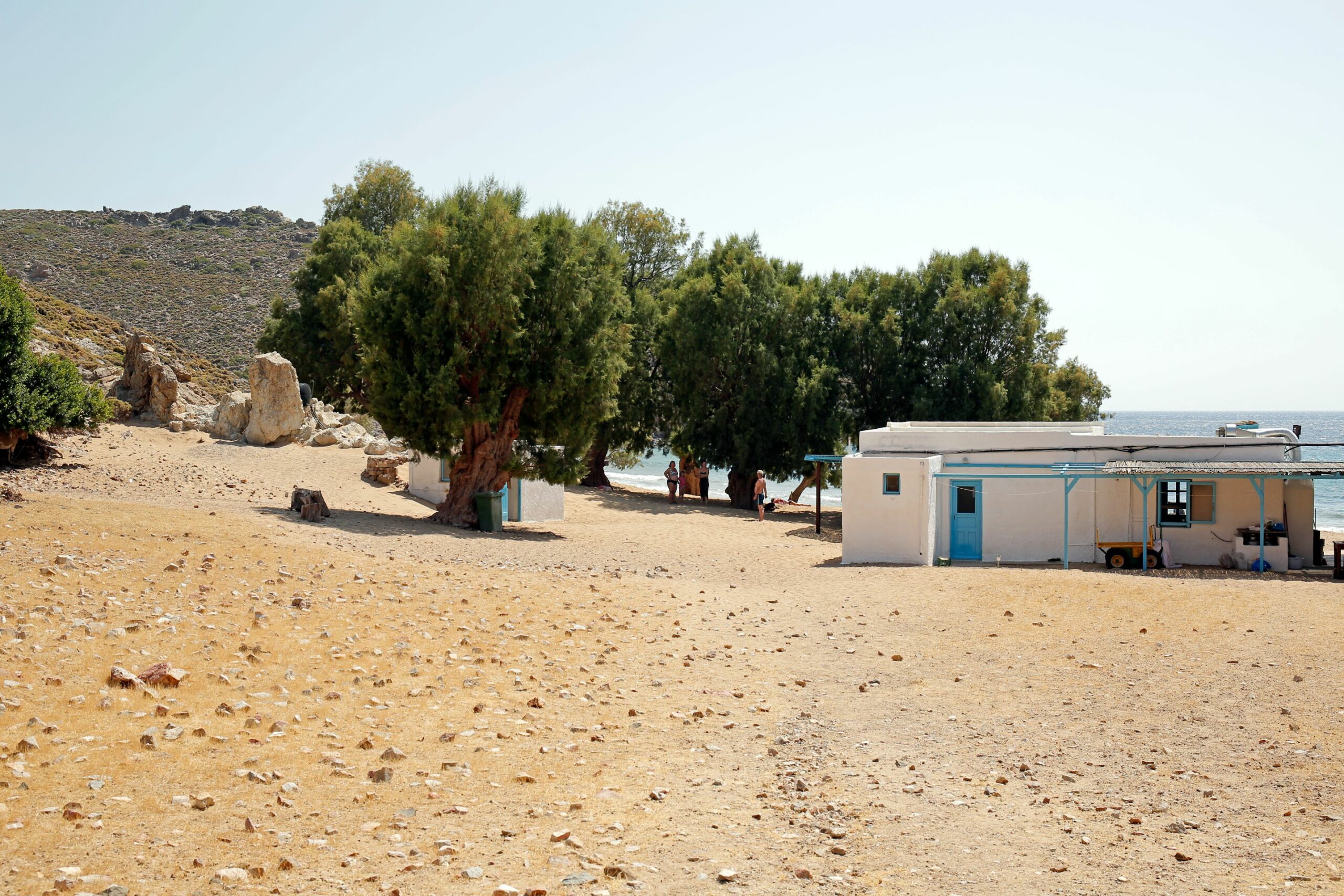 Κυριολεκτικά με την άμμο στα πόδια, κάτω από αλμυρίκια αλλά και από μια πέργκολα όμορφη και απλή, οι φωνές από τις ενθουσιασμένες παρέες που βρίσκονται εδώ αναμιγνύονται με τον παφλασμό και το άφρισμα των κυμάτων, λίγα μέτρα πιο πέρα. Η Διονυσία Γιαμαίου, με ένα καλοσυνάτο χαμόγελο και πολλή διάθεση, τρέχει πάνω – κάτω στην άμμο σερβίροντας σπιτικά μαγειρεμένο φαγητό. Κοτόπουλο στο φούρνο με πατάτες, σουτζουκάκια αλλά και το ανάρπαστο κατσικάκι της. Μέχρι και ρεζερβέ μερίδες τολμούν να ζητήσουν οι επίδοξοι επισκέπτες της παραλίας πριν καταφτάσουν εδώ περπατώντας για μισή ώρα περίπου το όμορφο αιγαιοπελαγίτικο μονοπάτι. Ακόμη και οι ομελέτες εδώ γίνονται ανάρπαστες, από πρωινούς επισκέπτες ή και ευχάριστα κουρασμένους και αλατισμένους κολυμβητές. Η παραλία είναι ένα όνειρο με το μικρό ταβερνάκι να βάζει την πινελιά. Αθλητικά παπούτσια, καπέλο, αντιηλιακό και νερό είναι τα απαραίτητα εργαλεία για την πεζοπορία μέχρι εδώ. Και αξίζει.