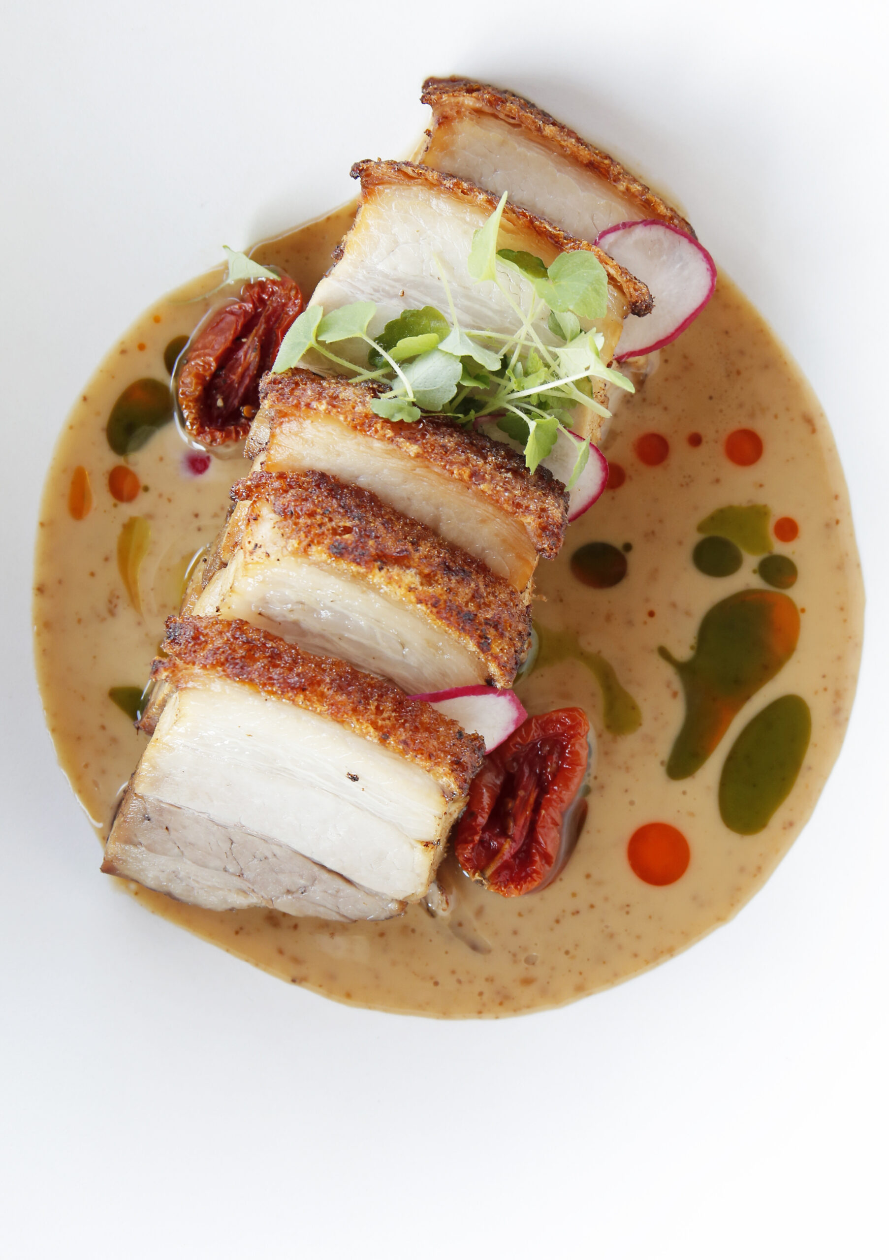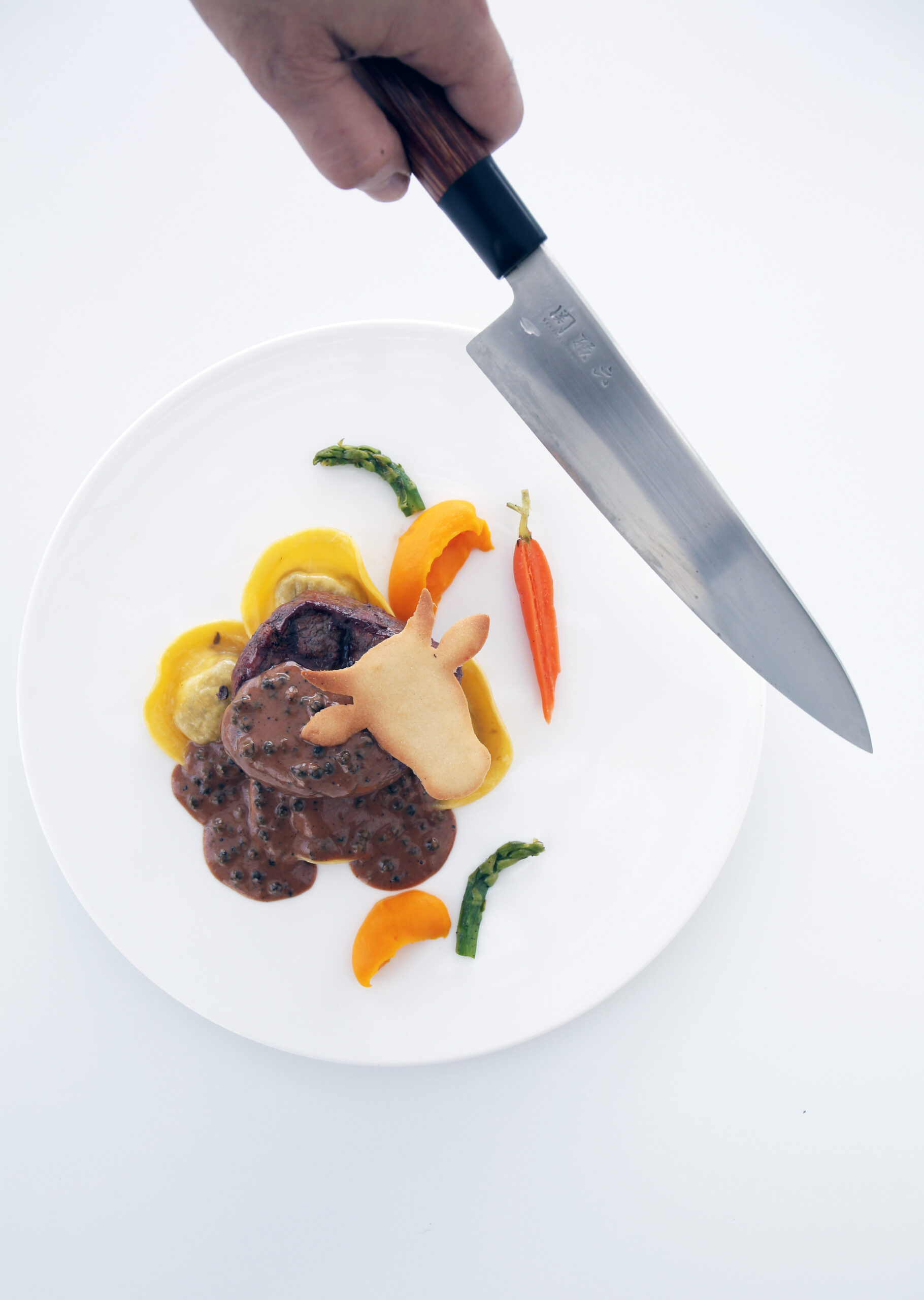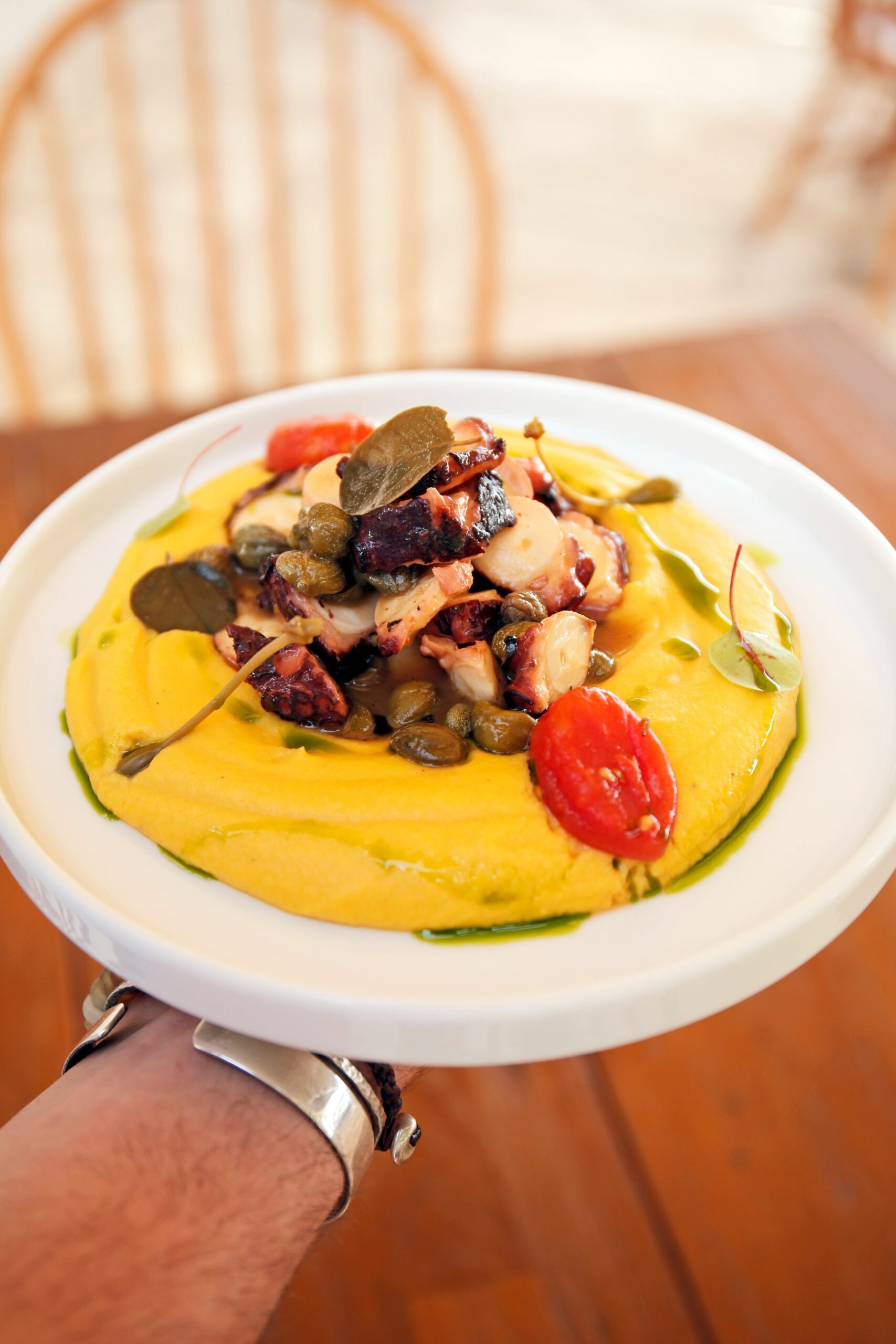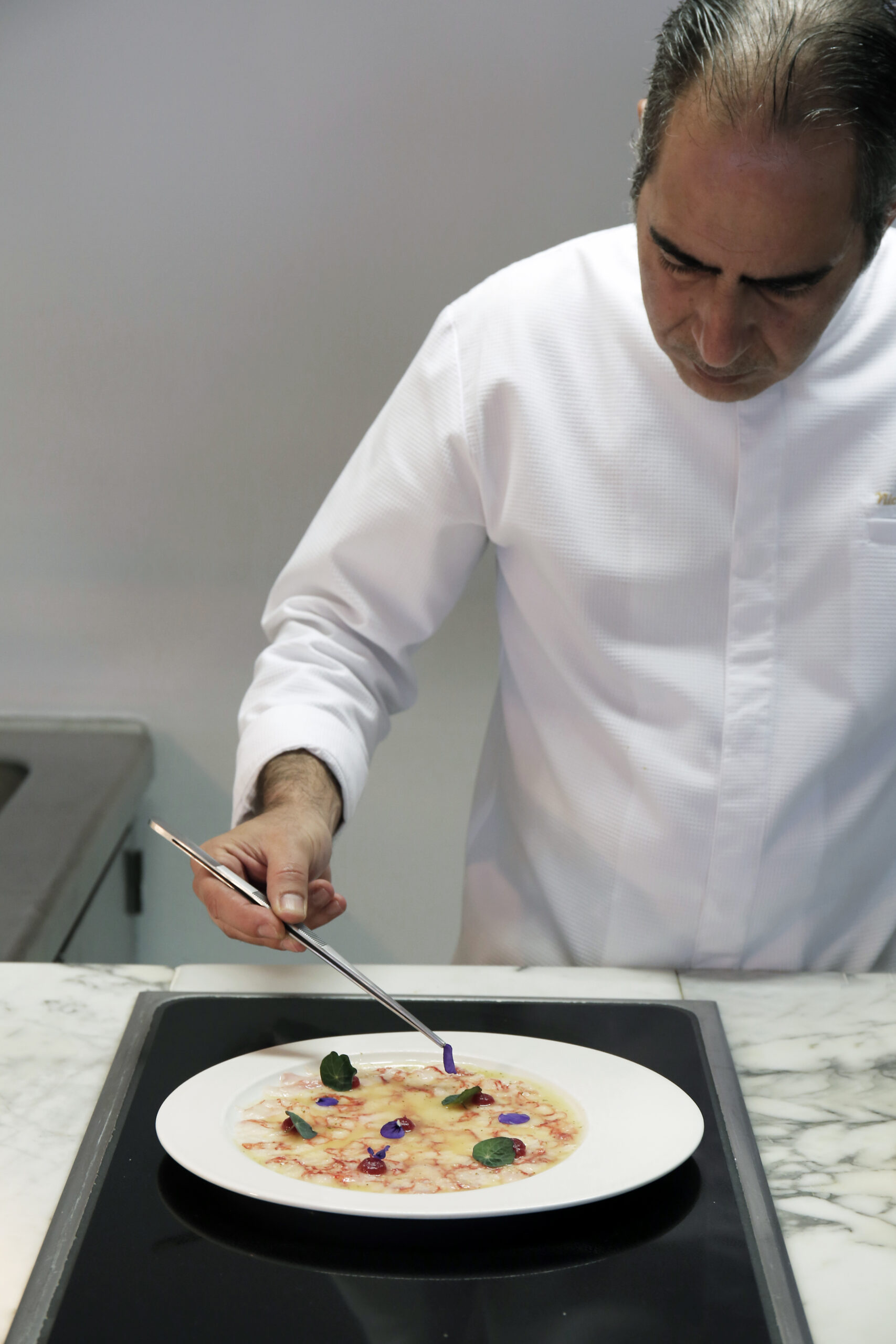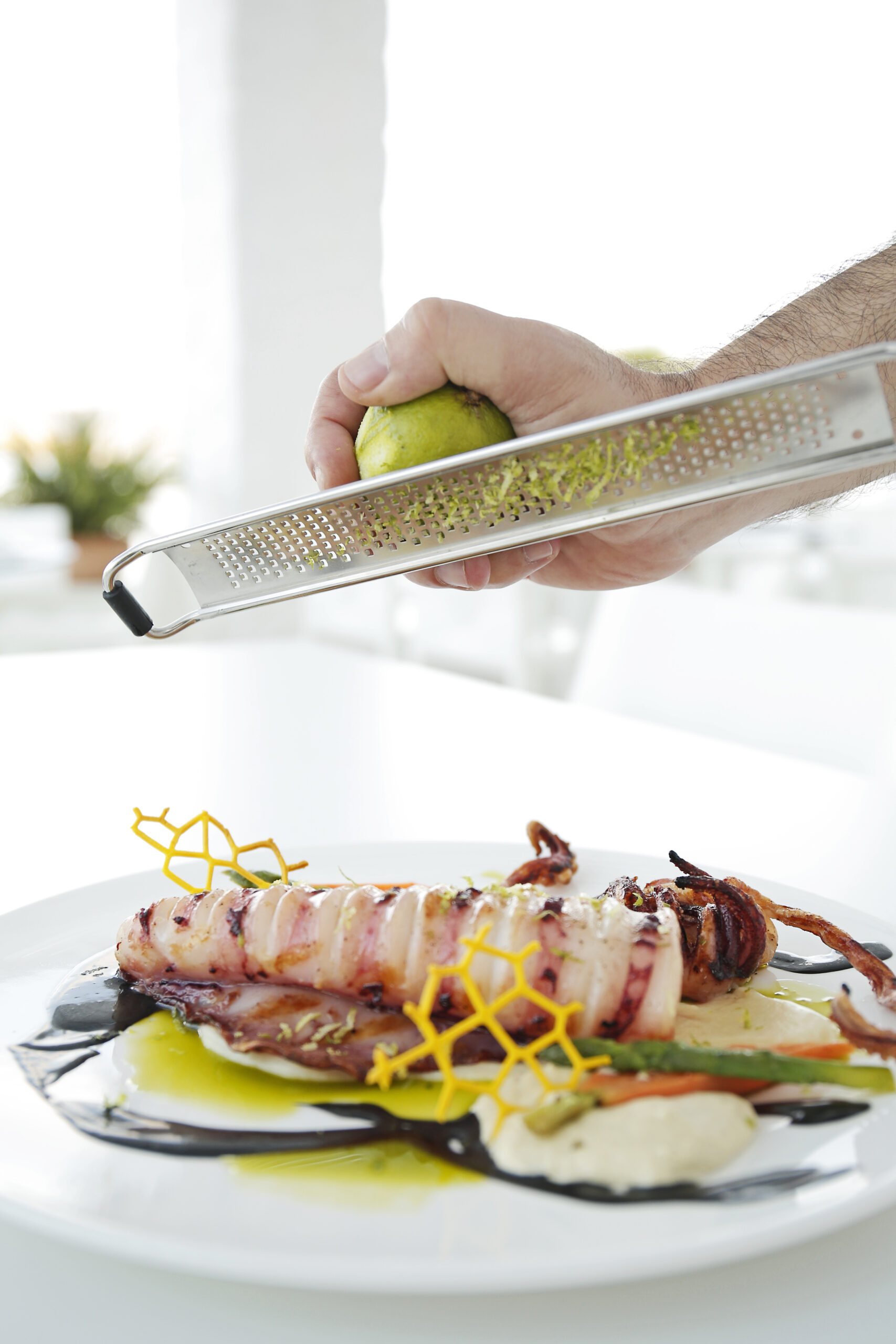 Ο μπακαλιάρος σε τραγανό κανόλο με πεπόνι, σέλινο και cress συνεχίζει το ταξίδι μέχρι την «προσθαλάσσωση» στον φρέσκο τόνο μαριναρισμένο με εσπεριδοειδή, αβοκάντο, compote μάνγκο και φλοίδες αποξηραμένης παλαμίδας. Αλλά και για την αγάπη του κρέατος, το, ειδικά εισηγμένο κατόπιν παραγγελίας από την Ιταλία, μπισκότο σε σχήμα κεφαλής μοσχαριού, τοποθετείται προσεκτικά στο ολόσωστα ψημένο black angus φιλέτο με βασιλομανίταρο και σάλτσα πιπεριού. Ή, εναλλακτικά, τα σπιτικά καμωμένα λαζάνια με ραγού black angus, αφρό μπεσαμέλ, πέπλο τομάτας και κράκερ από λαζάνια, μια γευστική αλλά και οπτική ευχάριστη έκπληξη.