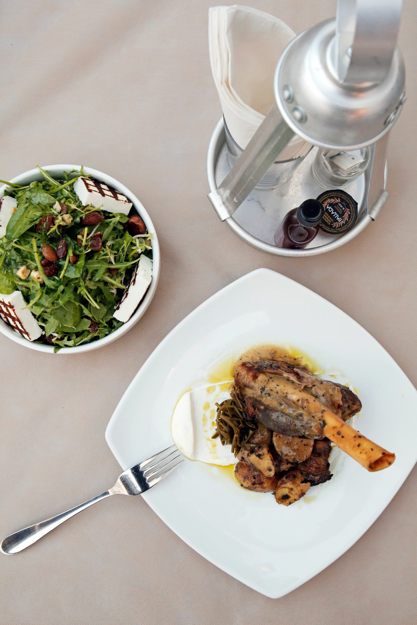Η πλατεία παίζει το ρόλο της αλλά αν δεν ήταν το φαγάκι όπως είναι, δε θα μιλούσαμε τώρα. Διάσημες είναι οι μοσχαρίσιες κοπές, το κουνέλι στιφάδο, το γιουβέτσι με γαρίδες και καλαμάρι ψητό που συνοδεύεται από μαύρο ταραμά και πίκλα σταμναγκάθι. Κοιτώντας το λιώνει το κατσικίσιο κότσι, αφού έχει ψηθεί για έξι ώρες έχοντας έντονα τα αρωματικά μπαχάρια του στη γεύση. Στο τελείωμα υπάρχει η δυνατότητα ενός (ή και περισσότερων) κοκτέιλ από τη διπλανή «Στοά», επιχειρήσεις – αδερφάκια στα χρώματα της πλατείας.