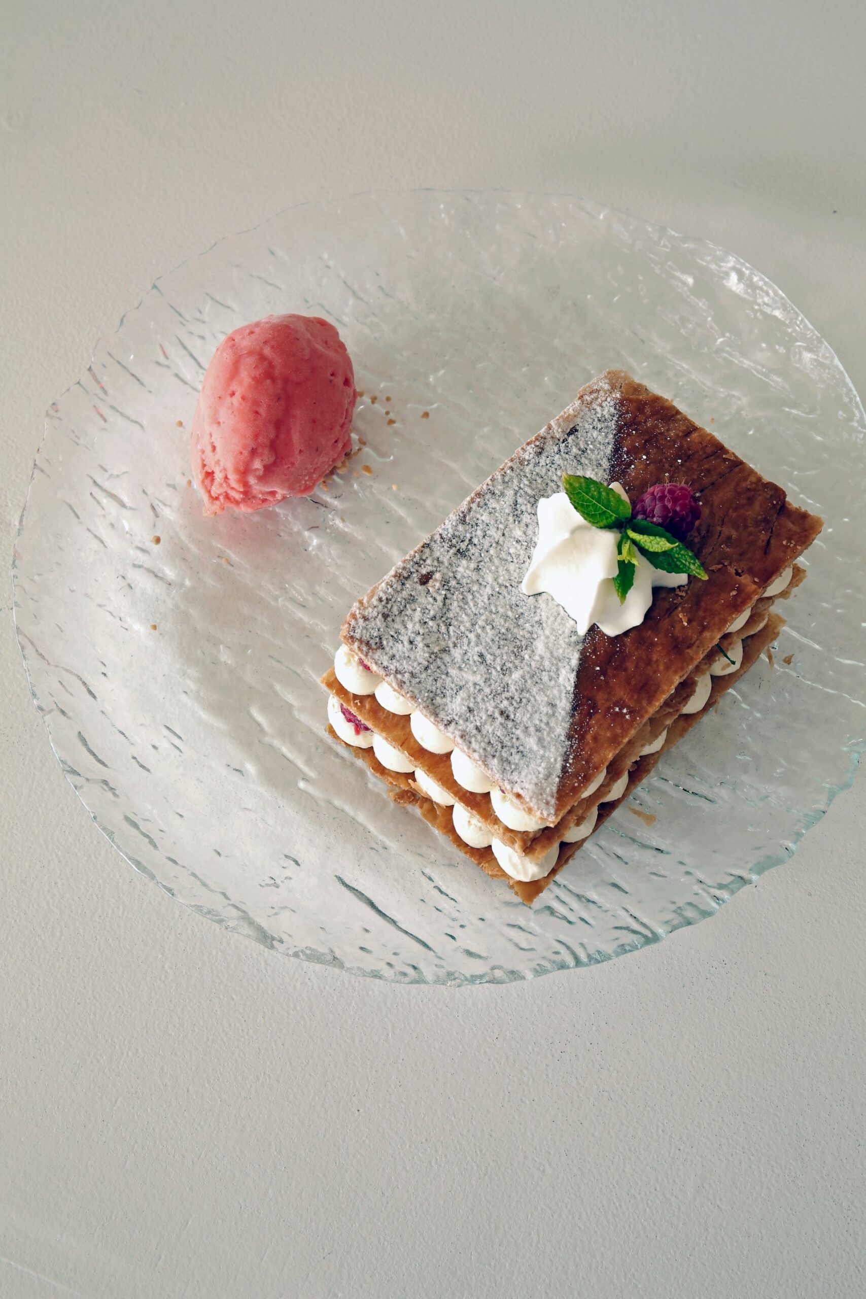 Στο πολύ όμορφο, κοσμοπολίτικο περιβάλλον με τα τραπέζια τοποθετημένα με ήσυχο τρόπο γύρω από την ασύμμετρη πισίνα, δοκιμάζω και απολαμβάνω το prime skirt steak Black Angus με σωτέ λαχανικά και πουρέ πατάτας αλλά και το ισορροπημένα γλυκό millefeuille με ναμελάκα λευκής σοκολάτας, εξαιρετικά βελούδινης και φραμπουάζ. Το μενού στις «Πλειάδες» εξελίσσεται όμορφα.