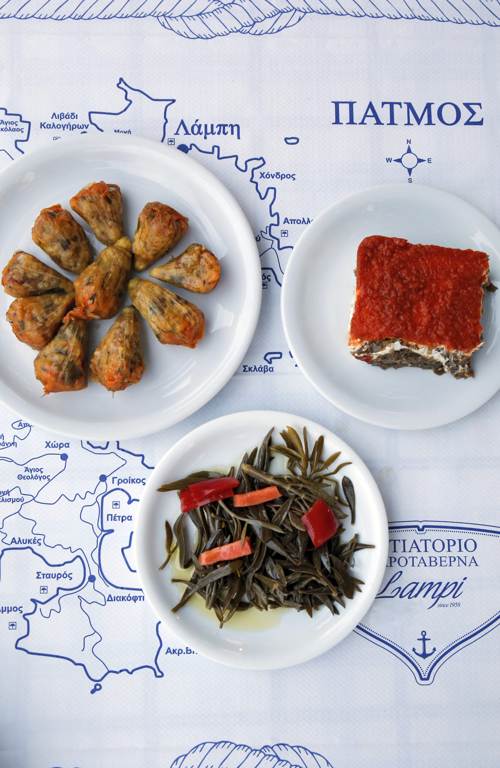 Ο πλούτος της Πάτμου σε πρώτες ύλες για καλό φαγάκι είναι εύκολα εμφανής. Μικρά χωράφια διάσπαρτα σε όλο το νησί, παράγουν ζαρζαβατικά και αρώματα, ο αλιευτικός στόλος τριγυρνά καθημερινά στις δαντελωτές ακτές και τις βραχονησίδες της περιοχής, τα ερίφια βόσκουν ελεύθερα υφάλμυρη τροφή, νοστιμεύοντας. Στα πιάτα σερβίρεται η Μεσόγειος με τρόπο λαϊκό αλλά και πιο τολμηρό.