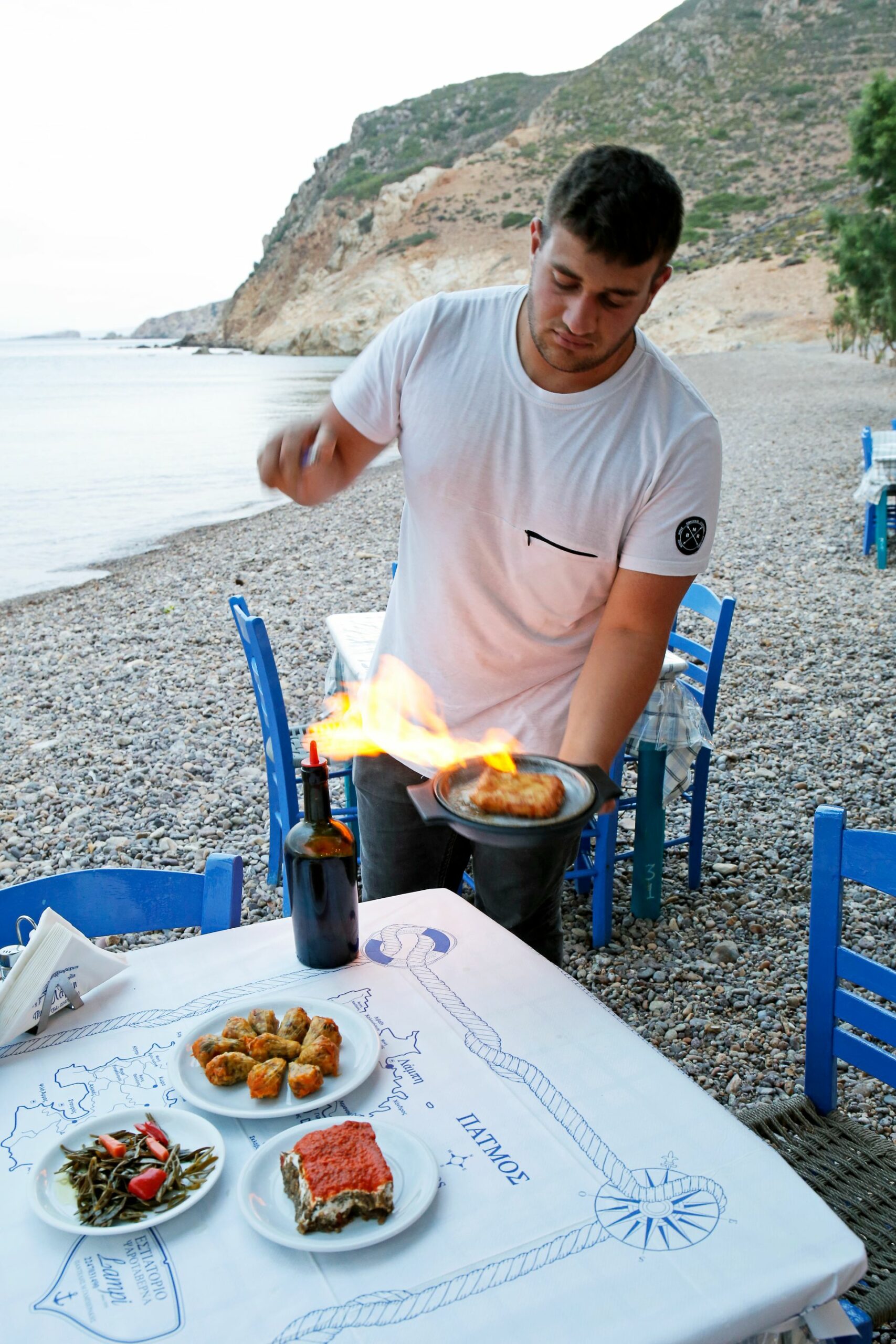 Στην Πάτμο τρώμε. Η απλότητα του νησιού μετριέται σε όλες τις εκφάνσεις της ζωής σε αυτό, έτσι και στο φαγητό. Από μικρά ταβερνάκια με αρώματα θαλασσινά, σκόρπια στην προκυμαία και στα στενά της Σκάλας, σε απομακρυσμένες παραλίες και σε ρομαντικές πλατείες σε οικισμούς, μέχρι επιλογές ανεβασμένων γαστρονομικών προτάσεων, τοπικών συνταγών, ιστορικών οικογενειακών επιχειρήσεων, βίγκαν, ιταλικών και μεσογειακών επιρροών, πάντα με μια αίσθηση νησιώτικη.