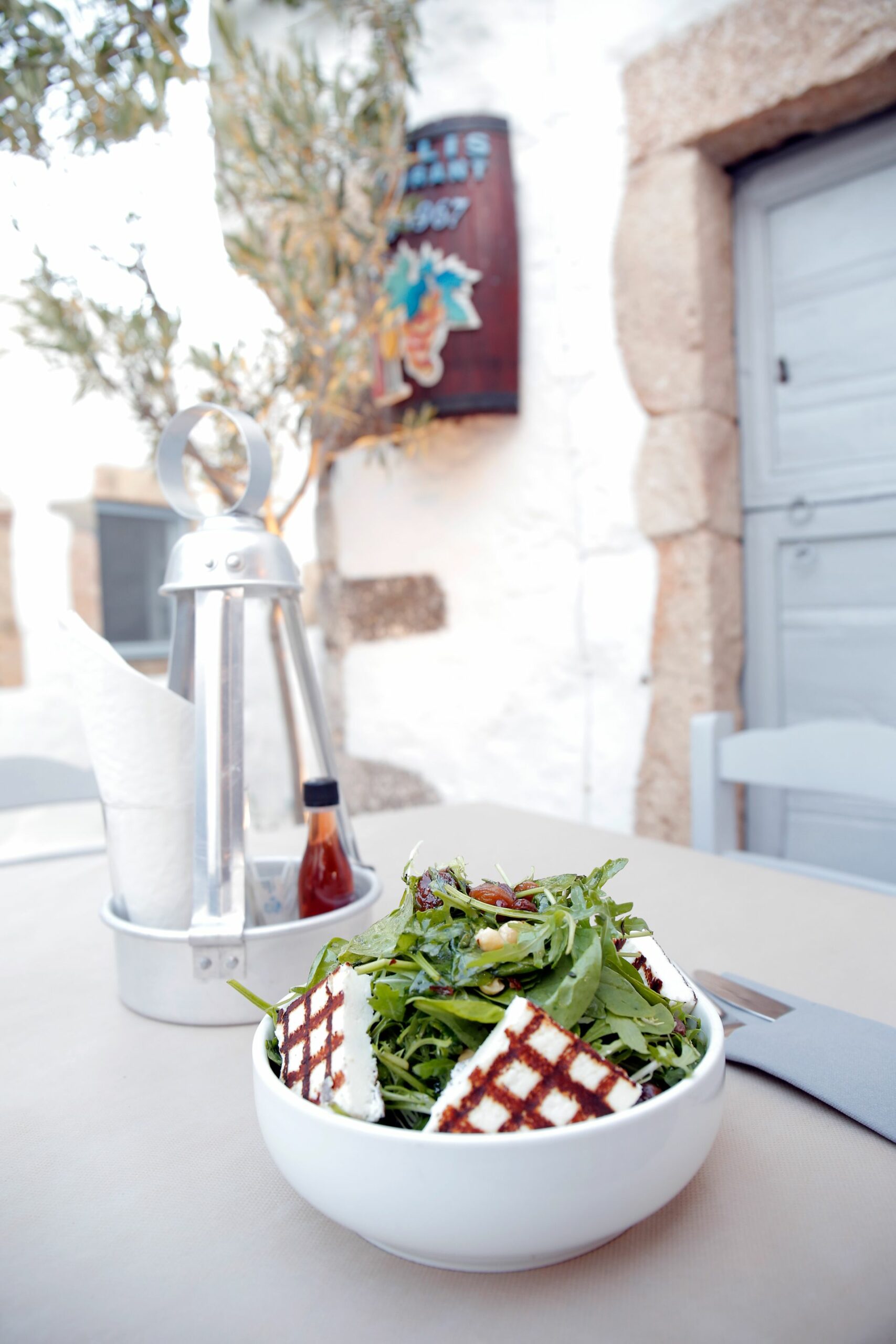 Εκτός από τα θαλασσινά και τα ψάρια, γεύσεις τις οποίες χειρίζεται με περισσή μαεστρία, όπως π.χ. τον τόνο sushi style, με αλμύρα, κολοκυθάκι και σπαγγέτι κολοκύθι, κλασσικοί και υπέροχοι είναι οι γεμιστοί κολοκυθοανθοί, η χωριάτικη σαλάτα με φέτα ψημένη σε δικό τους φύλλο, ένα φανταστικά απλό τοματόρυζο, όσο ξινό χρειάζεται αλλά και τα σπιτικά γλυκά του. Την εικόνα συμπληρώνει το καταπληκτικό σέρβις αλλά και η τεράστια λίστα κρασιών.