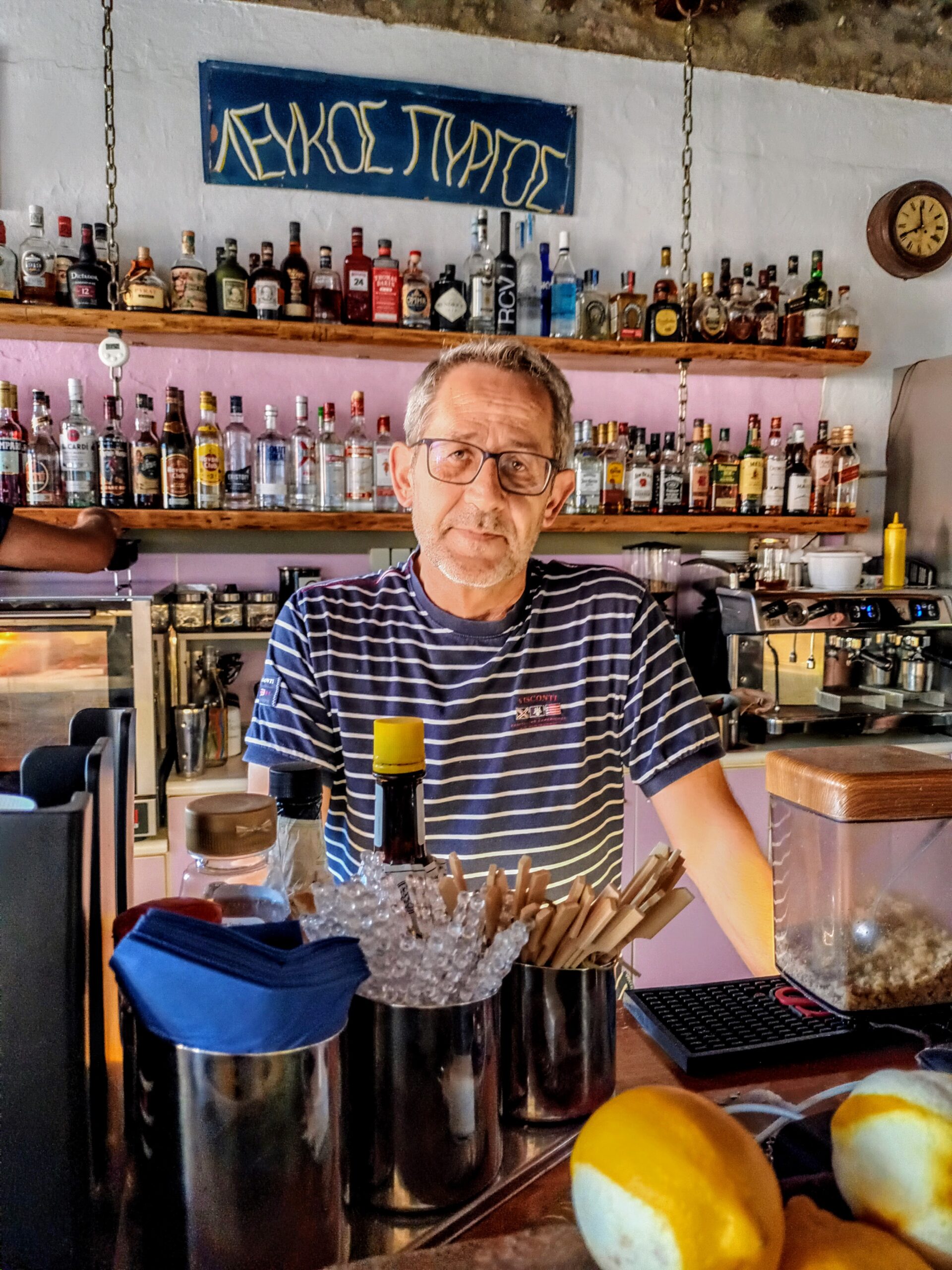 «Ψυχή» του «Λευκού Πύργου» είναι ο pastry chef Γιώργος Στεργίου με την σύζυγό του Δάφνη, που ζουν μόνιμα στο Μονπελιέ της Γαλλίας. Κάθε χρόνο, αρχές καλοκαιριού, επιστρέφουν στην Σαμοθράκη για να προσθέσουν τη δική τους μοναδική «πινελιά» σε ροφήματα, γλυκά, κοκτέιλ, παγωτά κ.α. που προσφέρει η επιχείρηση. Όλα χειροποίητα και με υλικά -κυριολεκτικά- απ’ όλον τον κόσμο. Όλους τους προηγούμενους μήνες, Γιώργος και Δάφνη ερευνούν και πειραματίζονται στην Γαλλία, πάνω σε νέες γεύσεις, εμπλουτίζοντας στη συνέχεια τον κατάλογο του «Λευκού Πύργου».