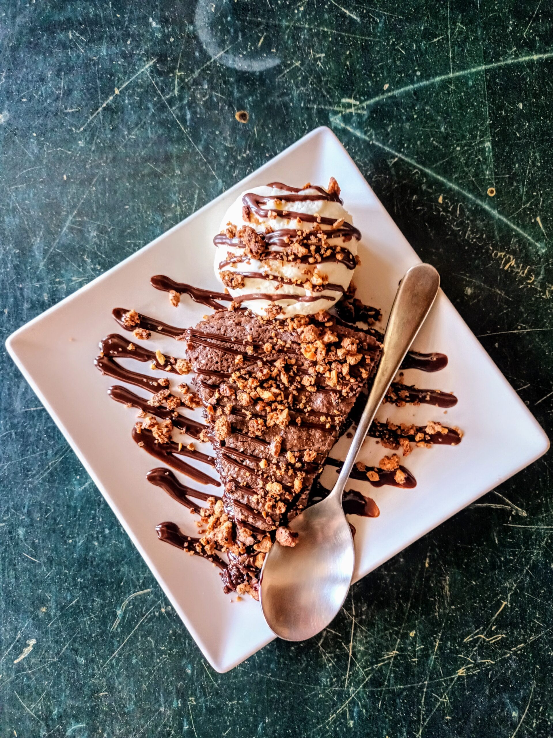 Η σοκολατένια πρόκληση «Πίσσα και πούπουλα», είναι ένα γλυκό με μαλακή υφή που λιώνει στο στόμα. Μη σας ξεγελάσει η όψη του δεν είναι σοκολατόπιτα. Θυμίζει μαλακό brownie, λίγο πριν καταλήξει σε σουφλέ σοκολάτας, πασπαλισμένο με καραμελωμένα αμύγδαλα, το οποίο συνοδεύεται από μια μπάλα χειροποίητου παγωτού βανίλιας Μαδαγασκάρης ή ότι άλλου είδους παγωτού τραβάει η όρεξή σας. Αυτή η αντίθεση της ζεστής σοκολάτας με το παγωτό βανίλιας, είναι ένα από τα μυστικά που κάνει τον ουρανίσκο να χτυπάει «κόκκινο».