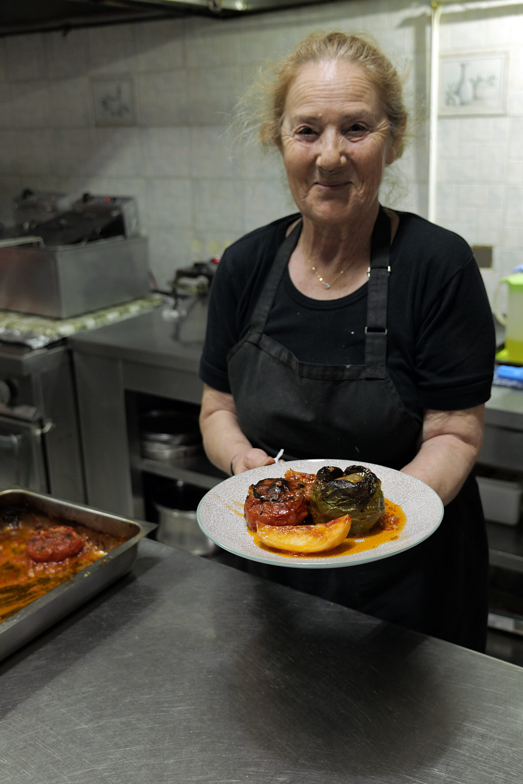 Όταν η ίδια ερώτηση σε πολλούς διαφορετικούς ανθρώπους κατά τη διάρκεια των διαδρομών στο νησί, παίρνει την ίδια απάντηση, μάλλον κάτι σωστό συμβαίνει. «Να πάτε στην Άμπελο να φάτε λαχανοντολμάδες», ήταν η απόκριση με κάποια διαφορά στη σειρά των λέξεων κάθε φορά αλλά όχι στο νόημα. Η ομώνυμη ταβέρνα στην όμορφη πλατεία του αμφιθεατρικά χτισμένου χωριού στο βόρειο τμήμα της Σάμου, αποδείχτηκε πολλά περισσότερα από τους, όντως, θεϊκούς (παραμονές Πάσχα τους επισκεφθήκαμε) λαχανοντολμάδες. Η Σοφία Λογαρά με υποδέχτηκε με ευγένεια και πολύ καλή διάθεση αν αναλογιστεί κανείς την ημέρα που πήγα (Κυριακή) και την ώρα (μεσημέρι) και επικρατούσε η απόλυτη κινητικότητα.