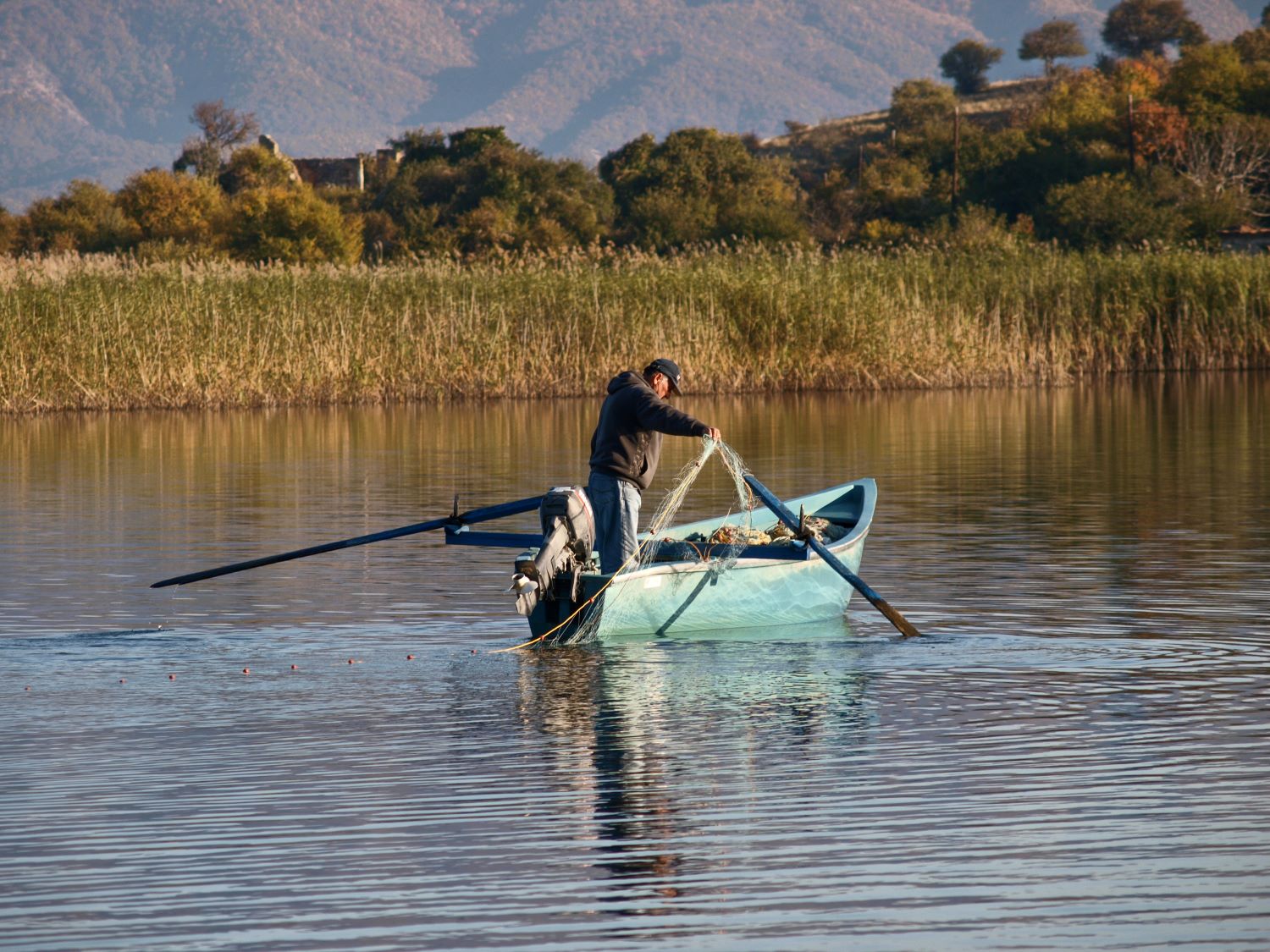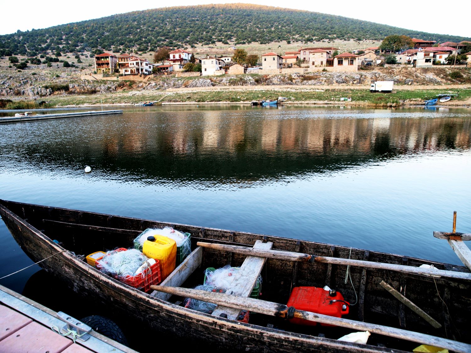 Και πρώτα η ψυχή τους. Οι Πρέσπες είναι πέλαγος και η απεραντοσύνη τους απλώνεται κατά έναν τρόπο όπως η ανοιχτή θάλασσα. Μόνο που εδώ η γαλήνη επικρατεί περισσότερες ημέρες από ότι στη θάλασσα, με αποτέλεσμα, η ησυχία – ιδιαιτέρως η φθινοπωρινή – να είναι ιαματική. Ναι, οι Πρέσπες φαντάζουν ως ιαματικό νερό, στην επιφάνεια του οποίου καθρεφτίζεται ένας ήρεμος κόσμος, που αναριγεί μόνο από τους παλμούς της ζωής, ένα πέταγμα πουλιού, το αυλάκι που αφήνουν στο νερό τα πόδια καθώς η φτερούγες αφιερώνονται στην απογείωση, το ακόμα πιο έντονο ίχνος που χαράζουν οι ψαράδικες βάρκες, οι ρόδινες αντανακλάσεις των ψηλών βουνών στον αστραφτερό «καθρέφτη».