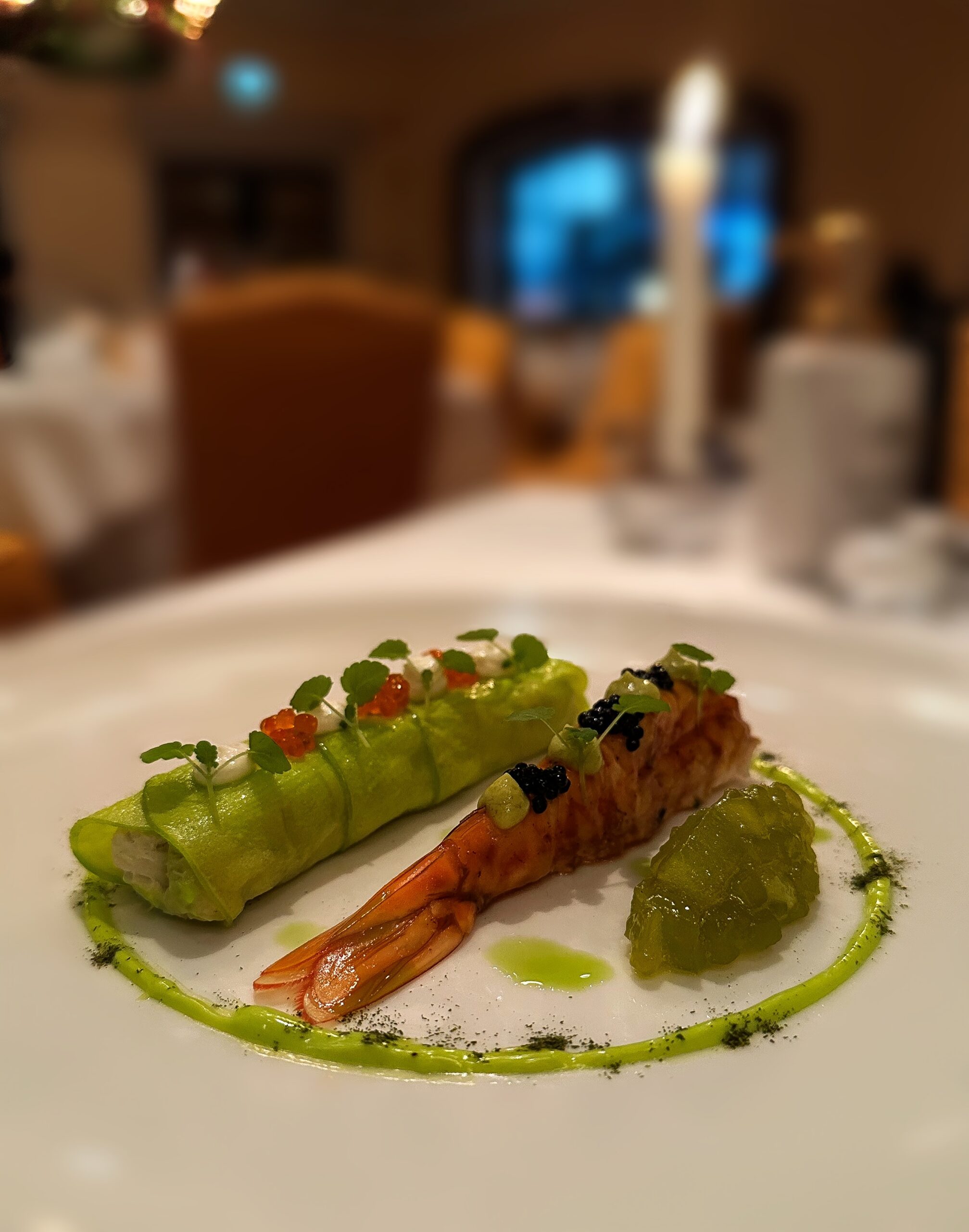 «Οι πρώτες μας ύλες είναι αυστηρά ελληνικής προέλευσης. Δίνουμε πολύ μεγάλη βαρύτητα στην τοπική κοινωνία και στους τοπικούς παραγωγούς, μερικοί εκ των οποίων παράγουν συγκεκριμένα προϊόντα αποκλειστικά για εμάς», λέει ο σεφ. Στα ιδιαιτέρως ευφάνταστα ορεκτικά που δοκιμάσαμε ήταν και η τάρτα μαρινάτου σολομού με ρεμουλάντ αγριοράπανου και χαβιάρι καθώς και η πάπια απάκι, ένα πιάτο όπου παιχνίδι εντάσεων γίνεται από την πολυπλοκότητα του ροκφόρ και τη γλυκύτητα του σύκου. Στα κυρίως πιάτα, ξεχωρίσαμε τα μαγειρεμένα στην εντέλεια μοσχαρίσια ρίμπς που σερβίρονται με κανελόνι πατάτας, χιόνι τρούφας και λάδι τσορίθο, καθώς και το μπακαλιάρο με χόρτα, ρίζα μαϊντανού και σάλτσα πιπερόριζας, που του χαρίζουν γήινες γευστικές νότες. Για το φινάλε, μας έκλεισε γλυκά το μάτι το red velvet cheesecake. Ένα επιδόρπιο με ωραίες υφές και ισορροπίες. Η πλεύση στην εκτενή λίστα κρασιών ελληνικού και διεθνούς αμπελώνα πραγματοποιείται, για όσους το επιθυμούν, με τη βοήθεια sommelier που προτείνει οινικές γεύσεις, ταιριαστές με τα πιάτα που έχουν επιλεχθεί για το γεύμα. Το Alfredo’s Grand Dining είναι ένας από τους πιο αξιόλογος προορισμούς μέσα στο συγκρότημα του Regency Casino Thessaloniki.