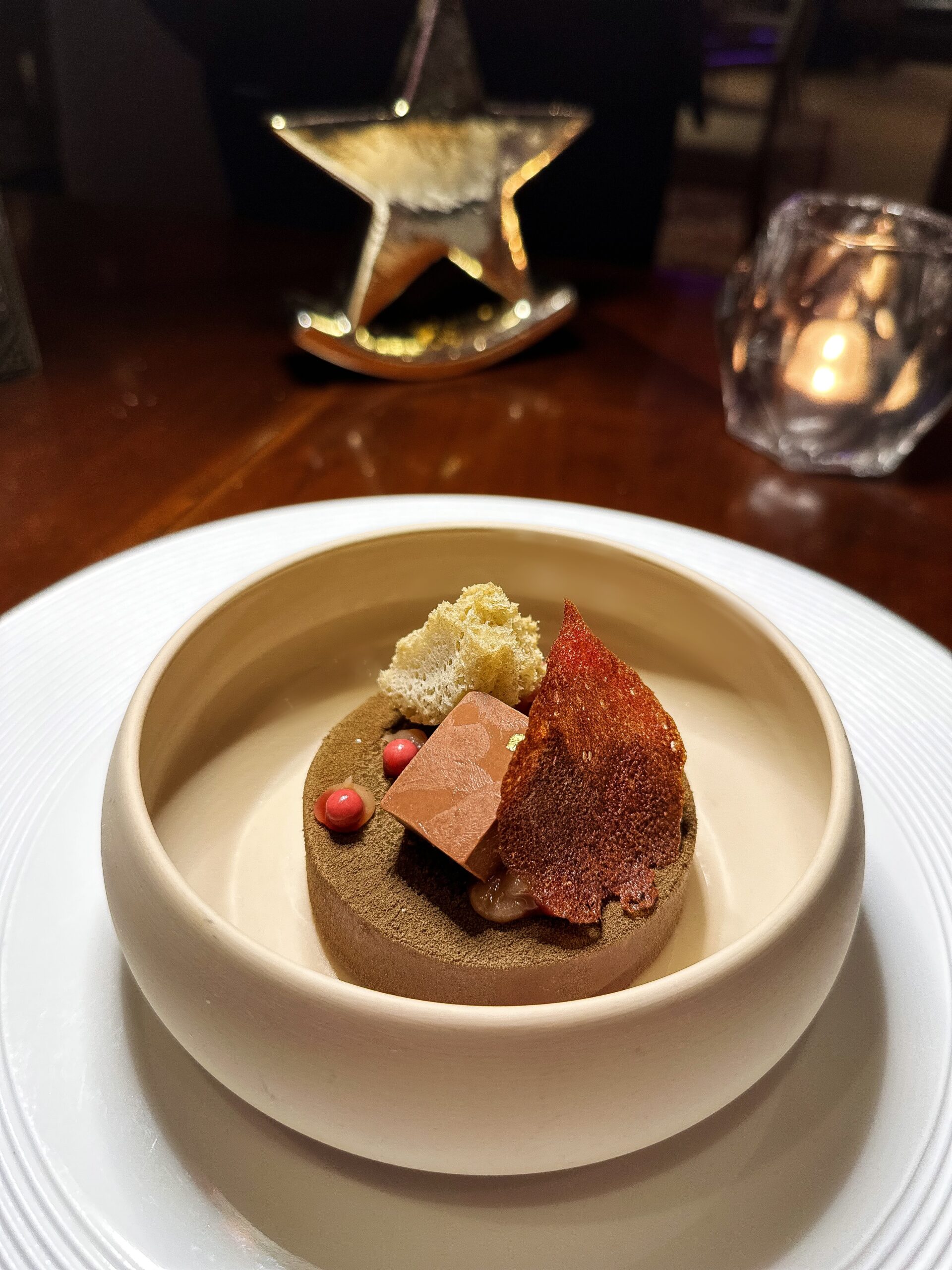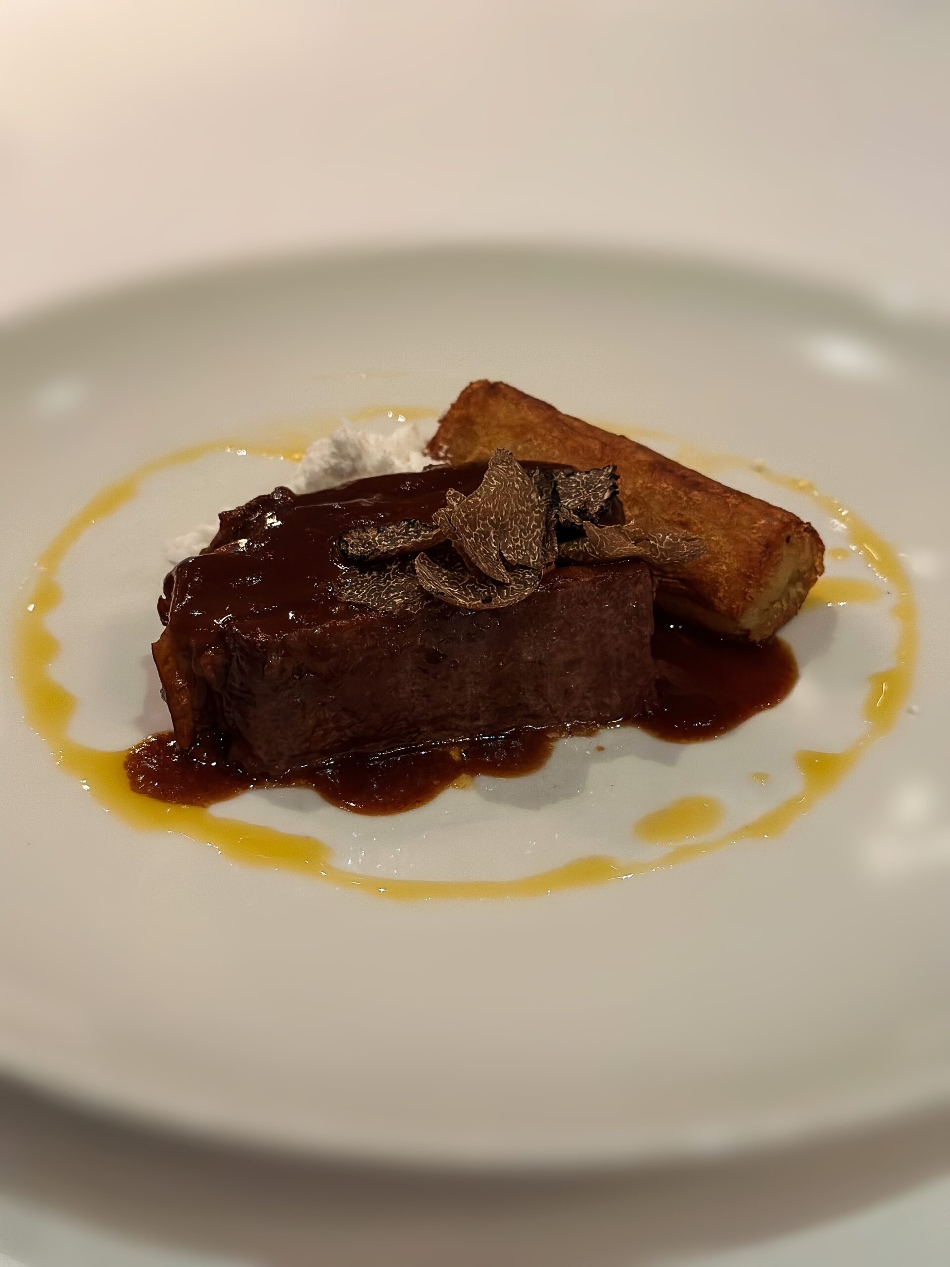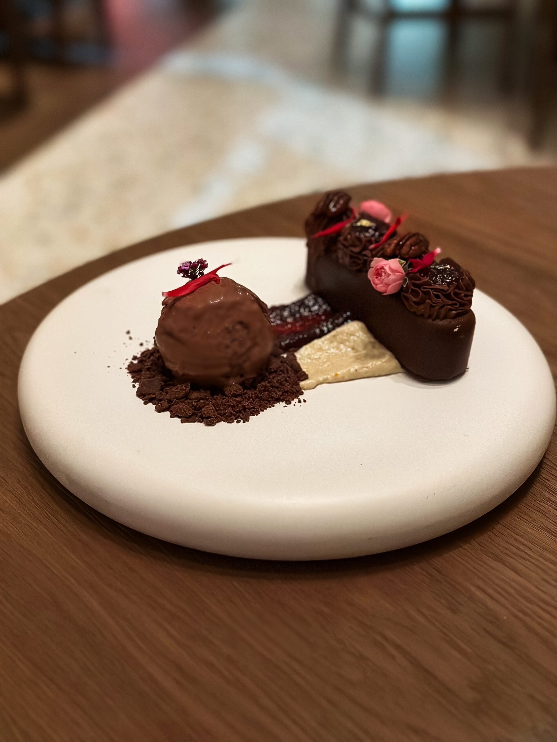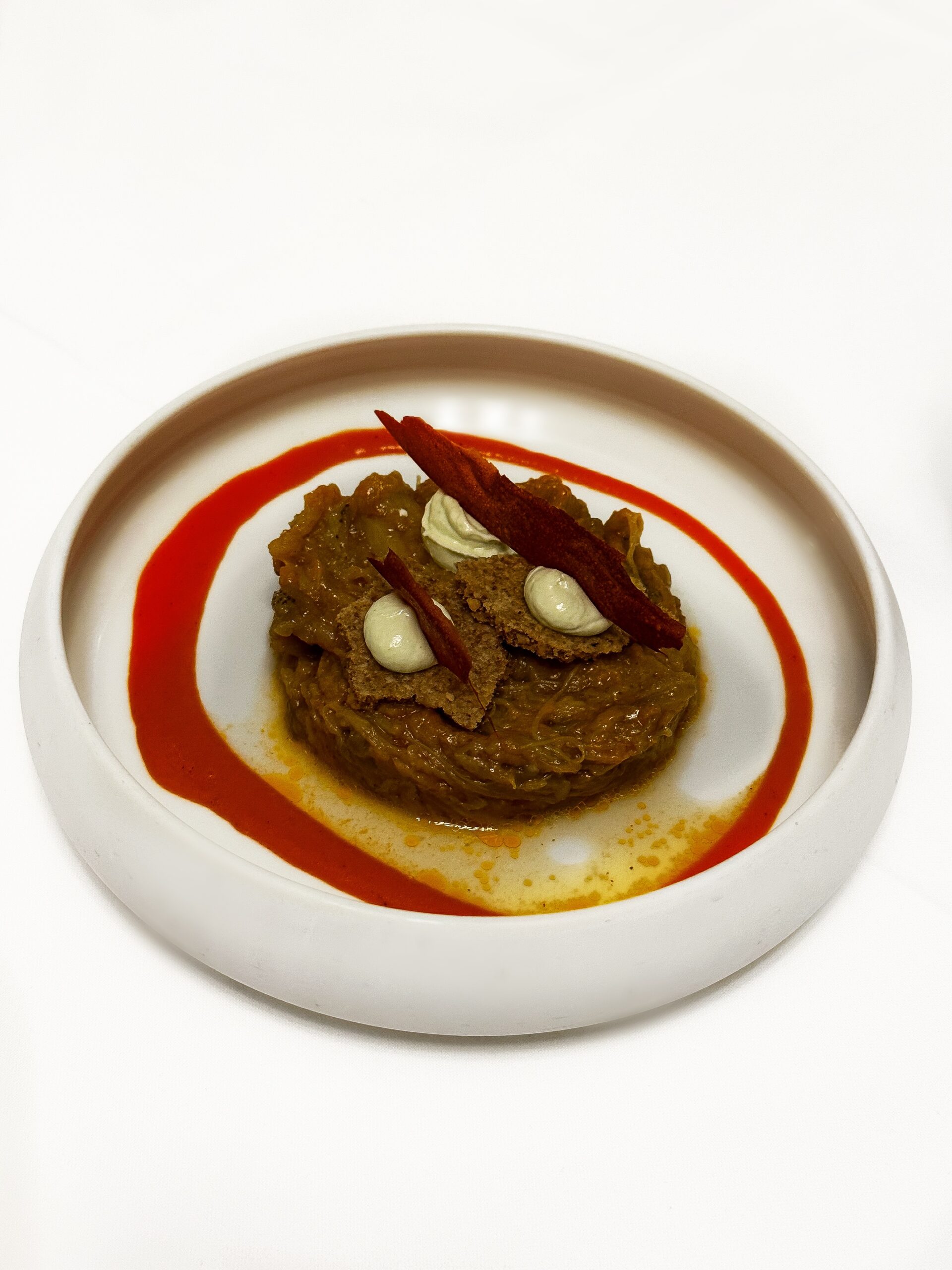 Διατηρεί τα γνωστά του αρώματα ενώ εμφανίζεται με πιο φινετσάτη γεύση και δημιουργική, ταρτάρ, όψη από μοσχαρίσιο black angus. Η οσπριάδα, αγαπημένο μοναστηριακό φαγητό, αποτελεί μείγμα οκτώ διαφορετικών οσπρίων και παρουσιάζεται ανανεωμένη με τραγανά στοιχεία από την προσθήκη φουντουκιού αλλά και εξαίσιες γλυκιές μυρωδιές από βερίκοκο και αρωματικό λαδολέμονο. Με δημιουργική ματιά αποδίδεται και ο αγιορείτικος μπακαλιάρος με καρότα, τραγανές αγκινάρες, πουρέ από καραμελωμένα κρεμμύδια και τζελ χλωροφύλλης που προσθέτει στο πιάτο βοτανικότητα. Άκρως ιδιαίτερα και νόστιμα τα τρυφερά μάγουλα μαύρου χοίρου με καμένα πράσα, ζωμό από σέσκουλα, πουρέ σελινόριζας και τραγανά φύλλα από σέλερι. Ένα καθαρό σε γεύση πιάτο με ισορροπημένες εντάσεις και φρεσκάδα. Η beata, με εξαιρετικές υφές και φινετσάτη πολυπλοκότητα, έκλεισε υπέροχα το γεύμα μας. Bitter σοκολάτα, κόκκινο κρασί, σύκο και σάλτσα από ταχίνι, χωρίς προσθήκη ζάχαρης, λακτόζης, ή γλουτένης, συνθέτουν ένα επιδόρπιο υψηλών προδιαγραφών που, δυστυχώς, σπάνια συναντάμε σε εστιατόρια. Η λίστα κρασιών, από τον ελληνικό κυρίως αμπελώνα, συνοδεύουν όμορφα ένα καθόλα εξαίσιο γεύμα.
