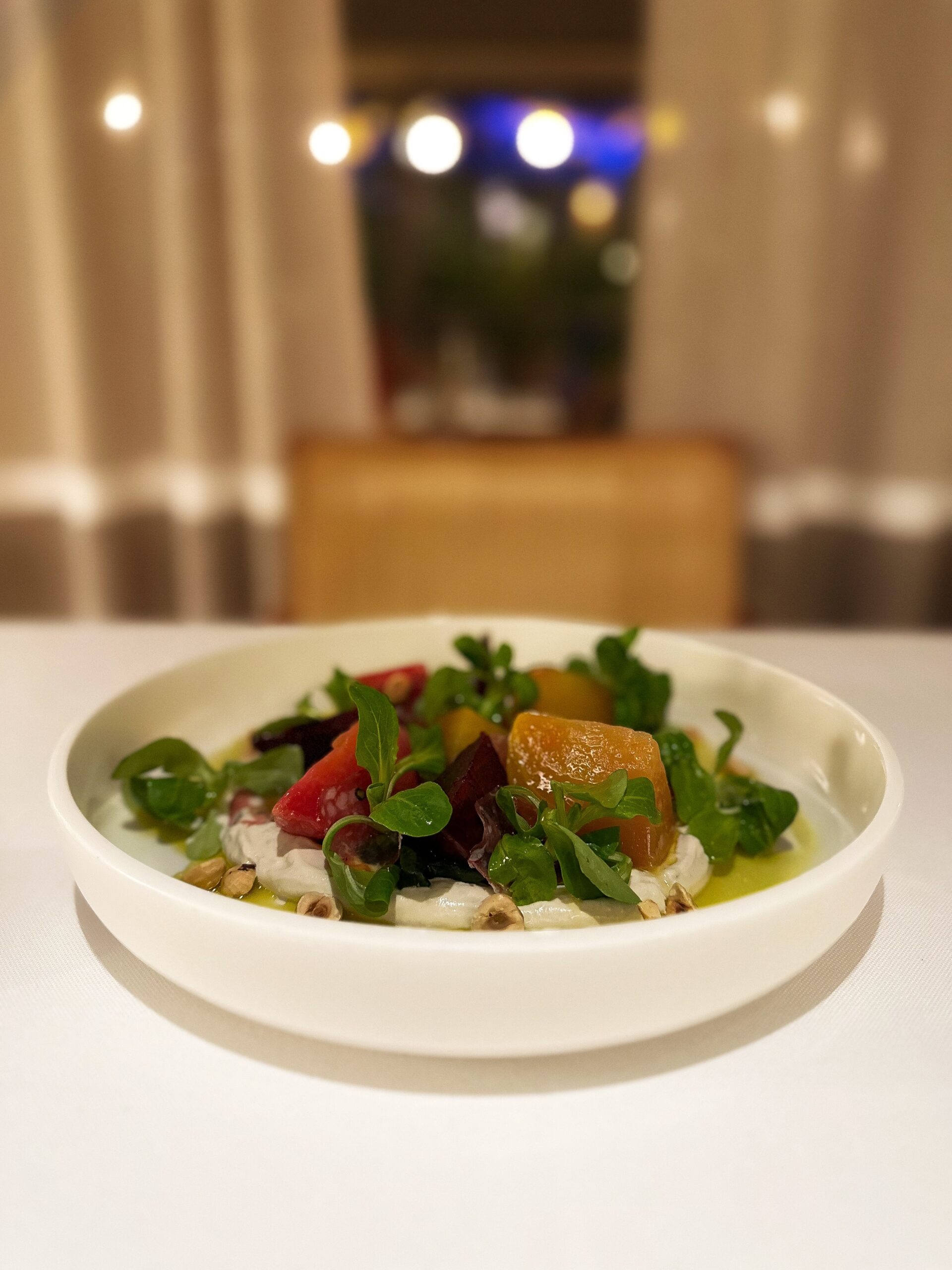 Στο τωρινό μενού την εμφάνισή τους κάνουν χειμερινά υλικά όπως κάστανα, μπρόκολα και άλλα λαχανικά εποχής ενώ η πεσκανδρίτσα και το χριστόψαρο βρίσκονται ανάμεσα στις επιλογές ψαριού. Στα γευστικά πιάτα που δοκιμάσαμε βρίσκεται και η σαλάτα με φασολάκια, φρέσκο κρεμμύδι, αμύγδαλο, καπνιστή πανσέτα, φράουλα και γρανίτα-κεράσι σε βάση από κρέμα αρωματισμένη από κάρβουνο, τα γεμιστά με σεβρ ζυμαρικά, μανιτάρι και αφρό τόνκας και εστραγκόν και οι παπαρδέλες με ραγού από μπούτι πάπιας, σεβρ, μελιτζάνα και λάδι τρούφας. Τη λίστα κρασιών, με επιλογές από τον ελληνικό και το διεθνή αμπελώνα, επιμελείται ο Απόστολος Πλαχούρας ενώ τα γλυκά, ανάμεσά τους και η βανίλια με φουντούκι, ανθό αλατιού και χαρούπι, ο γνωστός pastry chef Σπύρος Πεδιαδιτάκης. Το Moldee βάζει ψηλά τον πήχη στο τετράπτυχο γεύση, τεχνική, εξυπηρέτηση, αισθητική χώρου και πιάτων.