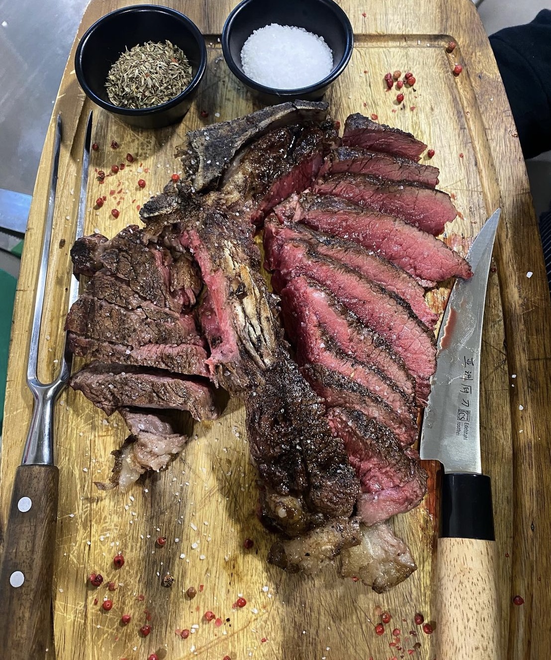 Στις αγαπημένες μας επιλογές συμπεριλαμβάνονται το Dexter Top Sirloin (ωρίμασης 45 ημερών), με λιγότερο ποσοστό πάχους από άλλες κοπές και ιδιαίτερα γευστικό που συνοδεύεται από ψητές ντομάτες και σάλτσα βασιλικού καθώς επίσης και το Côte de Boeuf Wagyu (ωρίμασης 42 ημερών και BMS 8-9) με εξαιρετικό marbling και πλούσια γεύση που σερβίρεται au jus με πιπεριές padron και ψητό γλυκό σκόρδο. Στα συνοδευτικά, τα μανιτάρια με λάδι σκόρδου και θυμάρι καθώς επίσης και οι hasselback πατάτες με σχοινόπρασο συναρπάζουν.
