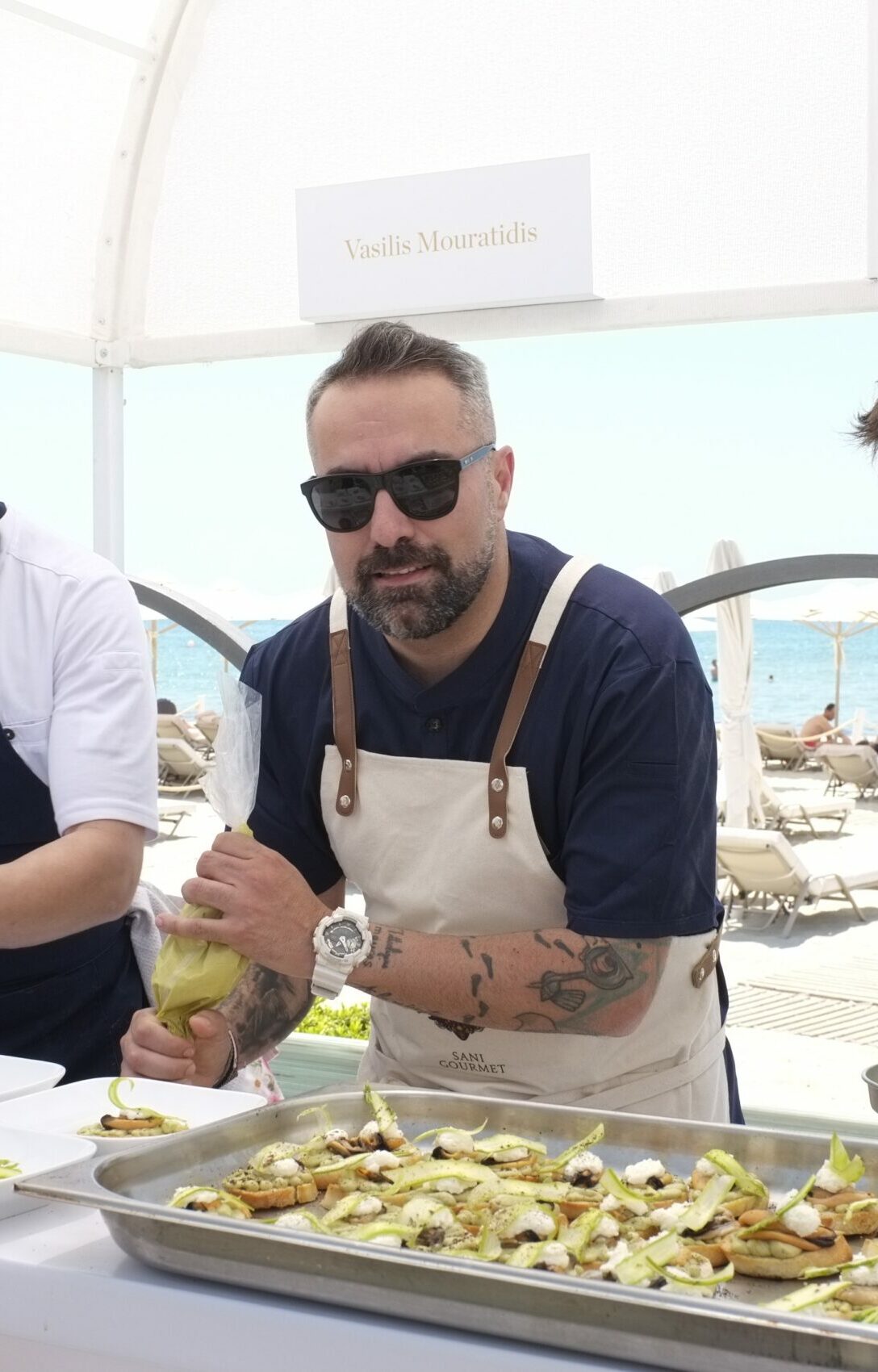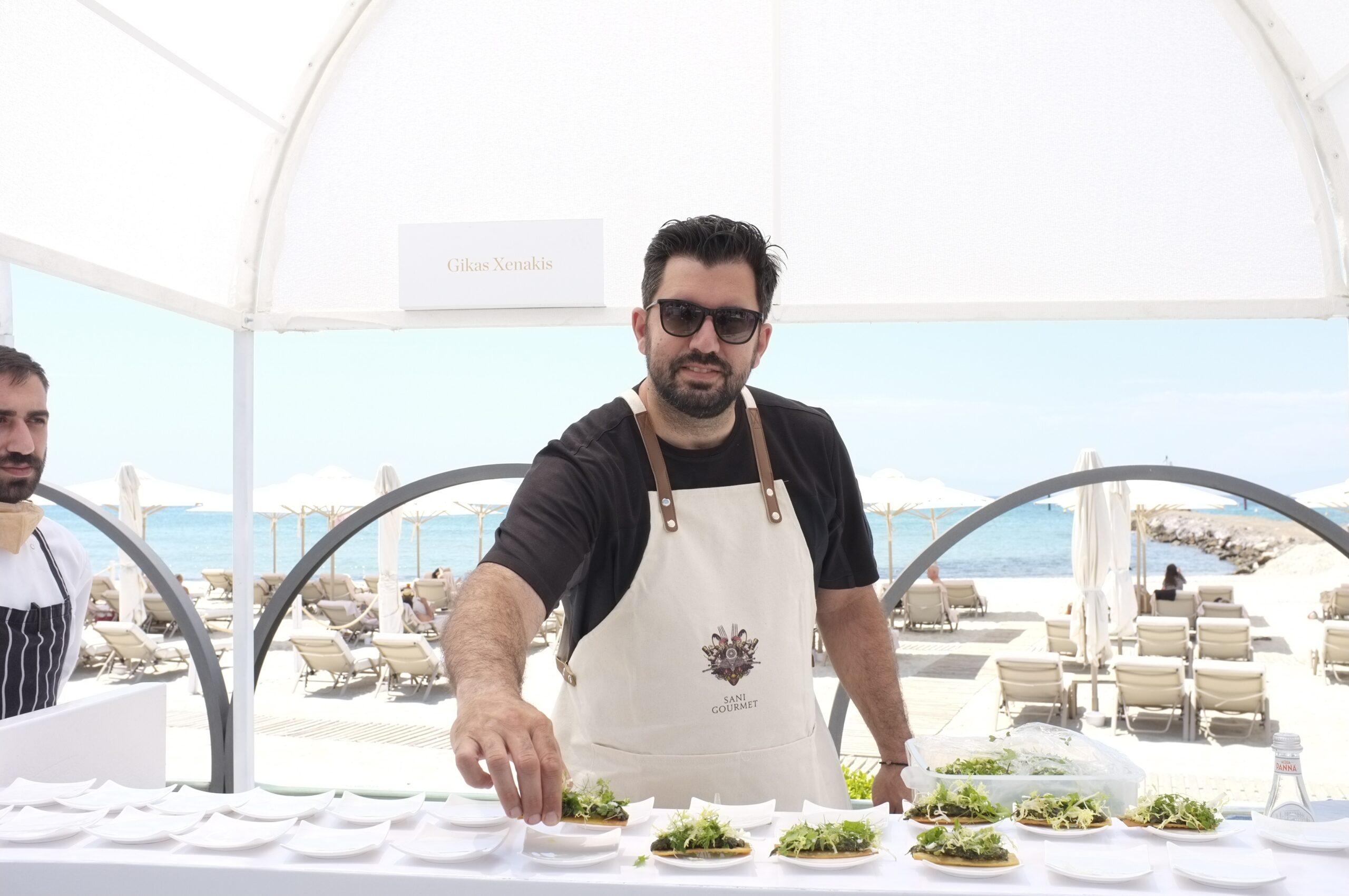 Κι αν κάθε μενού και γευστική εμπειρία που μας παρουσίασαν οι κορυφαίοι σεφ, ήταν ξεχωριστό και μοναδικό, όλοι μοιράστηκαν τον ίδιο ενθουσιασμό και κέφι, δημιουργώντας live στο opening party του Sani Gourmet. Στον άκρως καλοκαιρινό χώρο του κομψού bar Sea You, με τη θέα στη μαρίνα του resort να μας ταξιδεύει και τους ήχους της live μπάντας να μας ξεσηκώνουν, απολαύσαμε και τους 9 Culinary Artisans εν δράση και γευτήκαμε μερικές ακόμη, ξεχωριστές amuse bouche δημιουργίες τους.