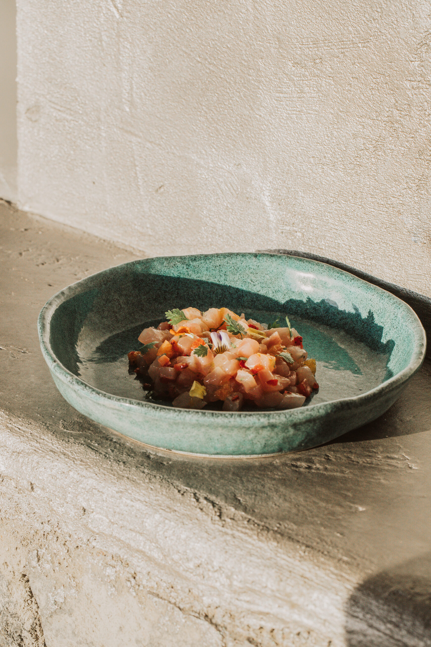 Fine dining ψαροφαγία συν ορισμένα πιάτα με βιολογικό κρέας από τον Λευτέρη Λαζάρου chef patron του εμβληματικού εστιατορίου Βαρούλκο στον Πειραιά (αστέρι Michelin). Μενού a la carte και τρία μενού γευσιγνωσίας με τοπικά και εποχικά υλικά υψηλής ποιότητας που περιλαμβάνουν και ορισμένα διαχρονικά πιάτα του σεφ όπως το «καλαμάρι με pesto». Ηead chef ο Κομνηνός Μουφλουζέλης. Eυρηματικά επιδόρπια από τον pastry chef Θοδωρή Μωυσίδη.
