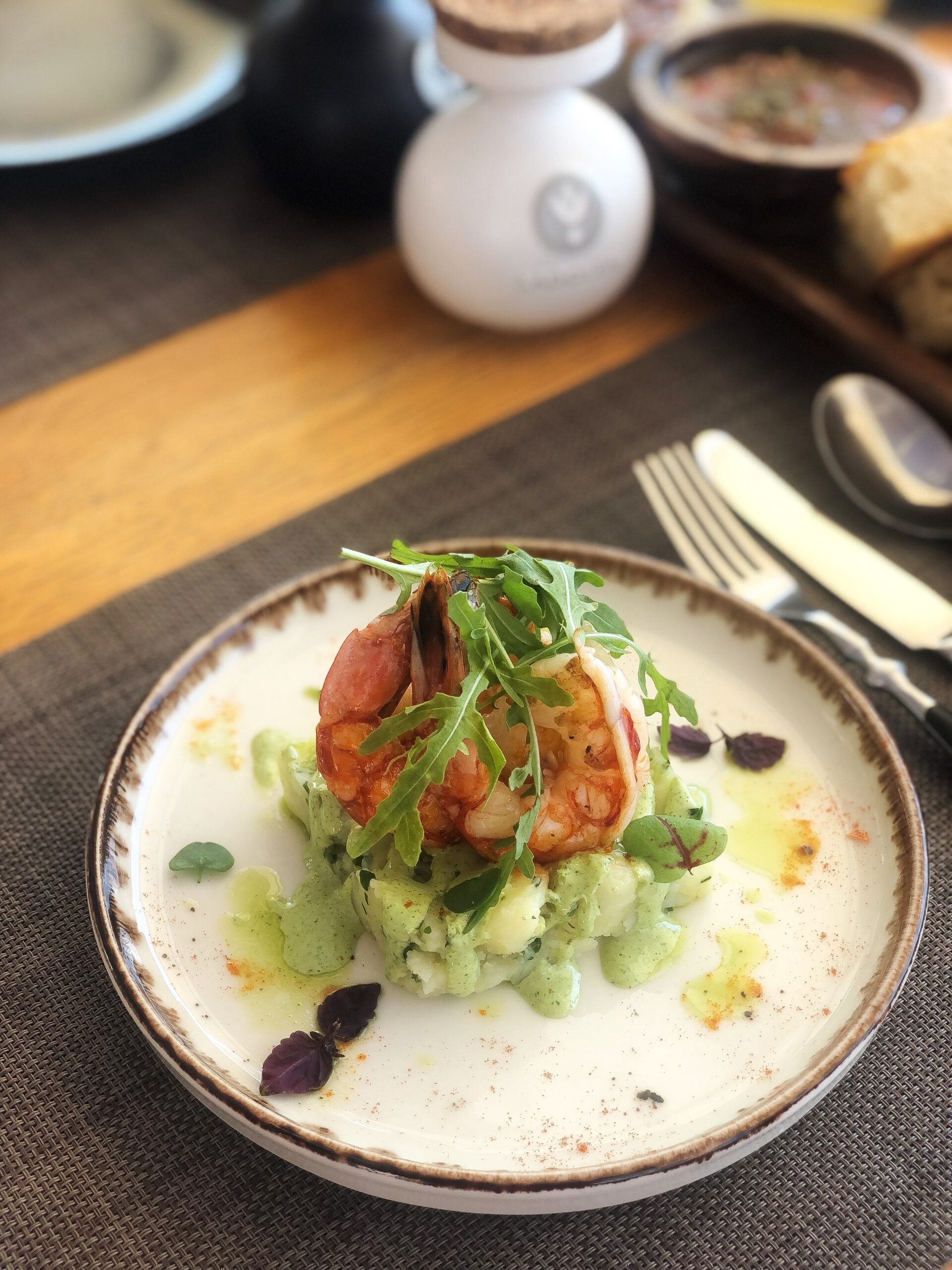 Fine dining ψαροφαγία συν ορισμένα πιάτα με βιολογικό κρέας από τον Λευτέρη Λαζάρου chef patron του εμβληματικού εστιατορίου Βαρούλκο στον Πειραιά (αστέρι Michelin). Μενού a la carte και τρία μενού γευσιγνωσίας με τοπικά και εποχικά υλικά υψηλής ποιότητας που περιλαμβάνουν και ορισμένα διαχρονικά πιάτα του σεφ όπως το «καλαμάρι με pesto». Ηead chef ο Κομνηνός Μουφλουζέλης. Eυρηματικά επιδόρπια από τον pastry chef Θοδωρή Μωυσίδη.