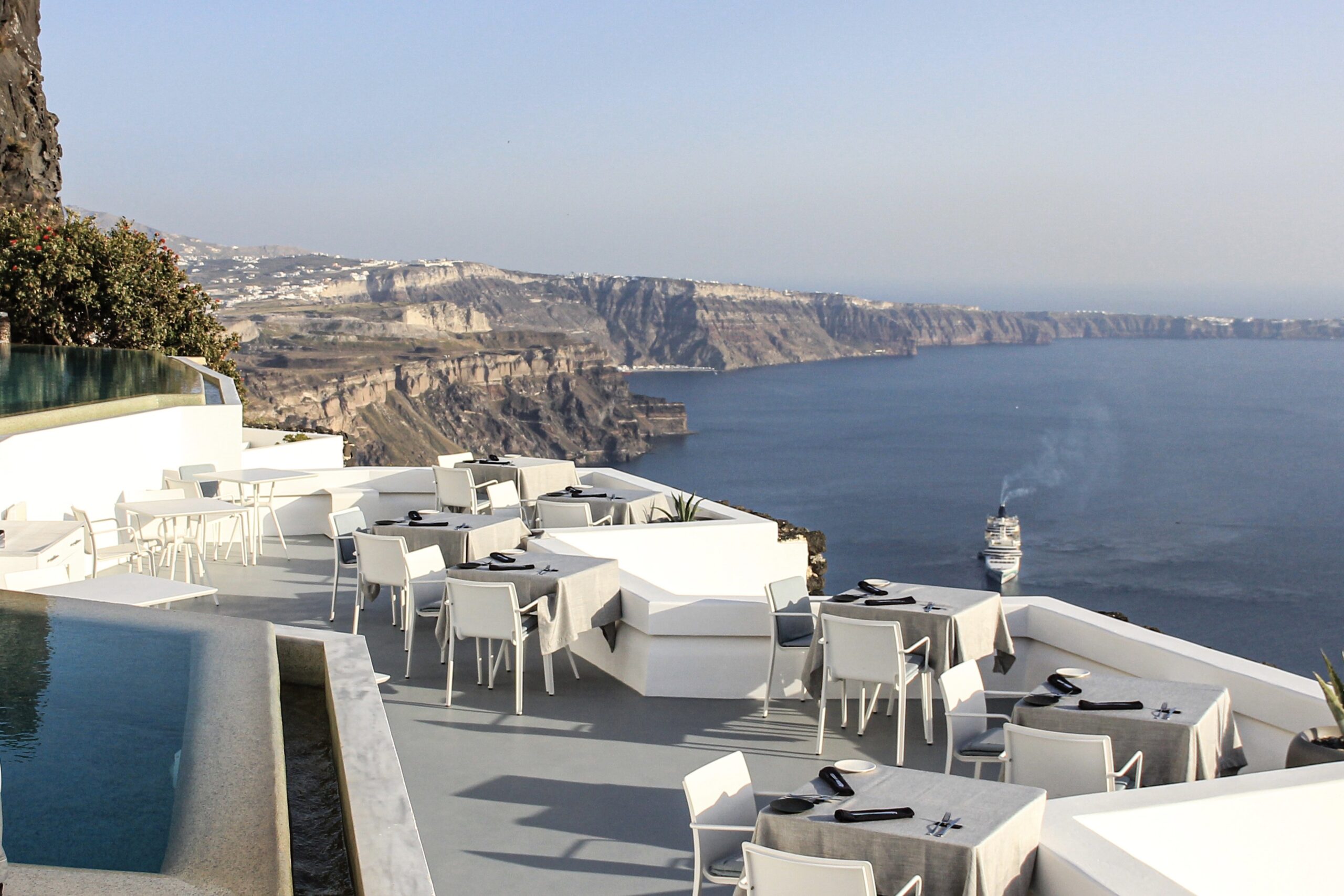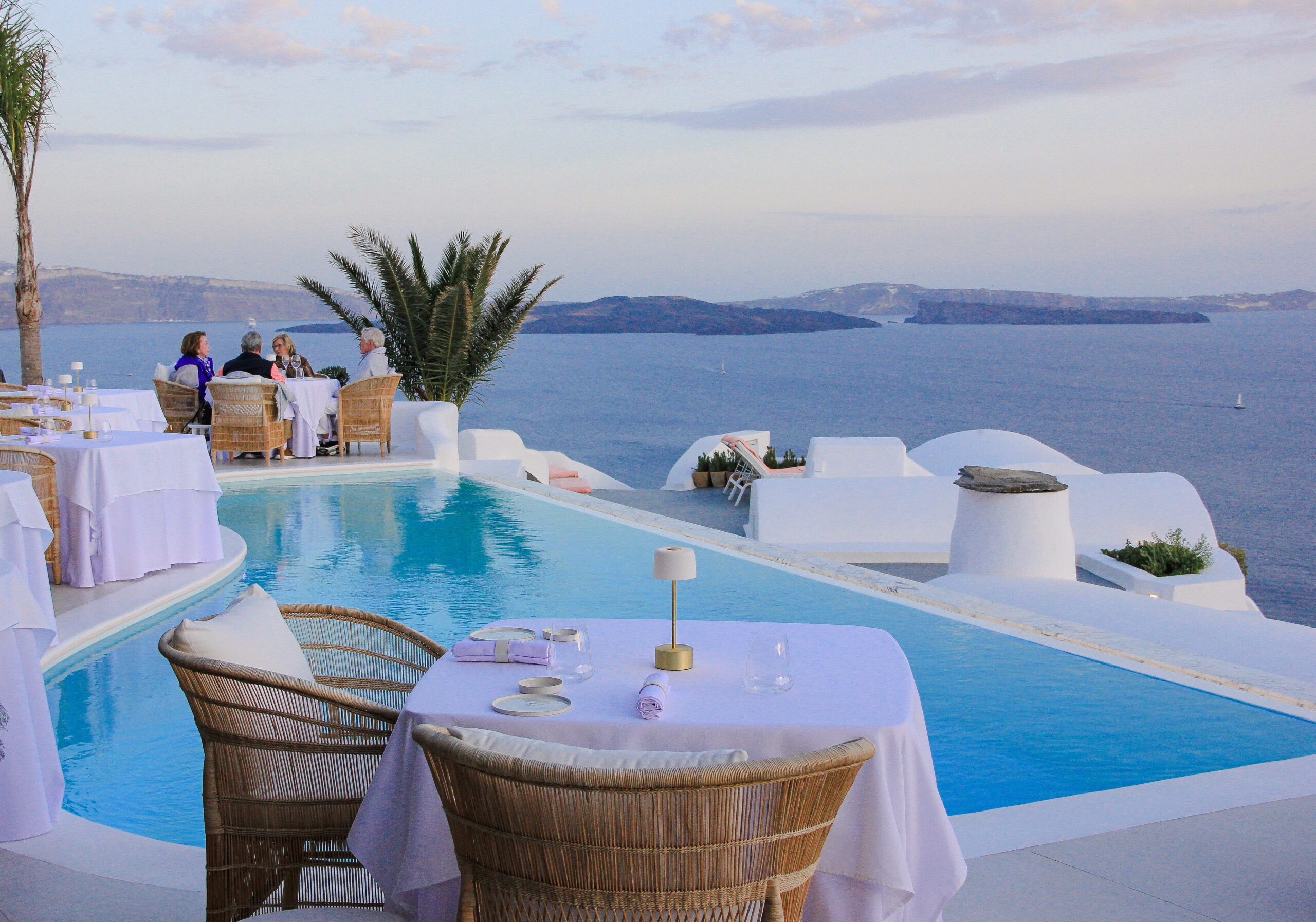 Κουζίνα υψηλού επιπέδου με σαφές ελληνικό πρόσημο από τον executive chef Τάσο Στεφάτο. Μενού a la carte και μενού γευσιγνωσίας, με οικείες γεύσεις που αποδίδονται με δημιουργικές πινελιές και τη συμπερίληψη πλειάδας εκλεκτών τοπικών ελληνικών προϊόντων. Wine list με εξαιρετικές επιλογές από το σαντορινιό, τον ελληνικό αλλά και το διεθνή αμπελώνα σε επιμέλεια της Ελίνας Δακανάλη Wine Director του ομίλου “Canaves”, sommelier η Αμάντα Κονδινού. Πανοραμική θέα στην Καλντέρα.
