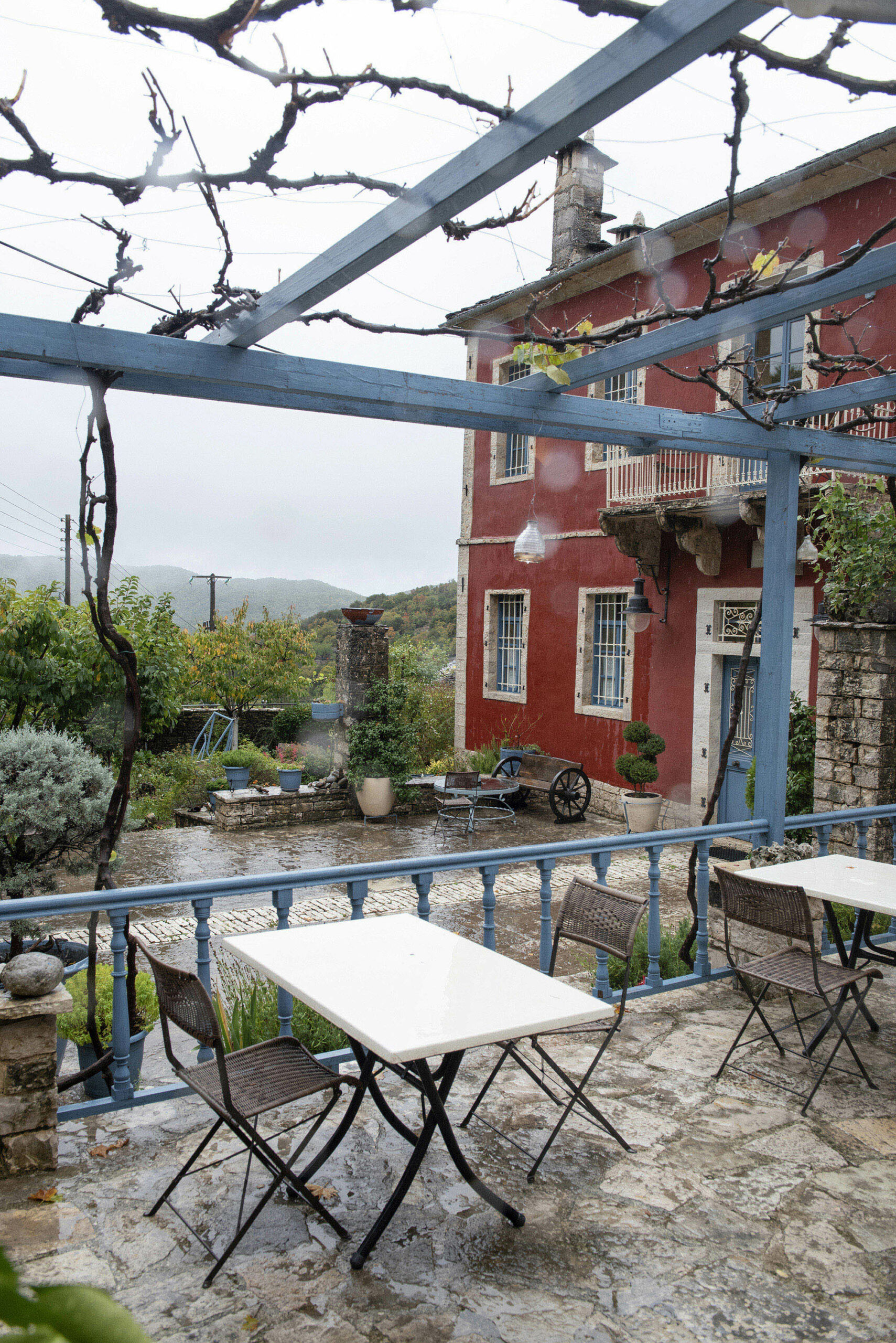«Ζώντας στην περιοχή, βλέπαμε αυτό το μοναδικό κτήριο, το οποίο κατασκευάστηκε το 1850 για να στεγάσει το σχολείο θηλέων, και στη συνέχεια έγινε το σπίτι γιατρού, να παραμένει κλειστό για χρόνια, κάτι που το οδηγούσε σταδιακά στην κατάρρευση. Αποφασίσαμε να το αγοράσουμε και τον Ιανουάριο του 2000 ήταν πλέον στην ιδιοκτησία μας». Ρωτάω περισσότερες λεπτομέρειες σχετικά με το πώς ήταν τα πράγματα στο κτίριο τότε και ο Γιάννης σημειώνει: «Αυτό που βλέπετε σήμερα, λειτουργικό και όμορφο, είχε αρχίσει να αποσυντίθεται. Σκόρπια υλικά, ετοιμόρροπη στέγη, παράθυρα έτοιμα να πέσουν. Αποφασίσαμε να το ανακαινίσουμε χρησιμοποιώντας τα ίδια υλικά. Κάναμε μεγάλο αγώνα, σαν να προσπαθείς να συνθέσεις ένα πάζλ, για το οποίο όμως έχεις την αίσθηση ότι μπορεί κάποιο κομμάτι να λείπει. Σίγουρα κόστισε περισσότερο ωστόσο πιστεύουμε και οι δύο ότι το αποτέλεσμα μας δικαίωσε». Σήμερα αποτελείται από οκτώ ευρύχωρα και καλαίσθητα δωμάτια με τα περισσότερα από αυτά να διαθέτουν το δικό τους τζάκι.
